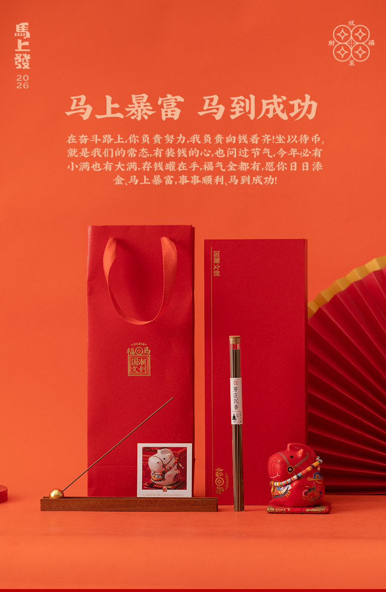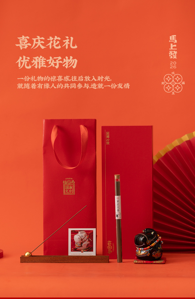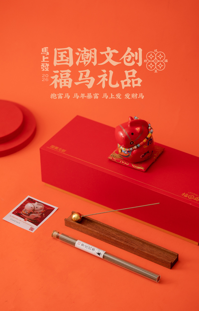 新款马年文创轻奢马摆件沉香线香插中式香薰国潮礼盒装新年伴手礼
