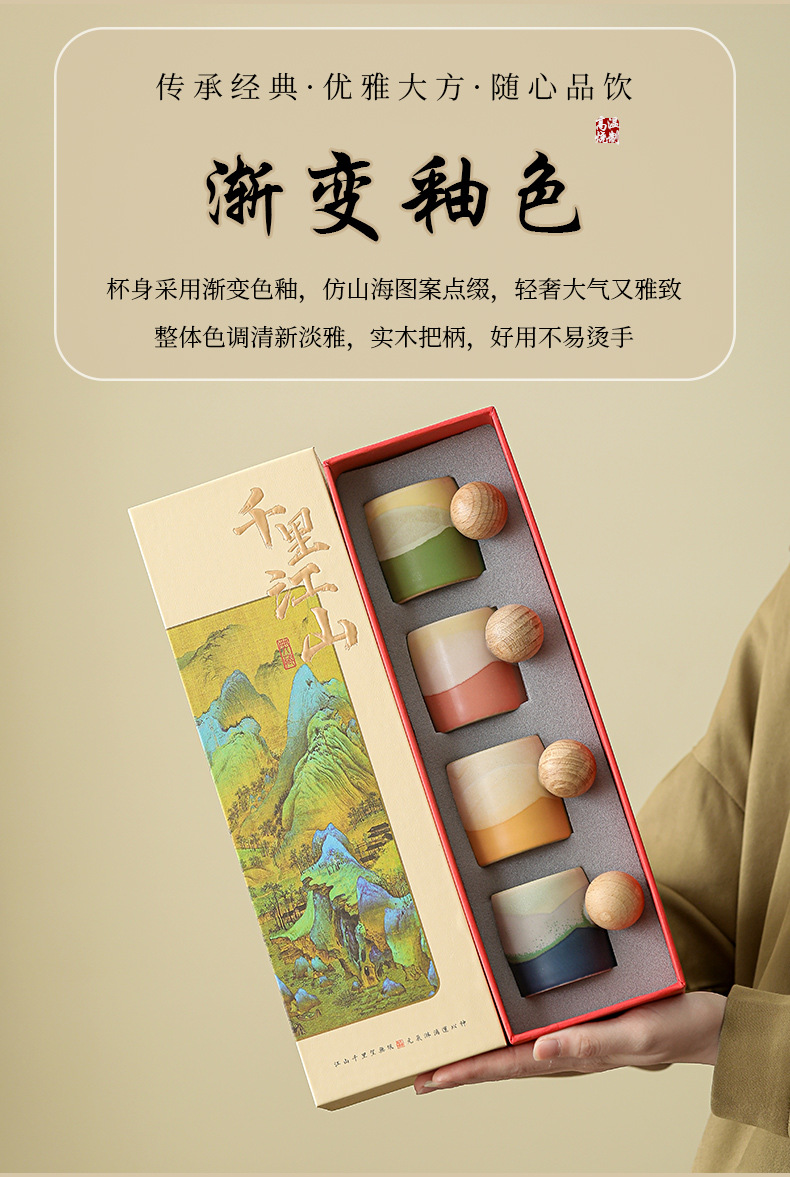 北京故宫文创千里江山茶杯礼盒套装送老外客户领导长辈生日伴手礼