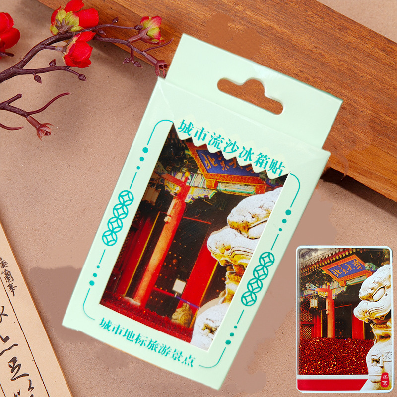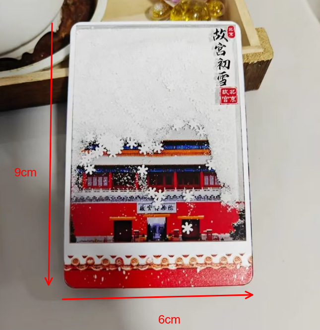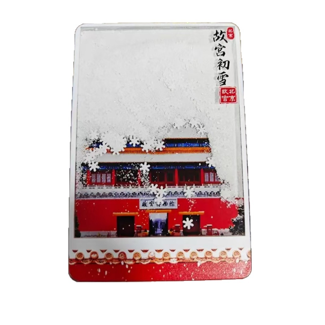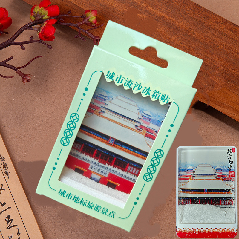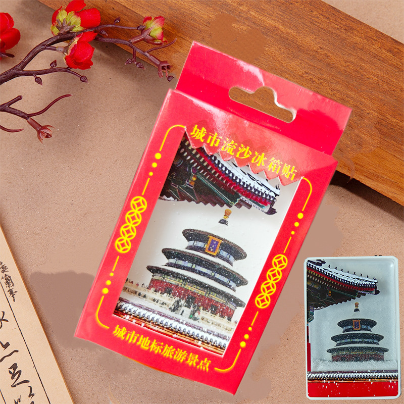 冰箱贴文创北京故宫天坛瑞雪飘雪流沙亚克力磁吸冰箱贴旅游纪念品