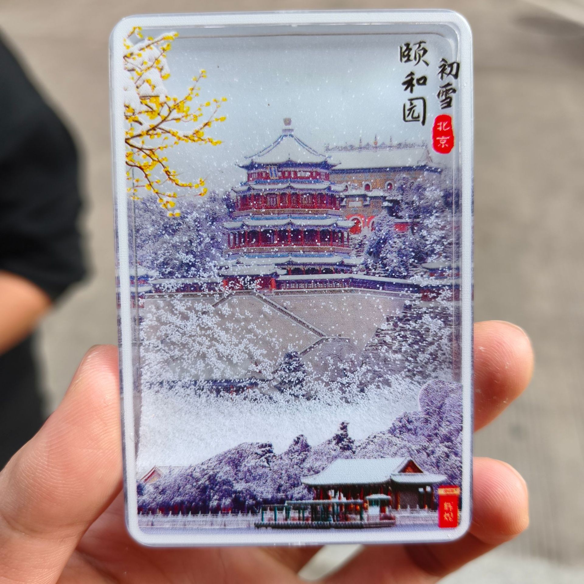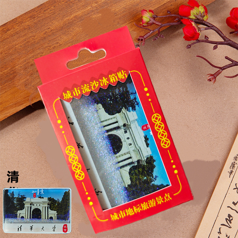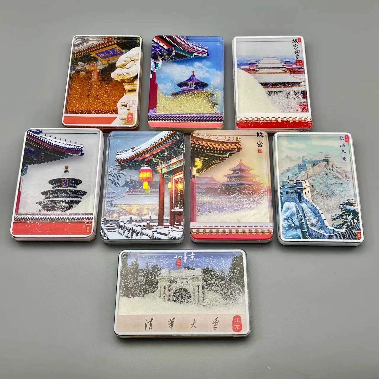 冰箱贴文创北京故宫天坛瑞雪飘雪流沙亚克力磁吸冰箱贴旅游纪念品