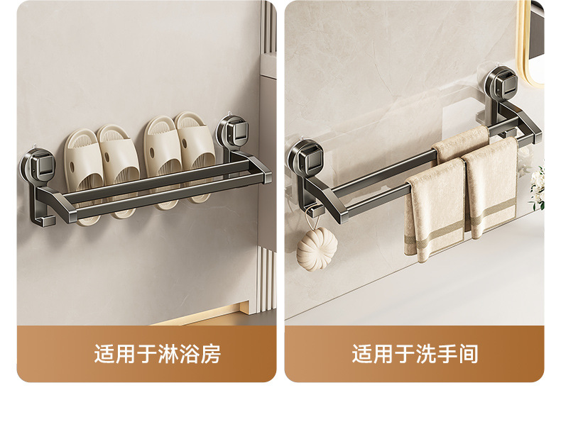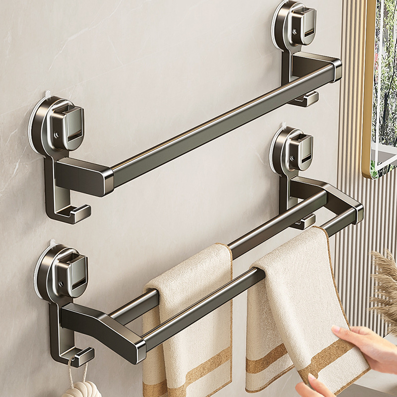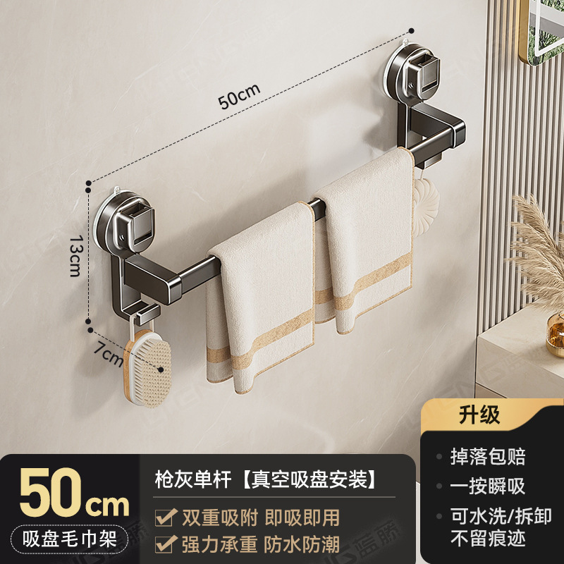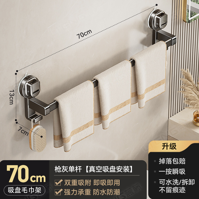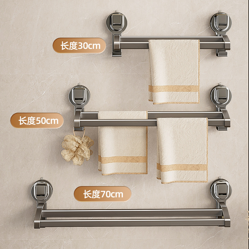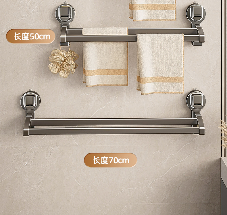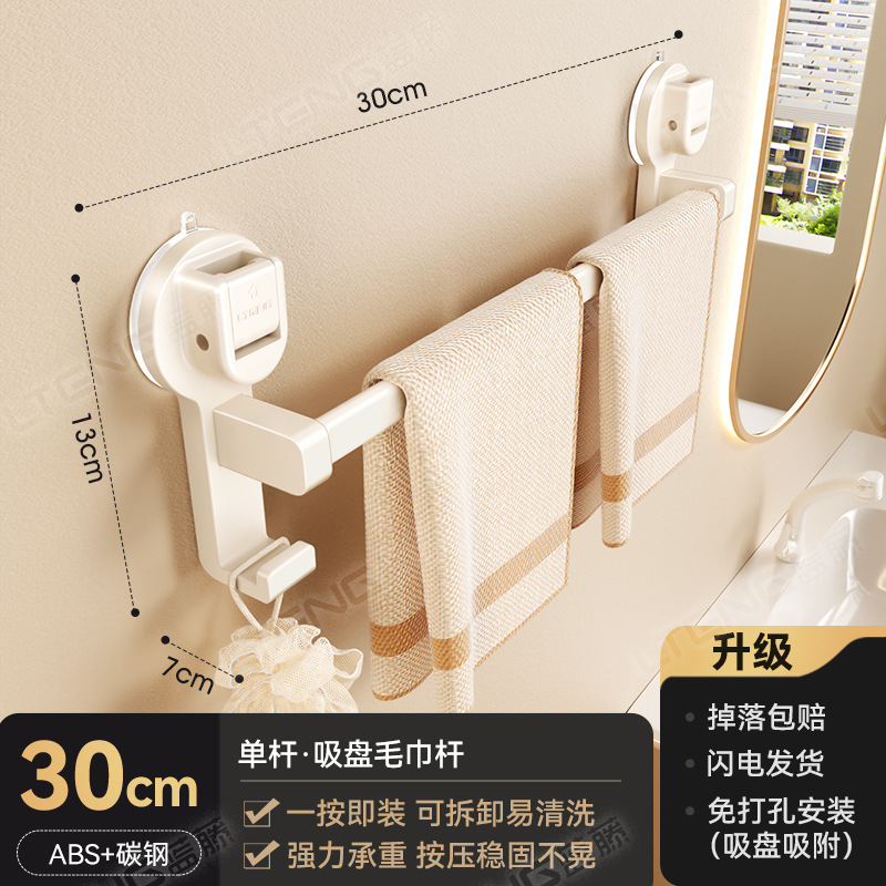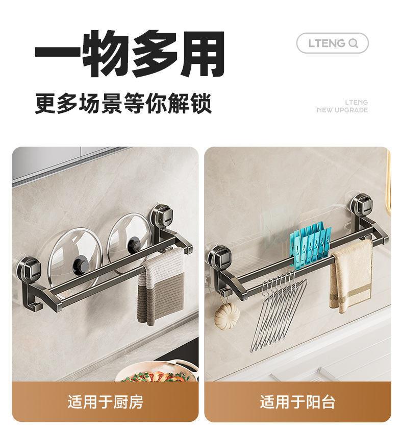 蓝藤吸盘毛巾杆浴室厨房单杆架卫生间阳台双杆带钩收纳吸盘免打孔