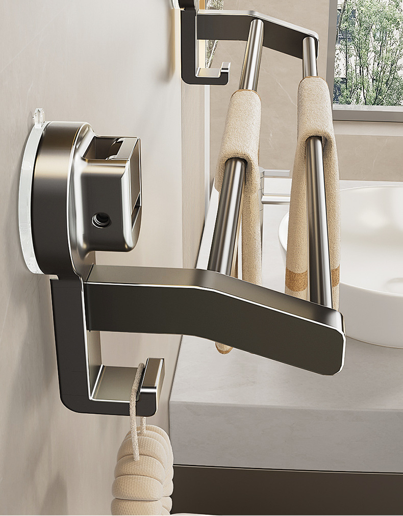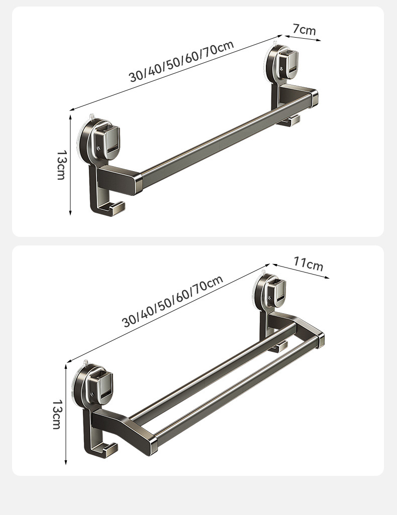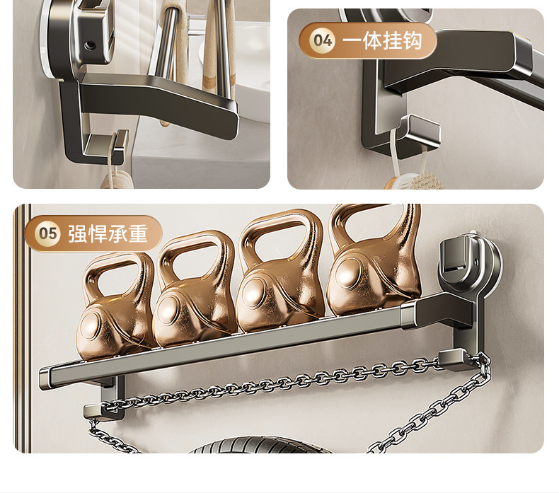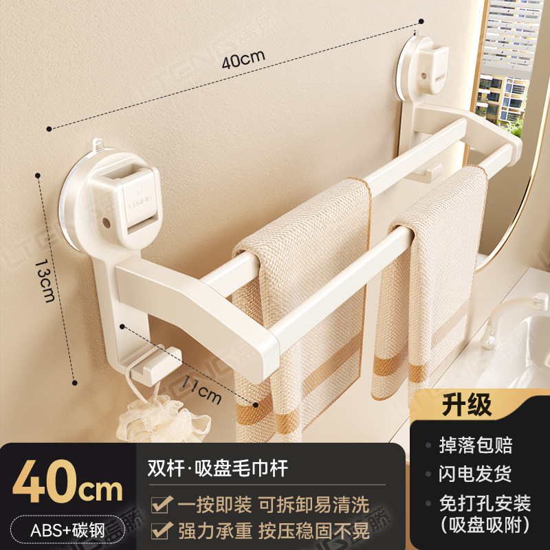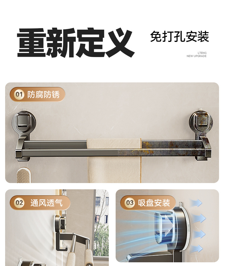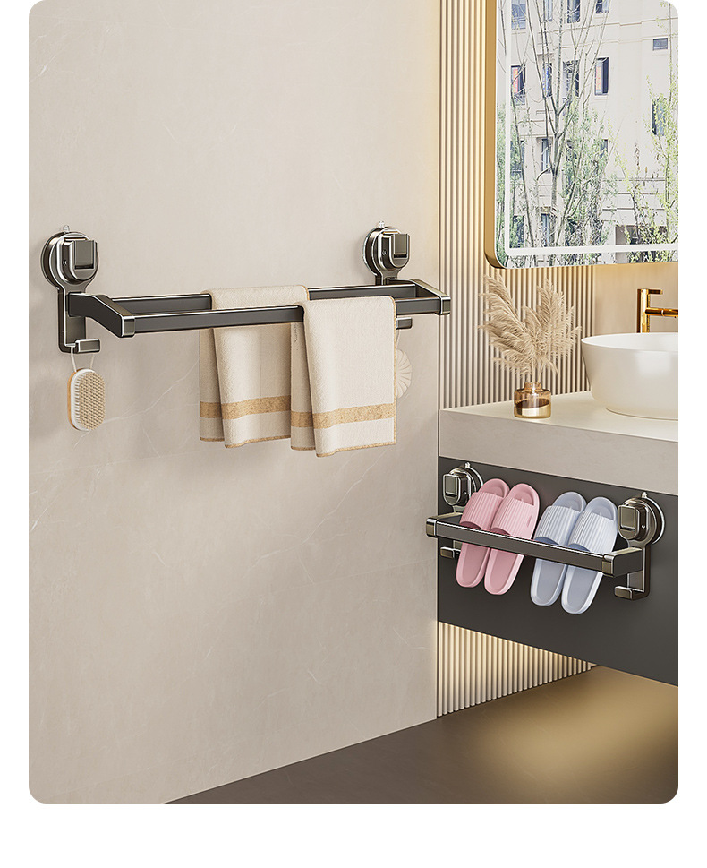 蓝藤吸盘毛巾杆浴室厨房单杆架卫生间阳台双杆带钩收纳吸盘免打孔