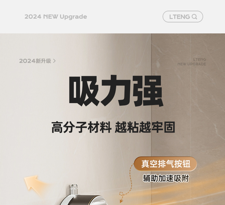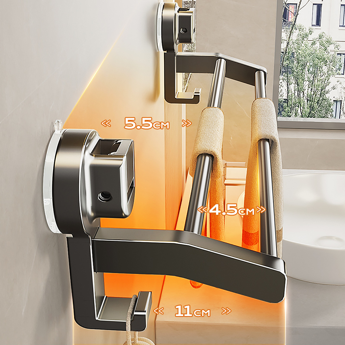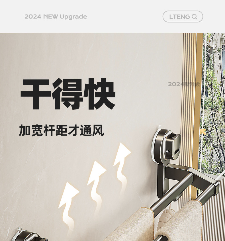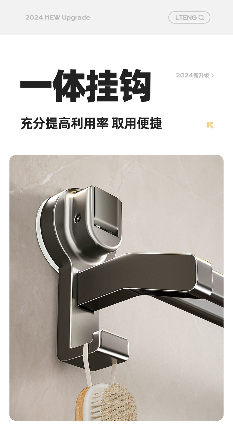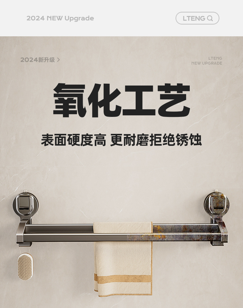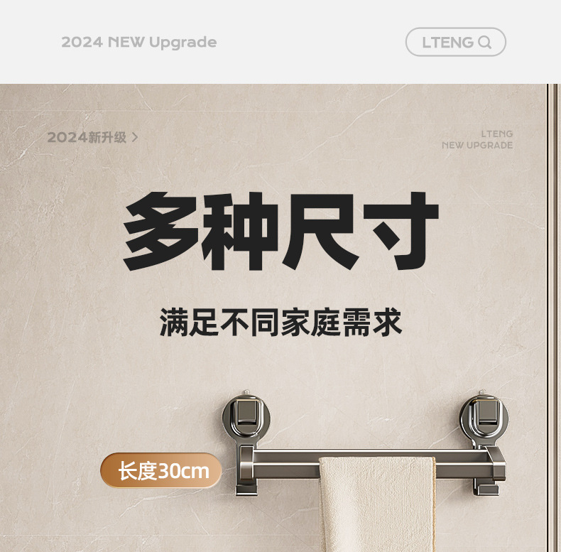蓝藤吸盘毛巾杆浴室厨房单杆架卫生间阳台双杆带钩收纳吸盘免打孔