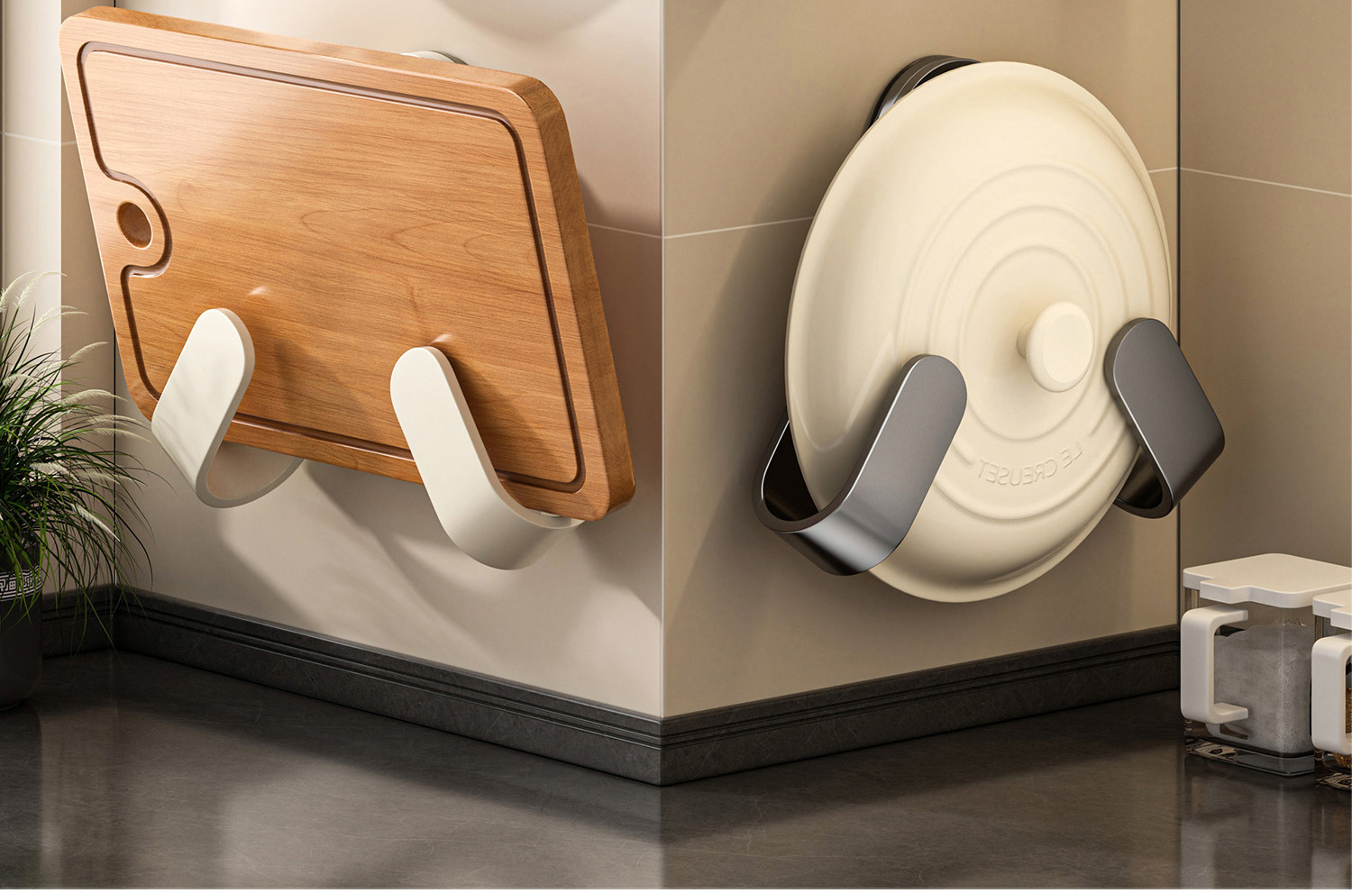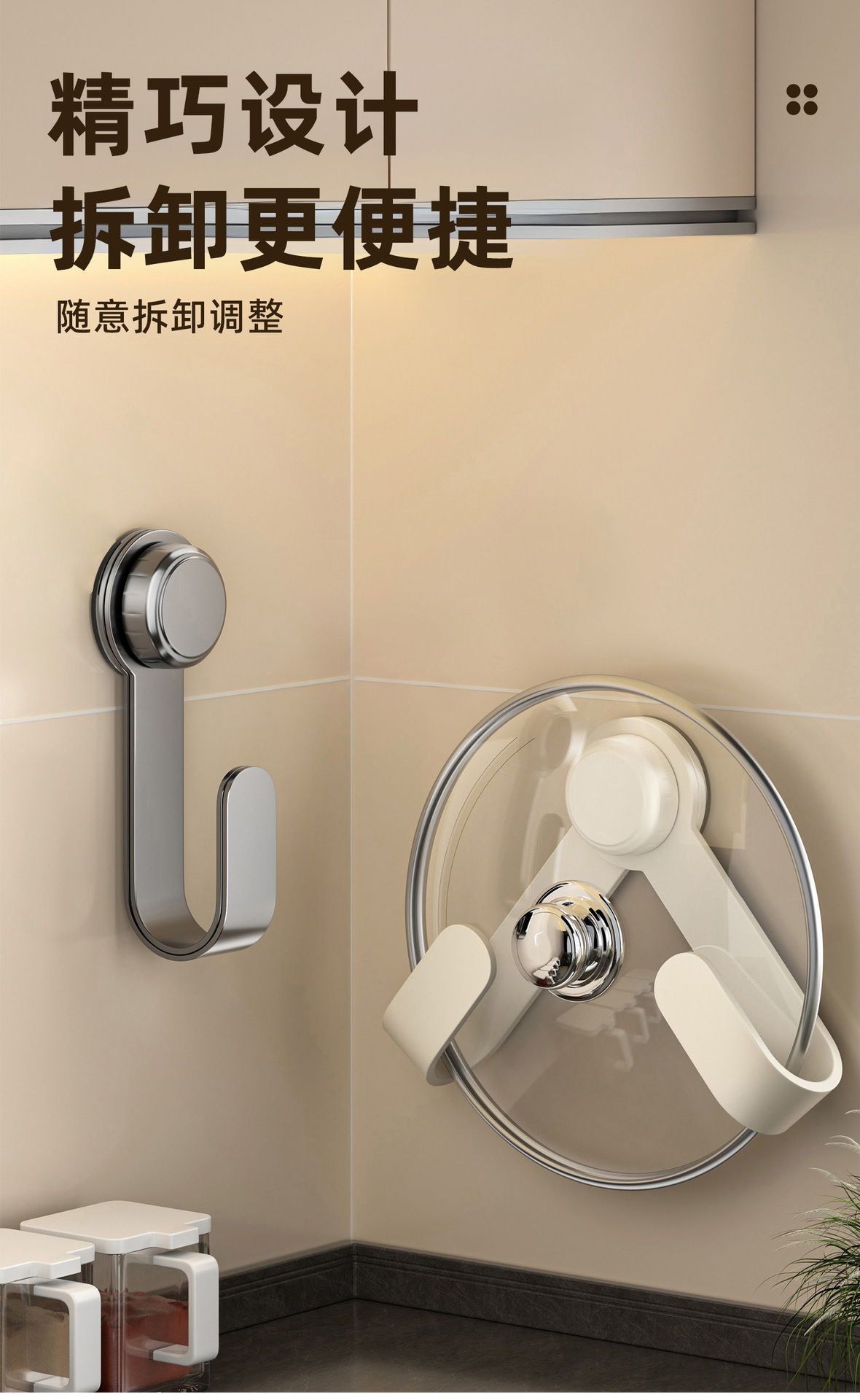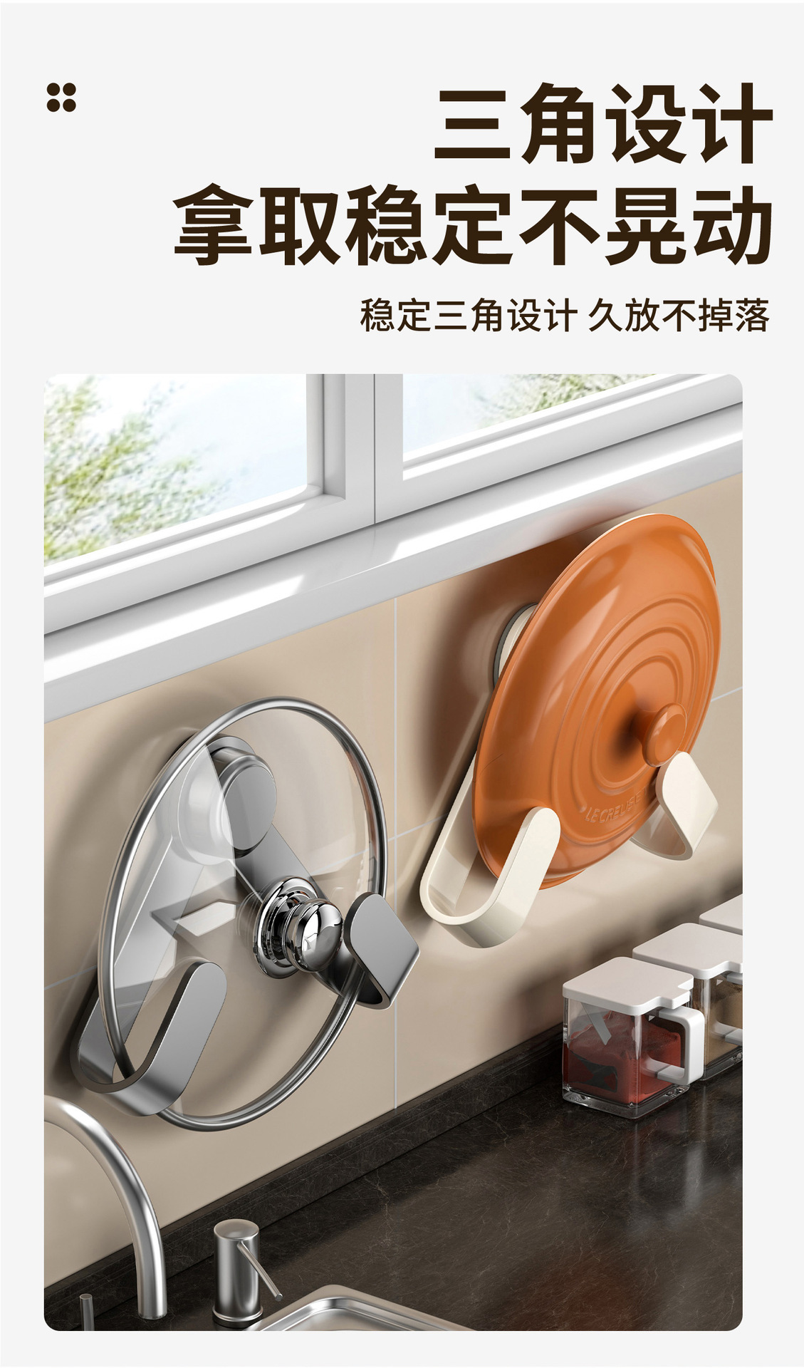 厂家供应吸盘锅盖架免打孔旋转壁挂式厨房多功能置物架砧板收纳架