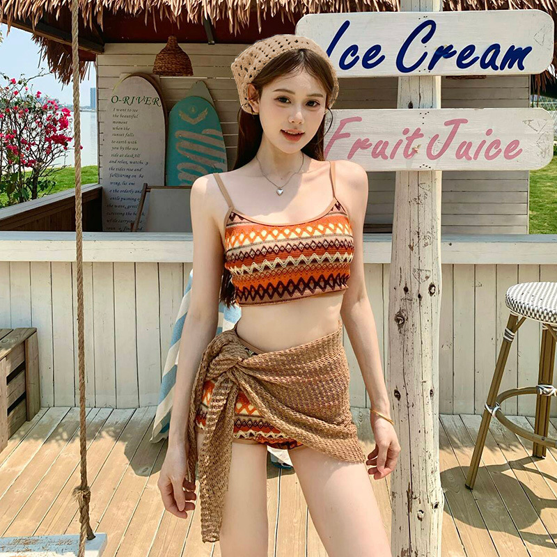 辣妹性感比基尼泳衣三件套小胸聚拢2025新款爆款显瘦泡温泉高级感