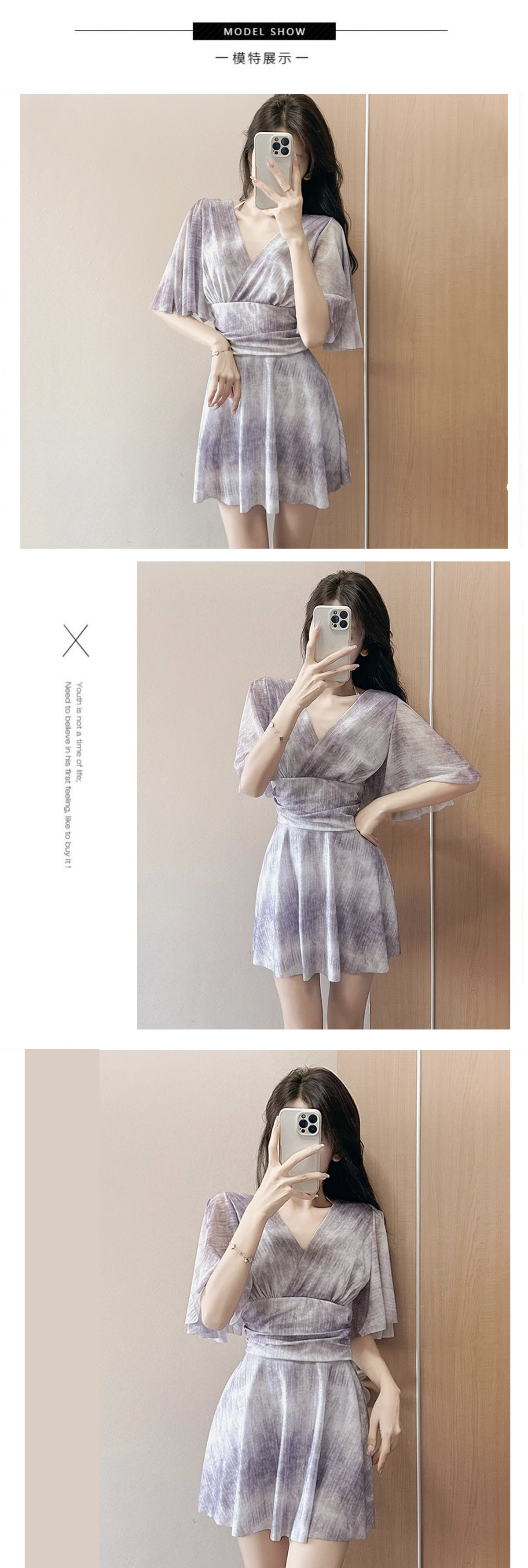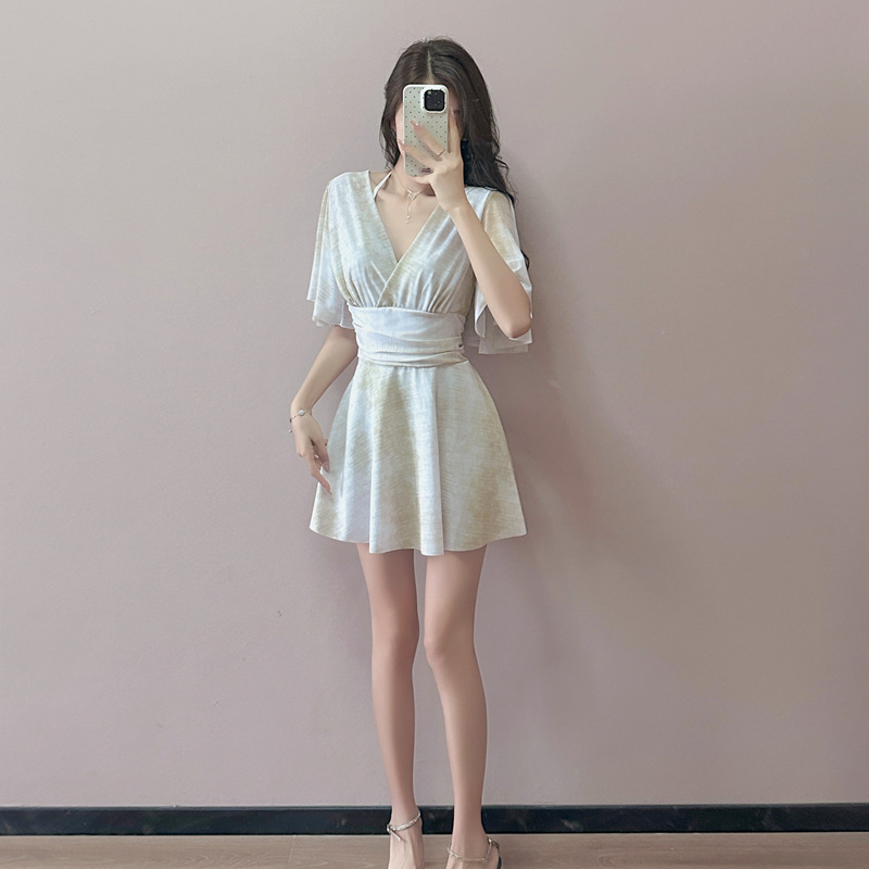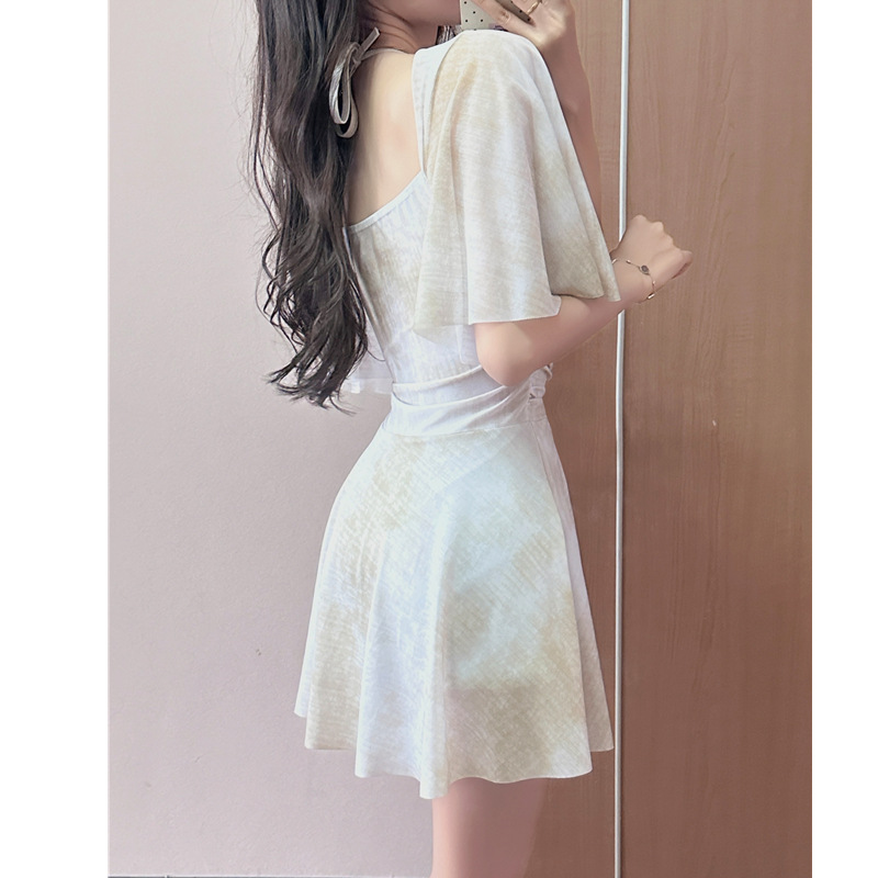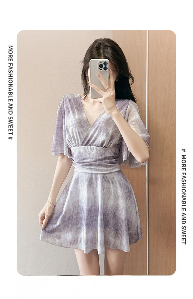 2025新款胖mm连体裙钢托保守显瘦遮肉夏季游泳度假平角泳衣女晕染