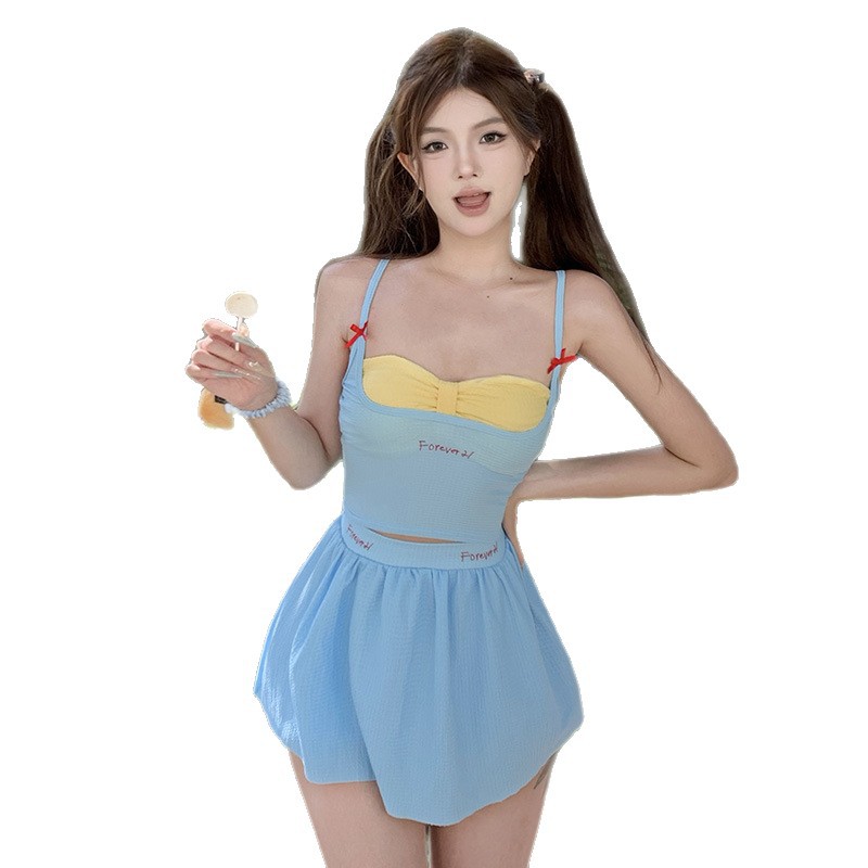 比基尼泳衣女新款三件套甜美纯欲高级分体小胸度假海边多巴胺穿搭