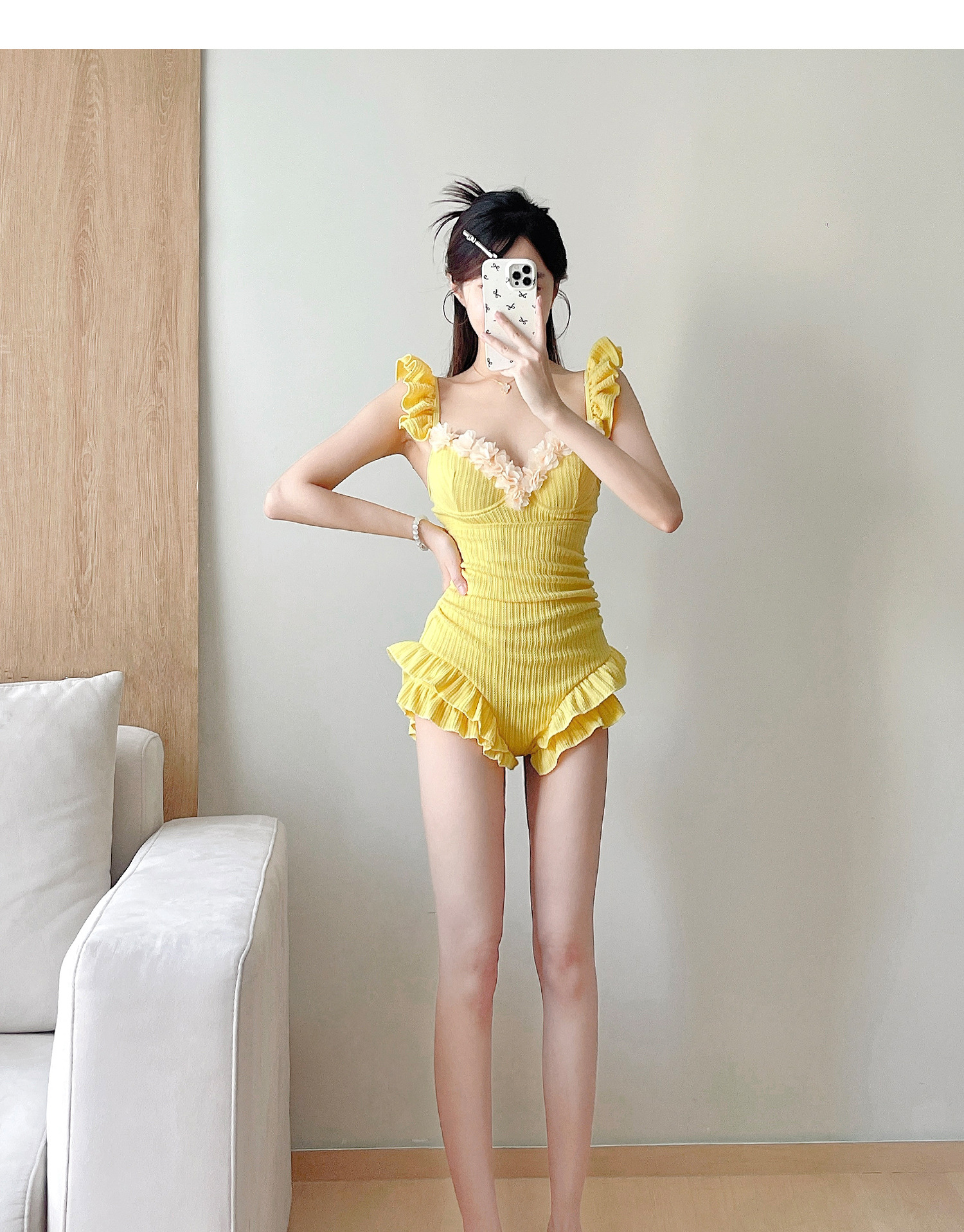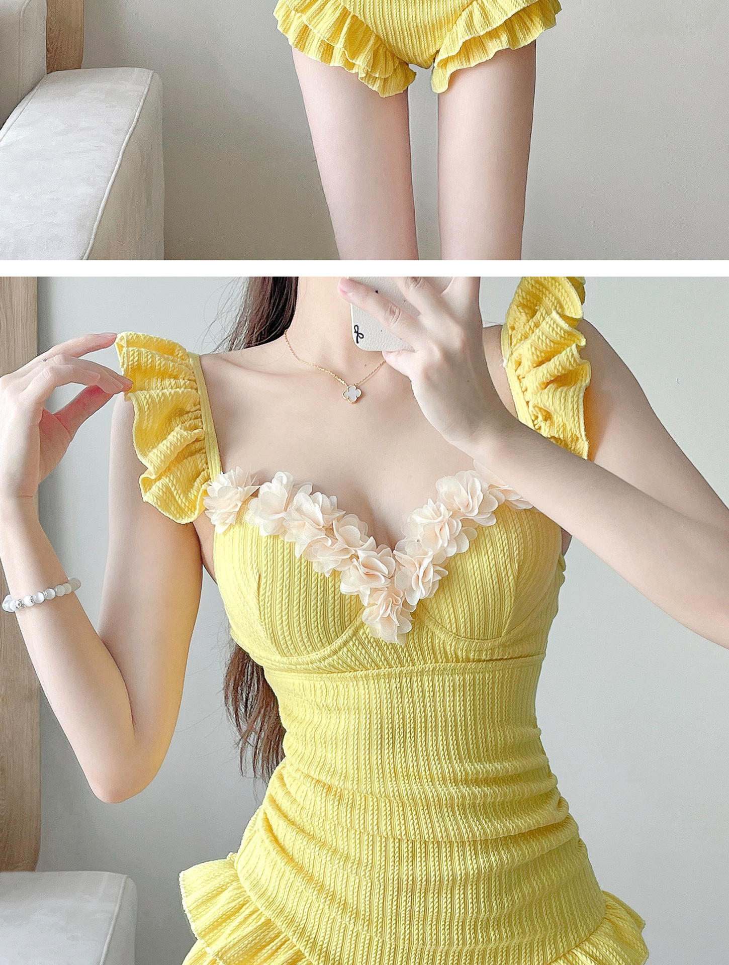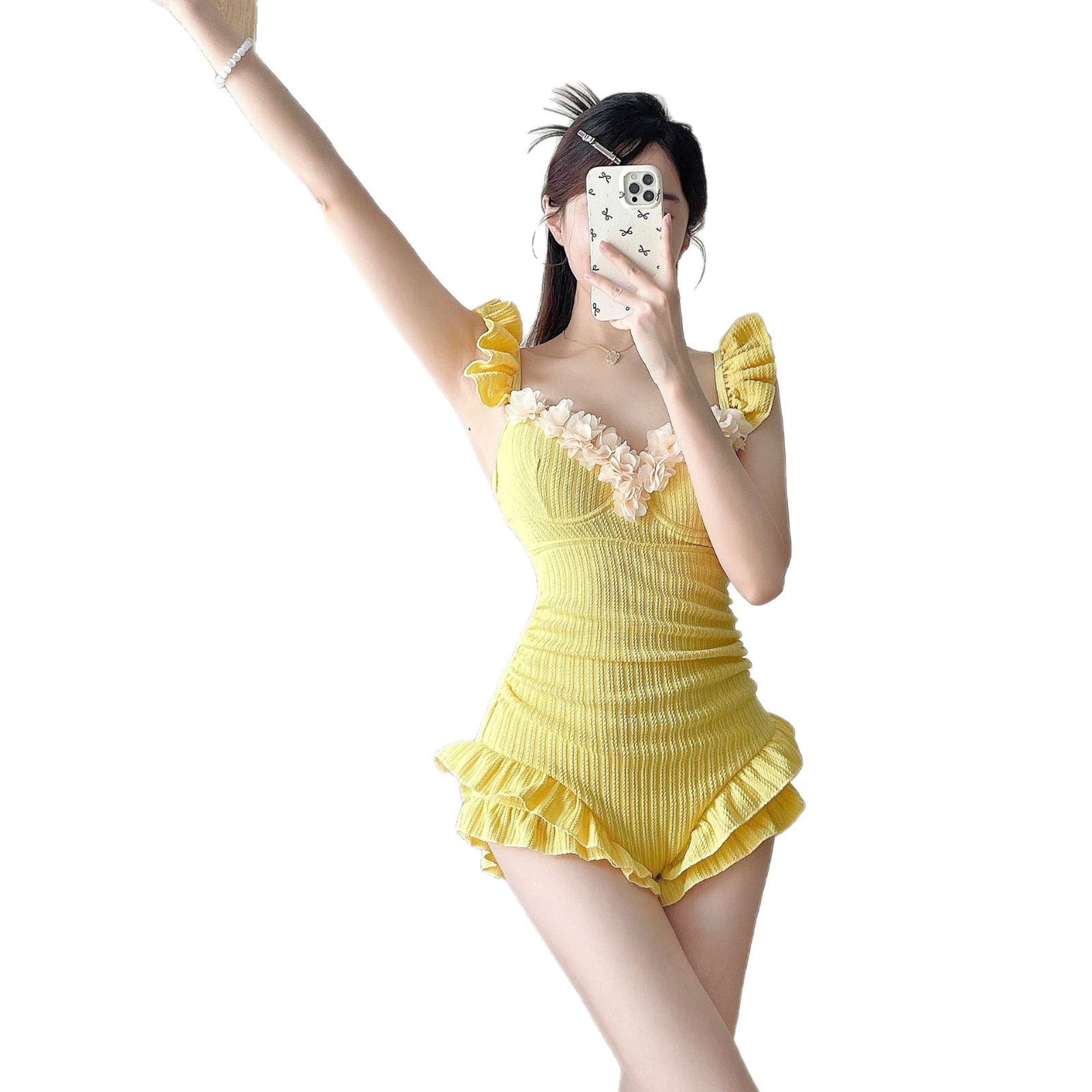 2025新款氛围感纯欲风连体裙式泳衣女小胸聚拢海边度假风游泳装