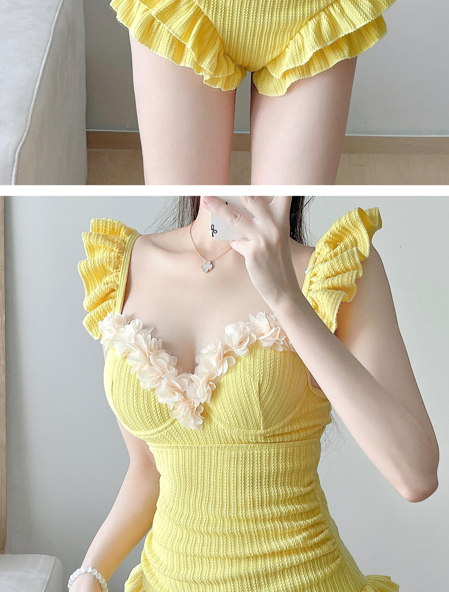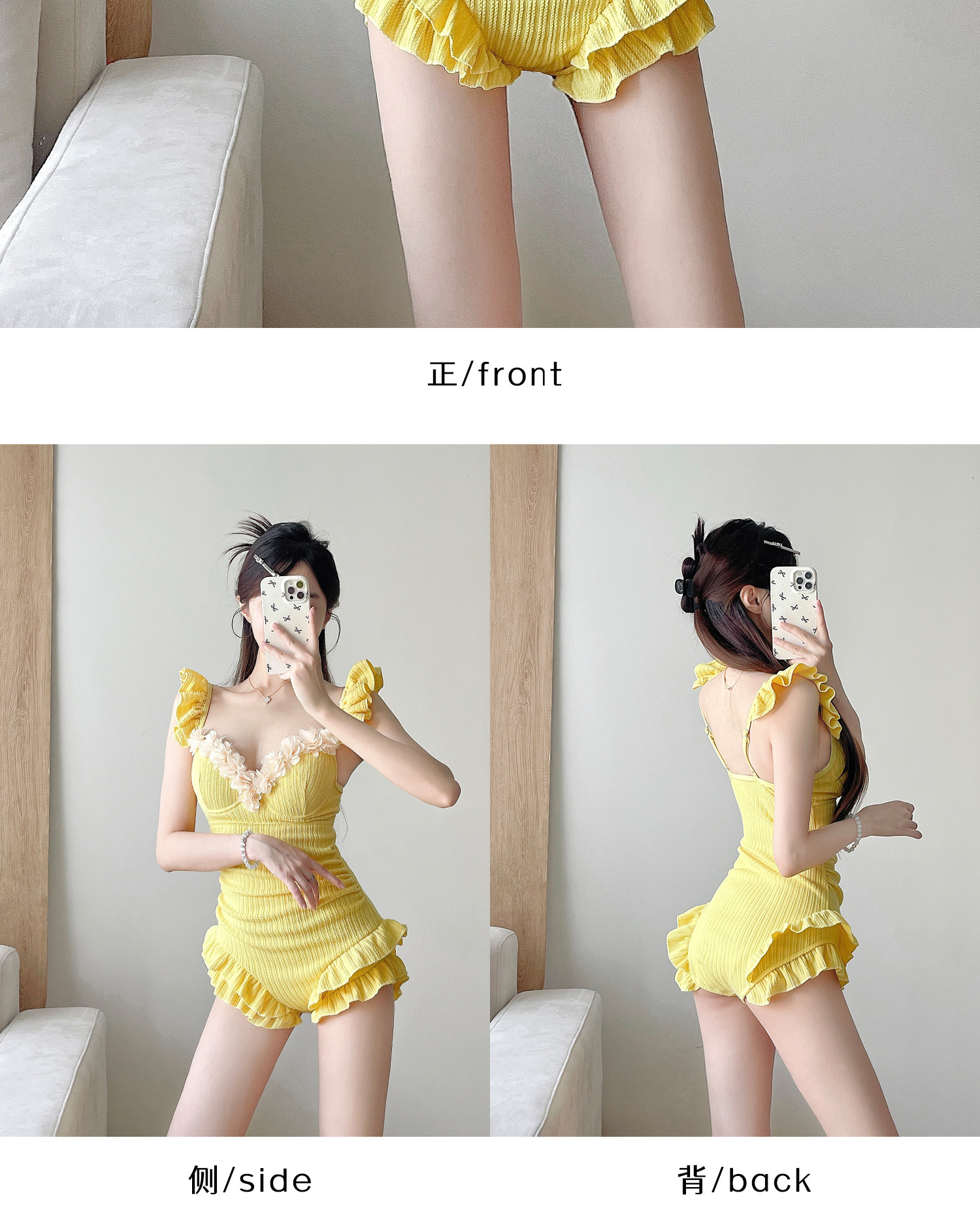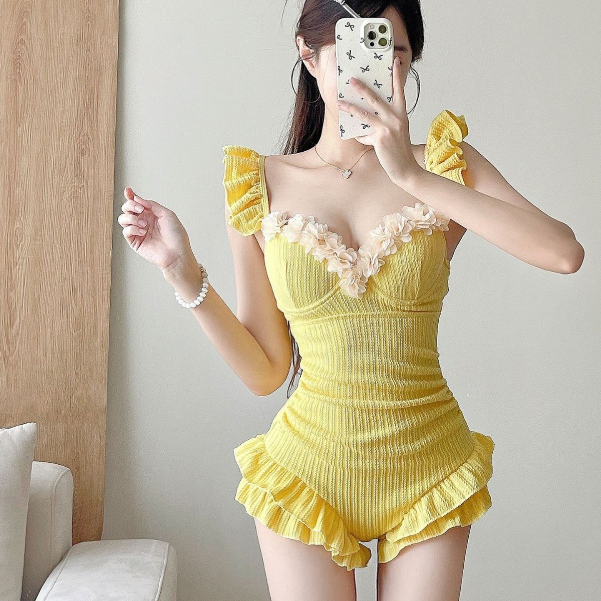2025新款氛围感纯欲风连体裙式泳衣女小胸聚拢海边度假风游泳装