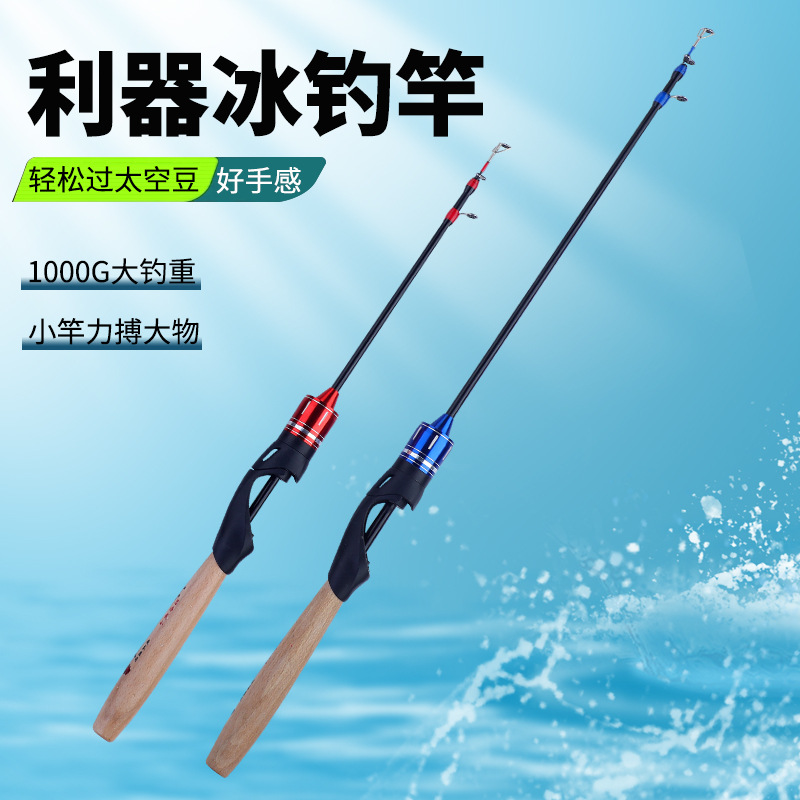厂家直发冰钓竿实木竿柄钓鱼竿筏竿软调硬调冬季钓鱼竿超短冰钓竿