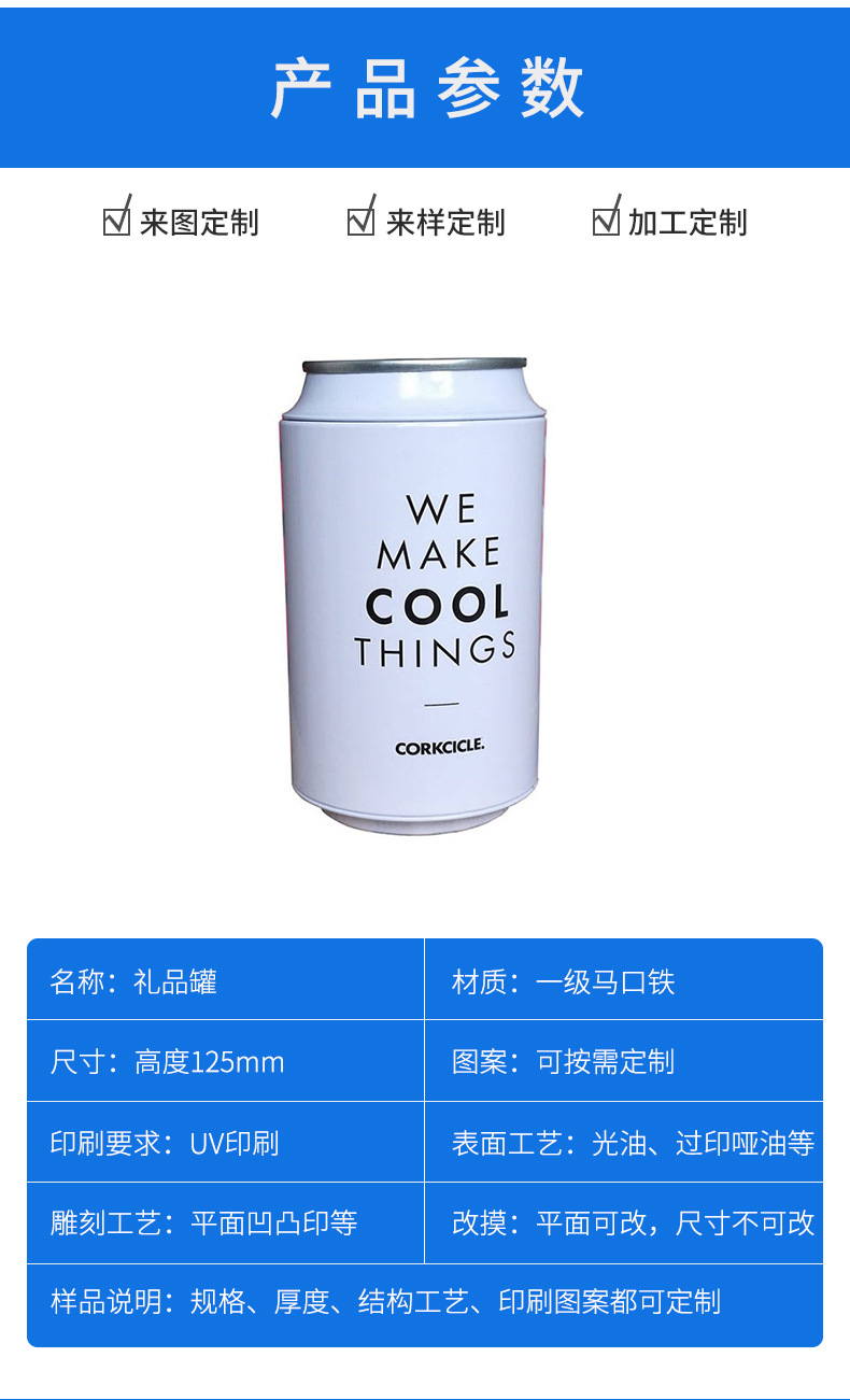 马口铁可乐罐压缩毛巾罐易拉罐礼品包装铁盒袜子包装圆形铁罐