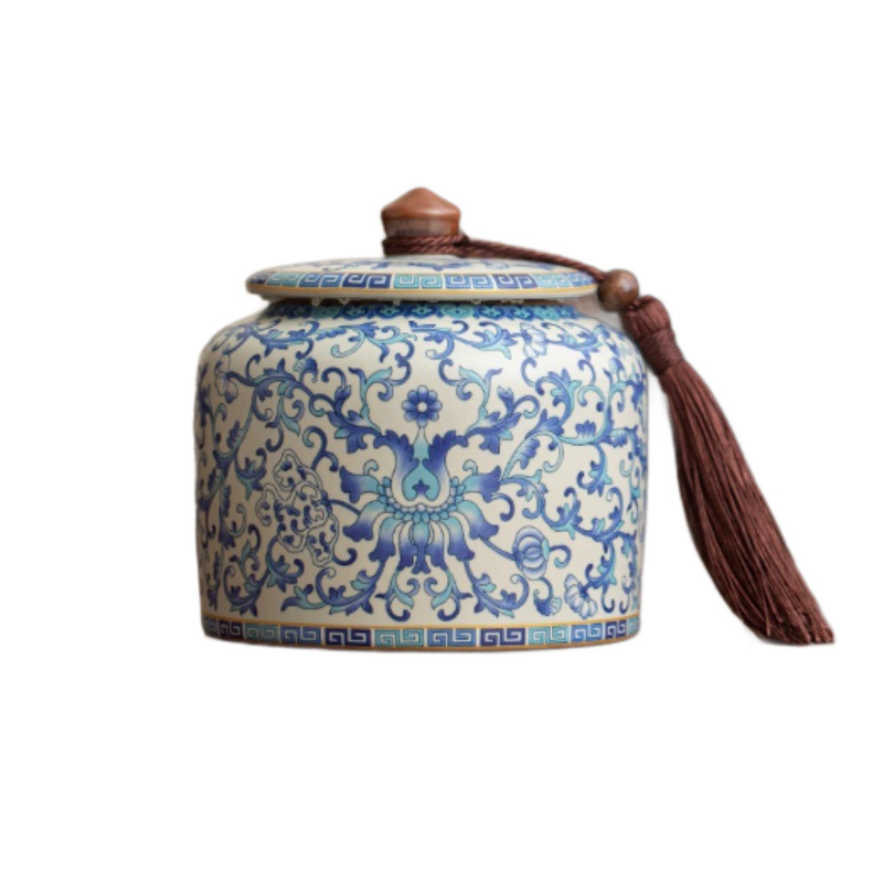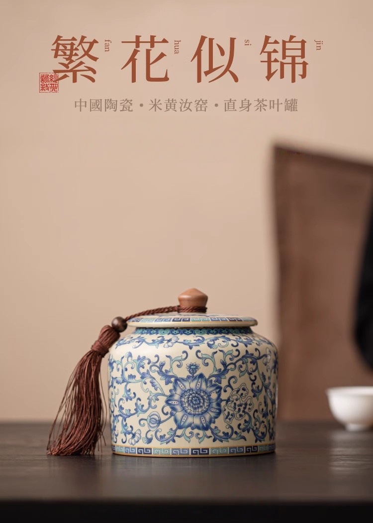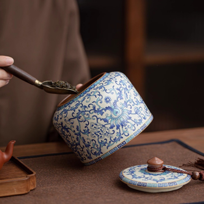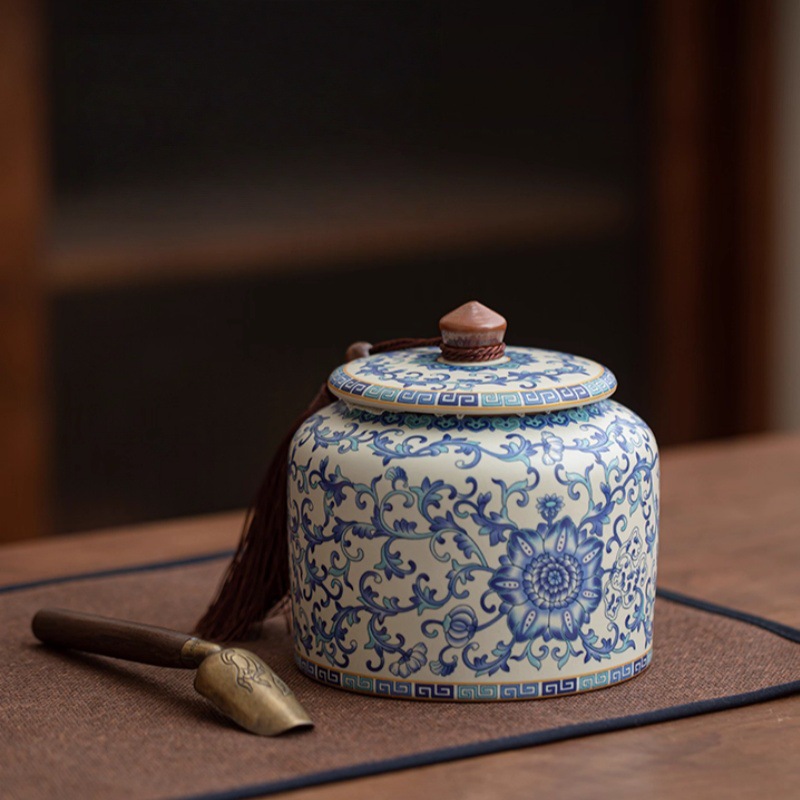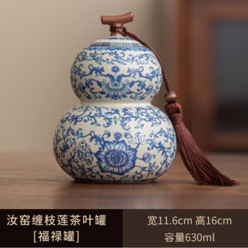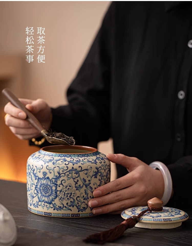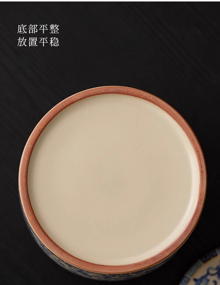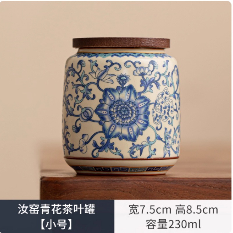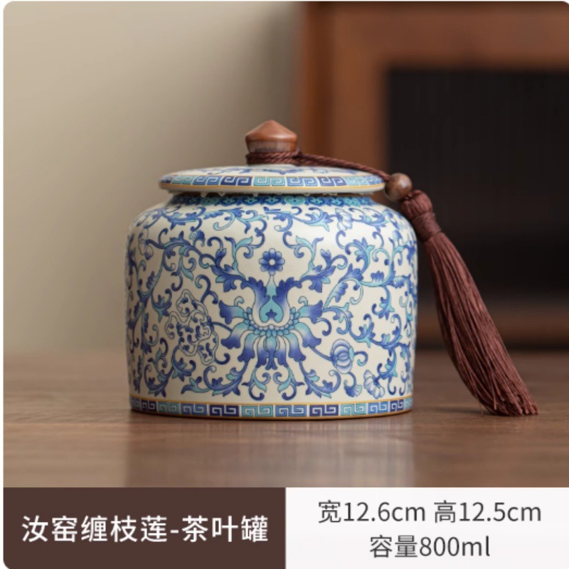 青花汝窑茶叶罐大容量陶瓷中式密封储存罐绿茶白茶普洱茶防潮尘罐