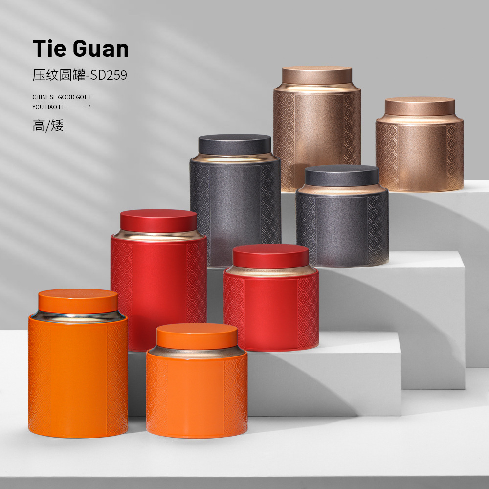 新款通用茶叶罐铁罐中号125g圆形密封茶罐红茶散茶白茶储存罐空罐