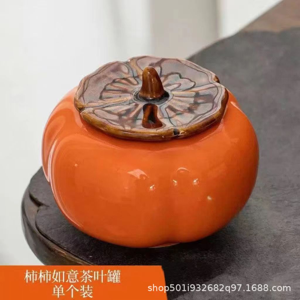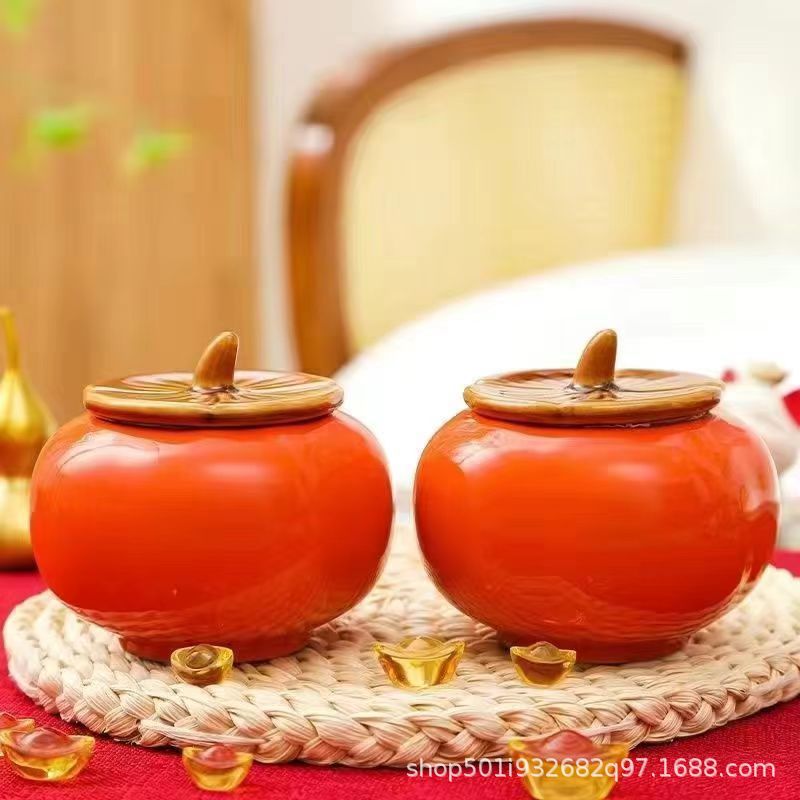 柿柿如意柿子陶瓷茶叶罐密封罐茶罐储存罐储家用空罐摆件创意婚庆