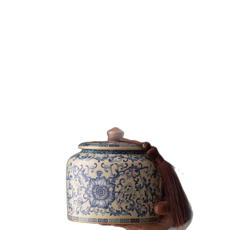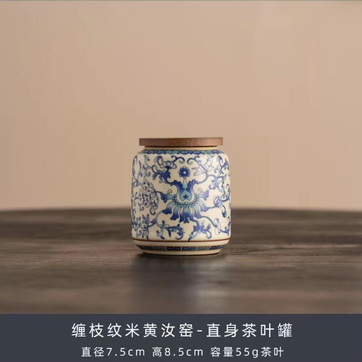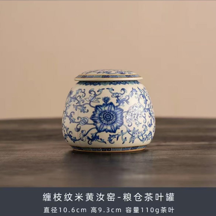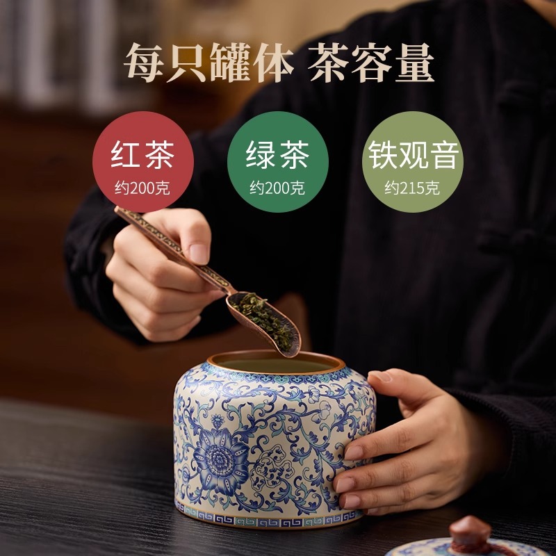 青花汝窑陶瓷茶叶罐精品高档绿茶白茶普洱茶防潮罐中式密封储存罐