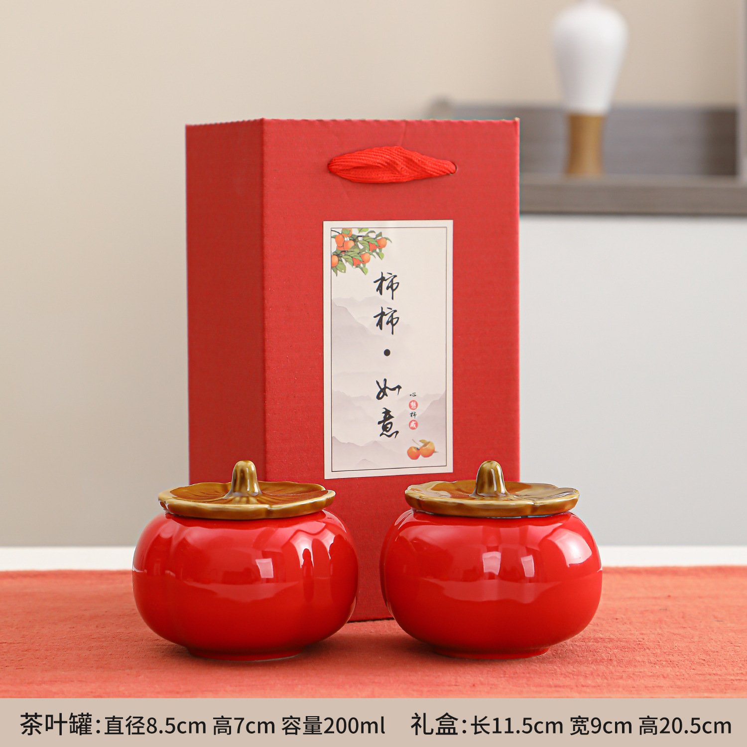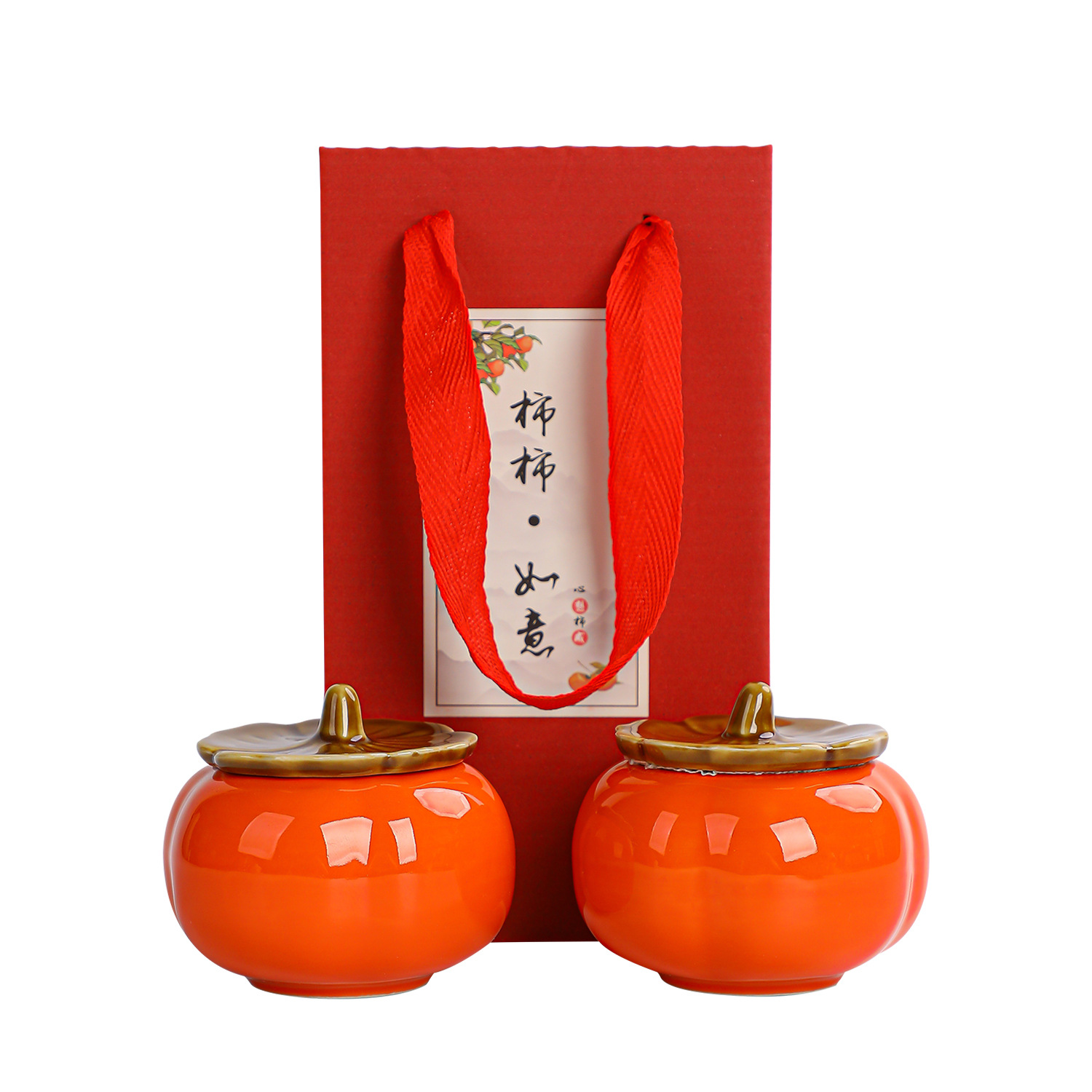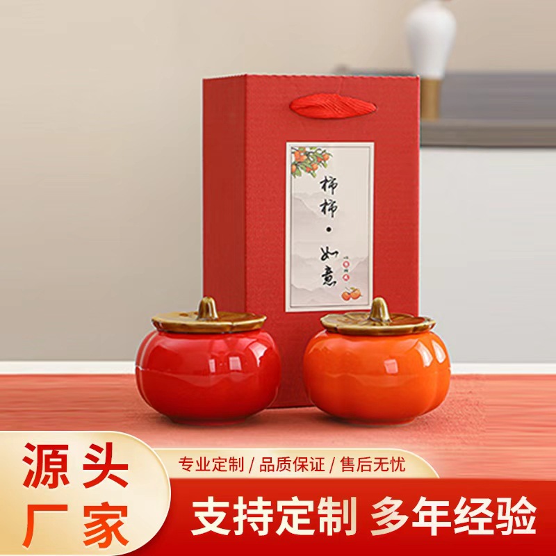 柿柿陶瓷茶叶罐密封罐喜糖茶叶盒婚前如意伴手礼糖果罐子柿子礼品