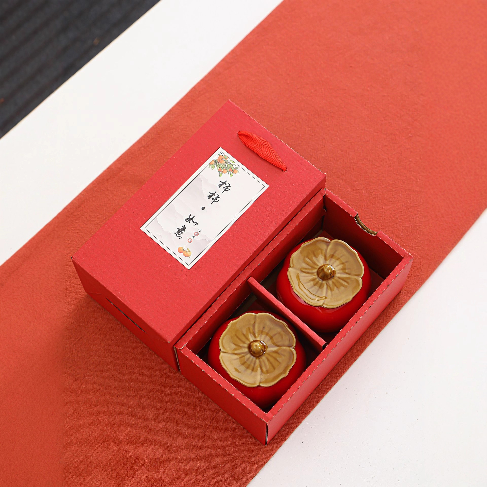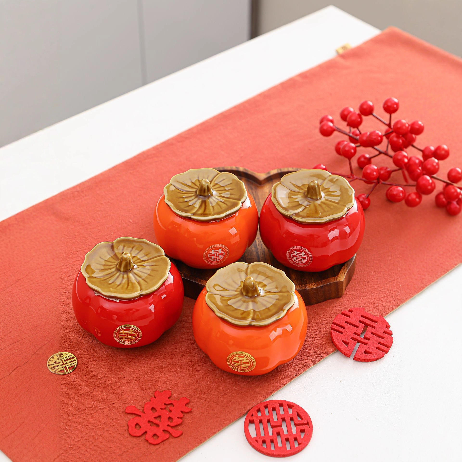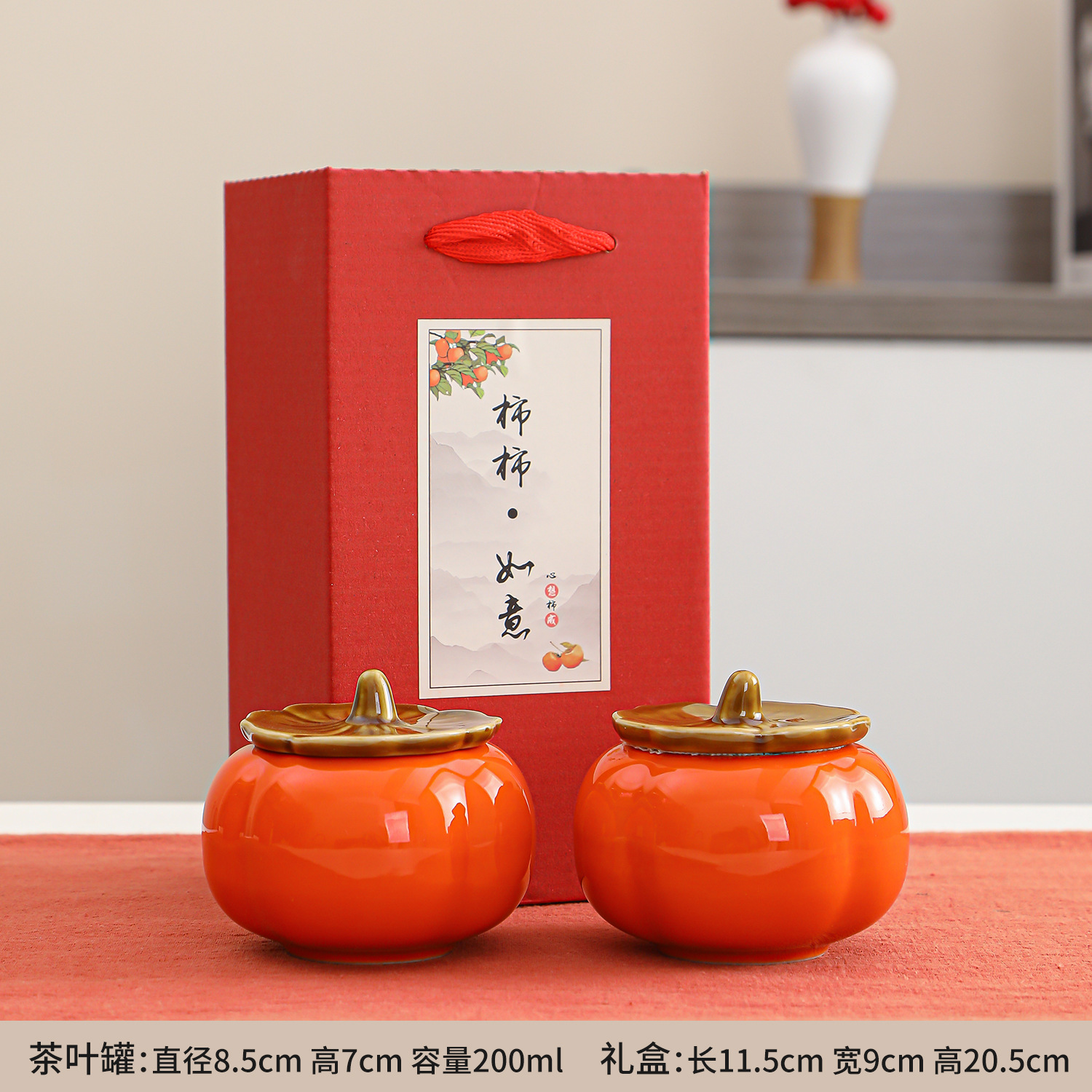 柿柿陶瓷茶叶罐密封罐喜糖茶叶盒婚前如意伴手礼糖果罐子柿子礼品