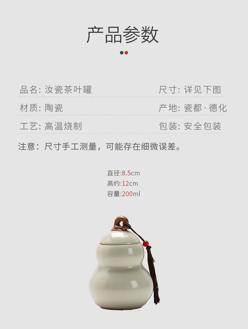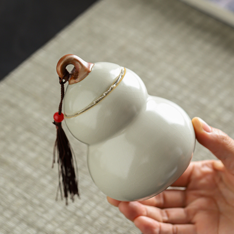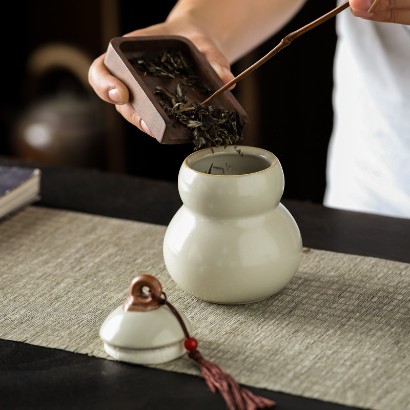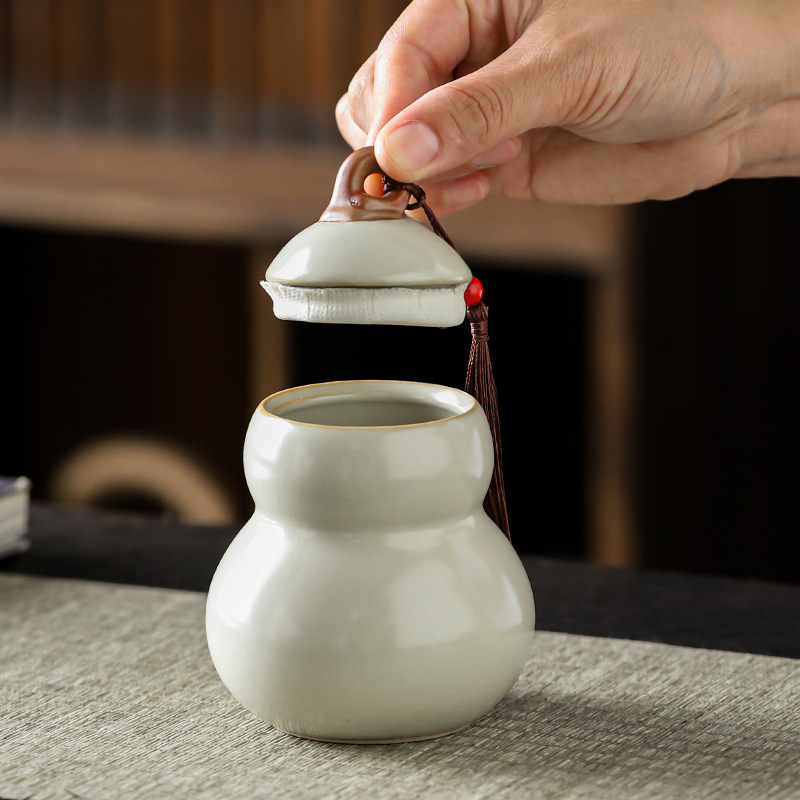 汝窑陶瓷茶叶罐空罐小号密封罐家用绿茶红茶储存罐便携防潮存茶罐