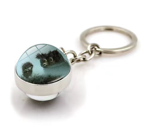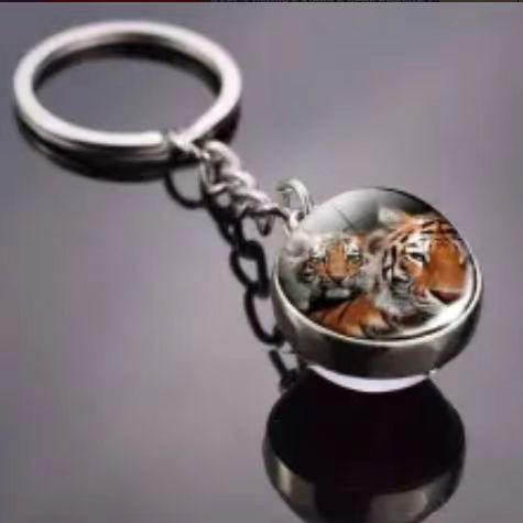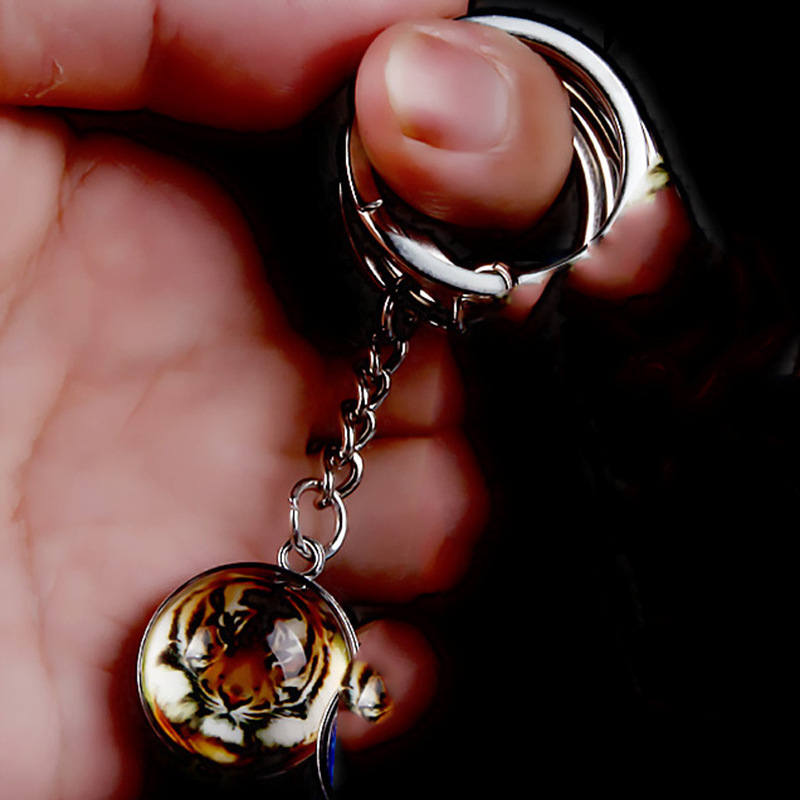 荧光老虎钥匙扣夜光幸运水晶球钥匙链动物世界刺猬夜光水晶钥匙扣