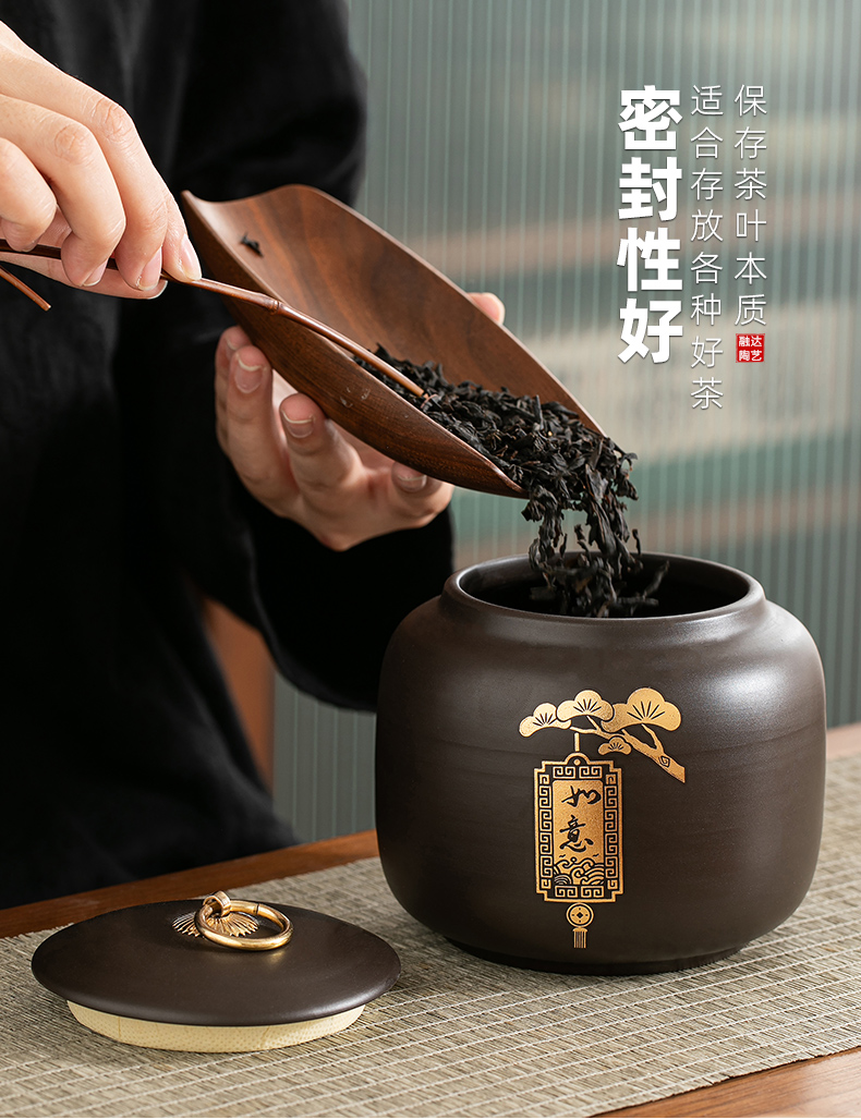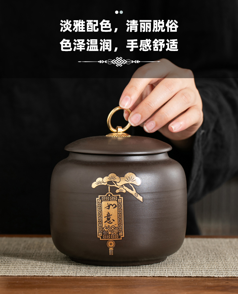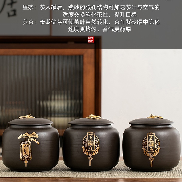 紫砂茶叶罐茶罐储存罐家用防潮密封罐普洱红茶白茶感
