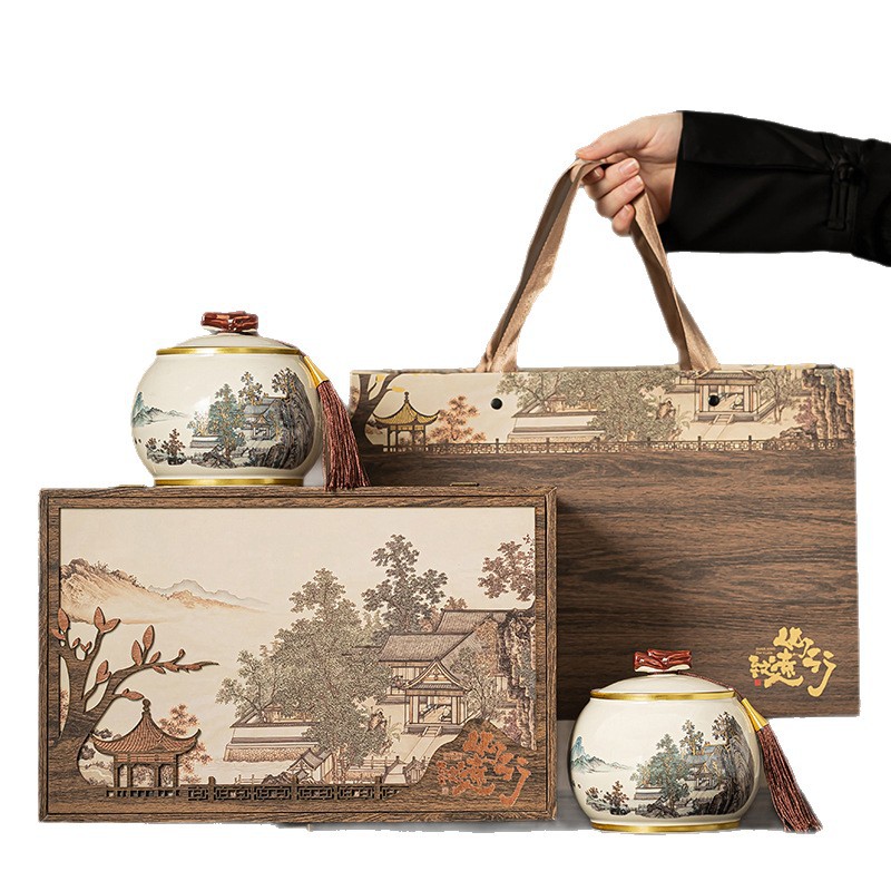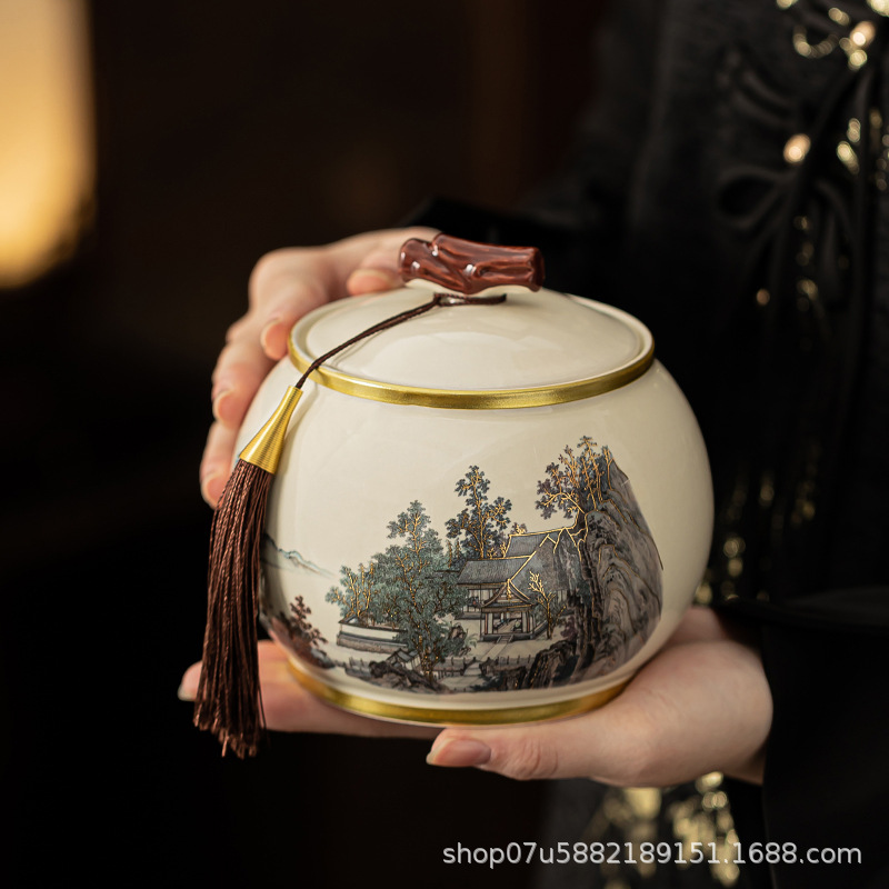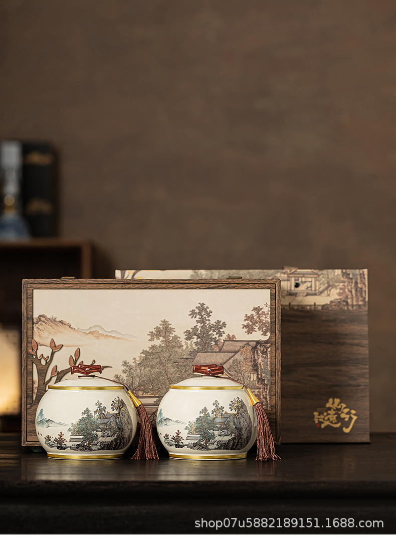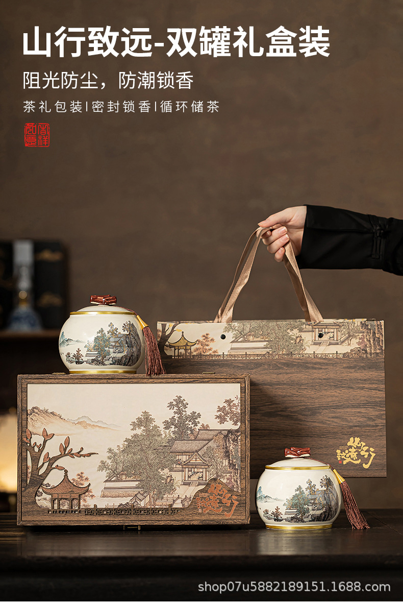 新款陶瓷茶叶罐包装礼盒款红茶绿茶白茶新品密封罐印logo茶叶罐