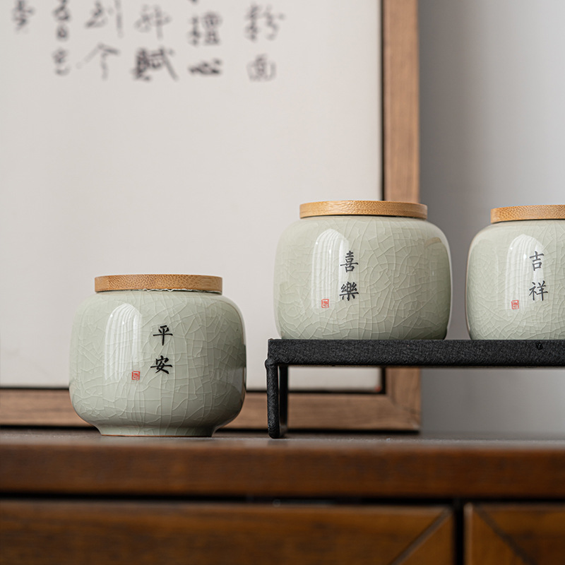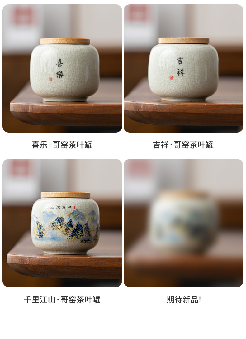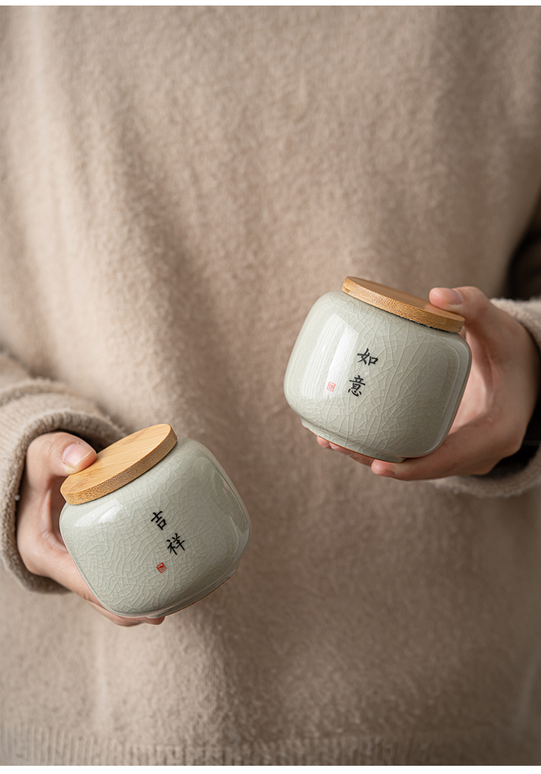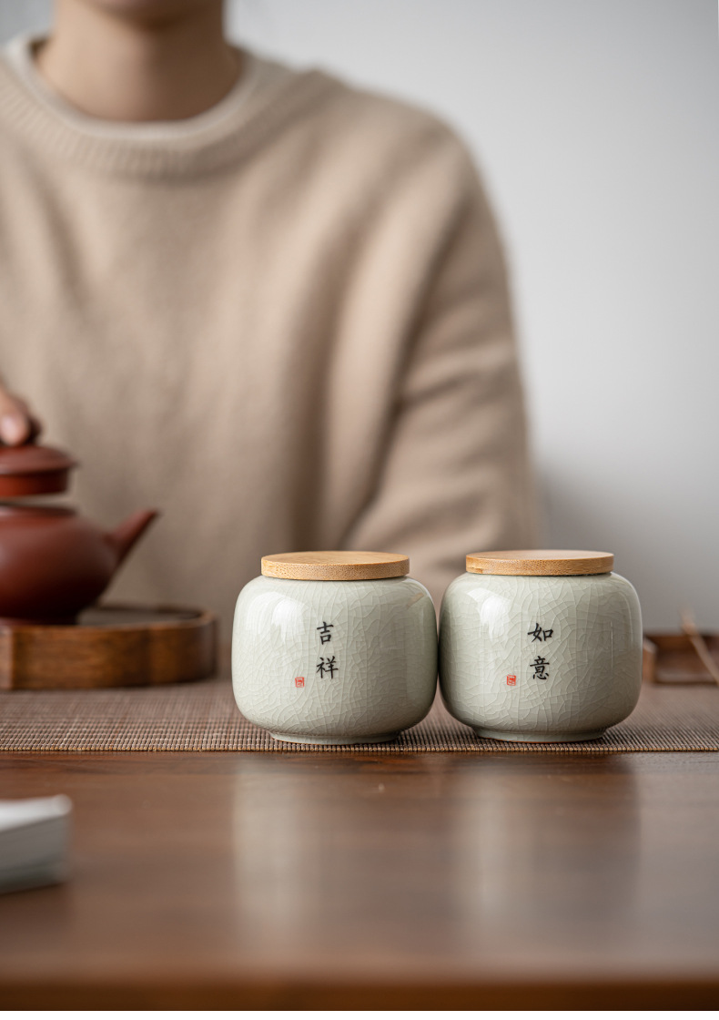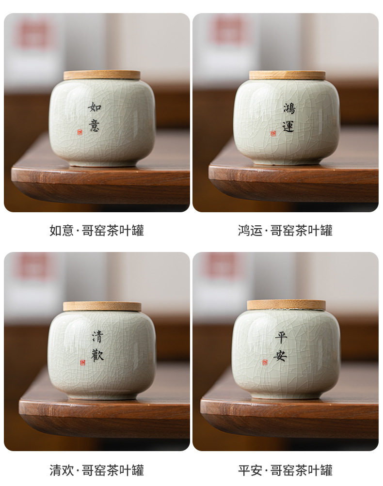哥窑茶叶罐密封罐便携迷你小号罐复古风存茶叶家用陶瓷茶罐茶具批