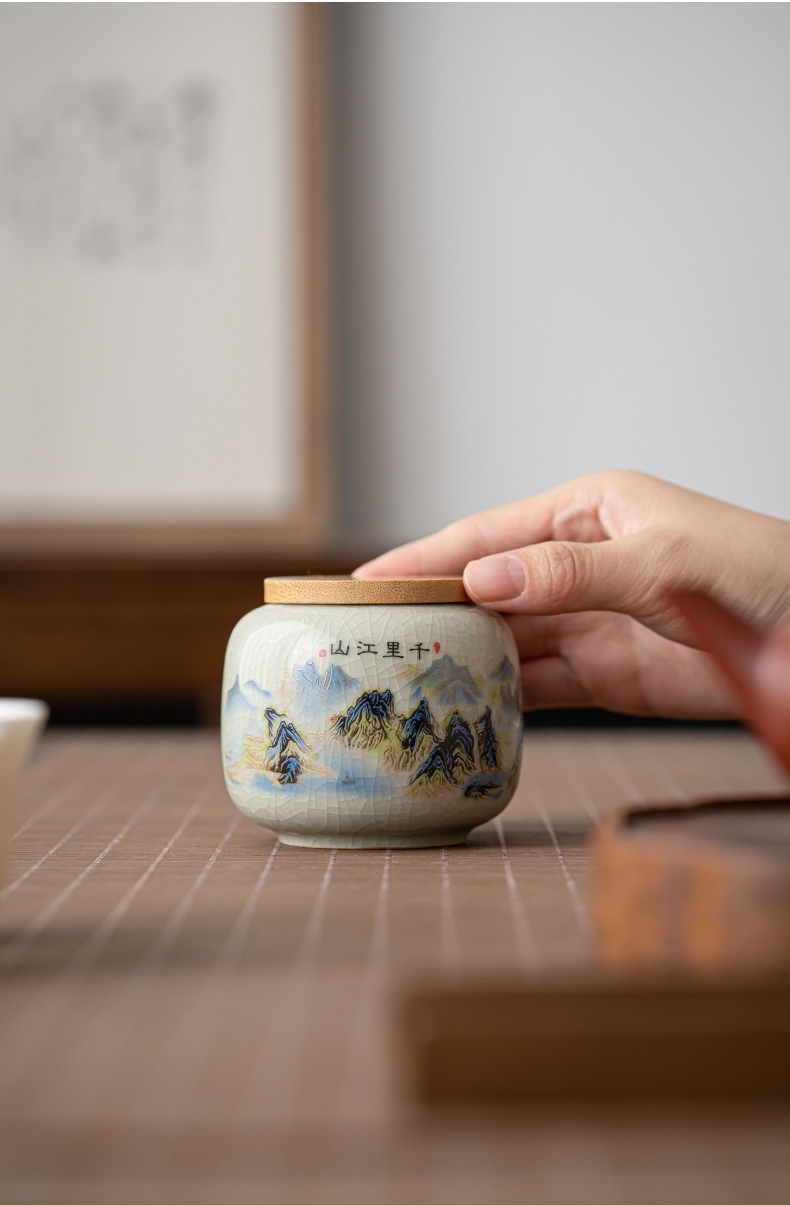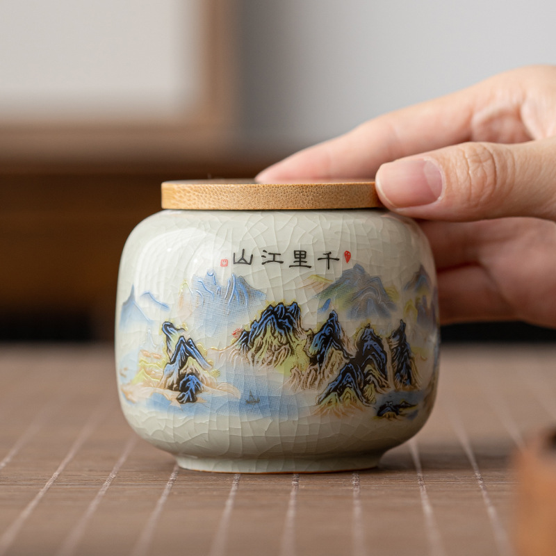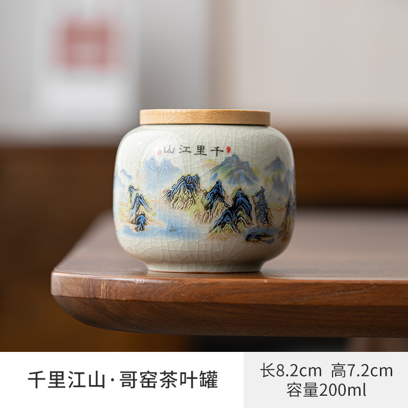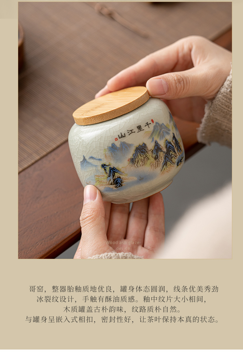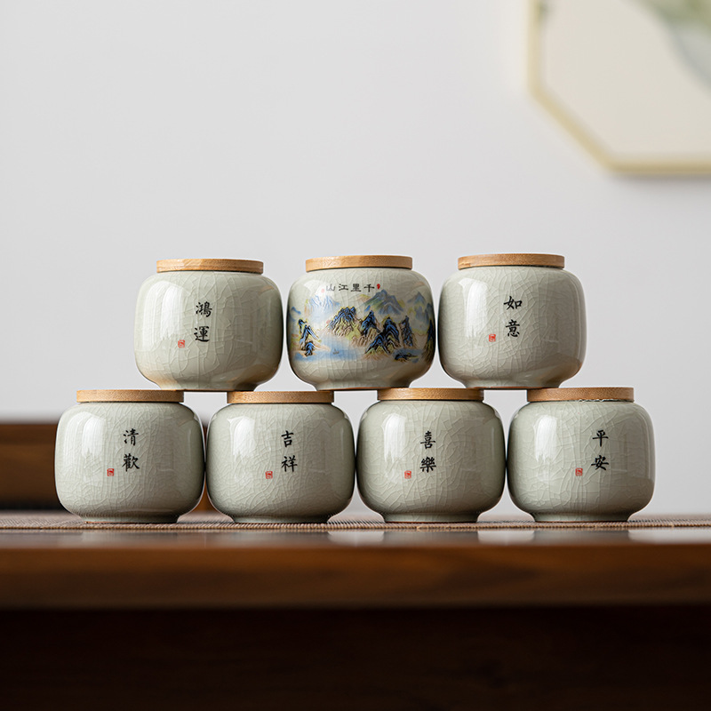哥窑茶叶罐密封罐便携迷你小号罐复古风存茶叶家用陶瓷茶罐茶具批
