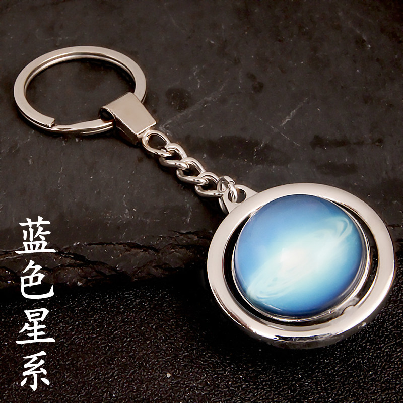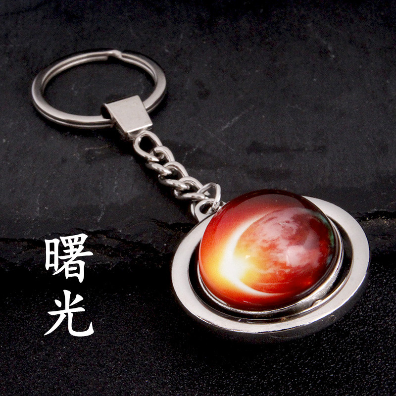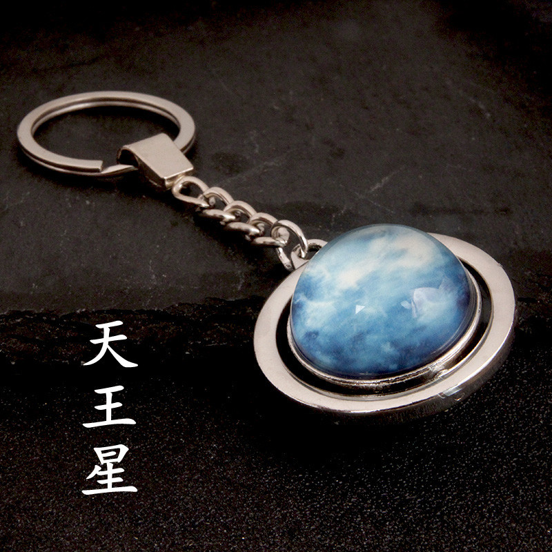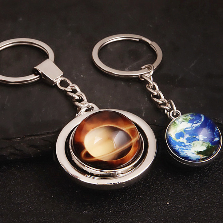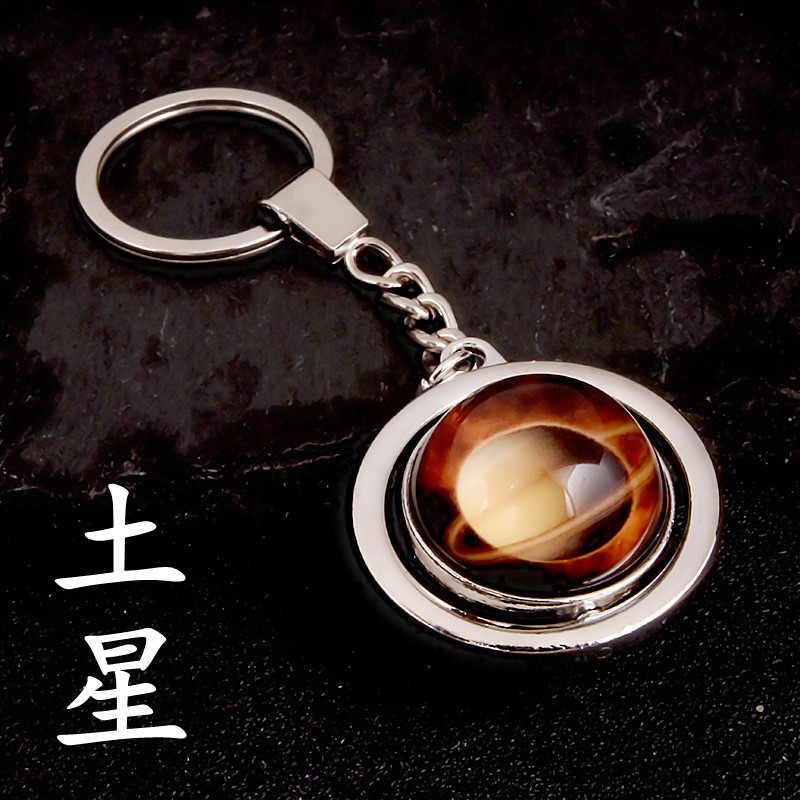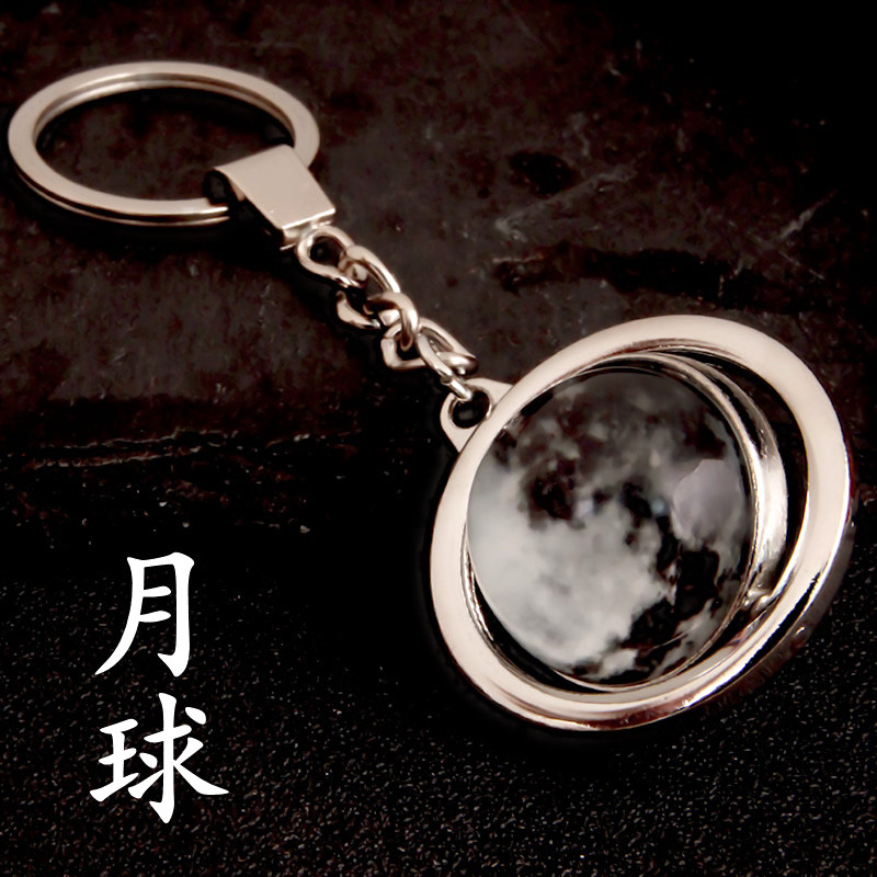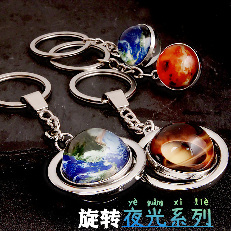 大号旋转土星夜光太阳九大行星月球钥匙扣圆形双面水晶地球钥匙扣