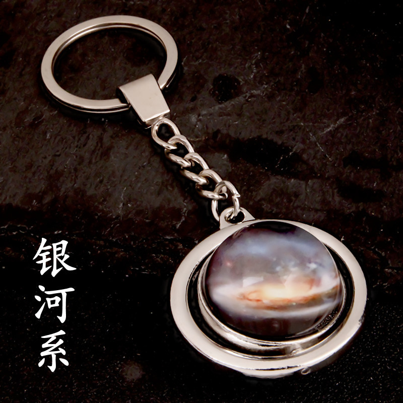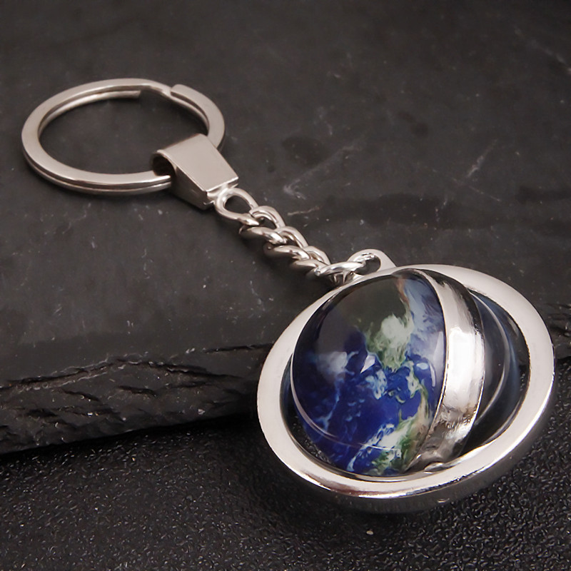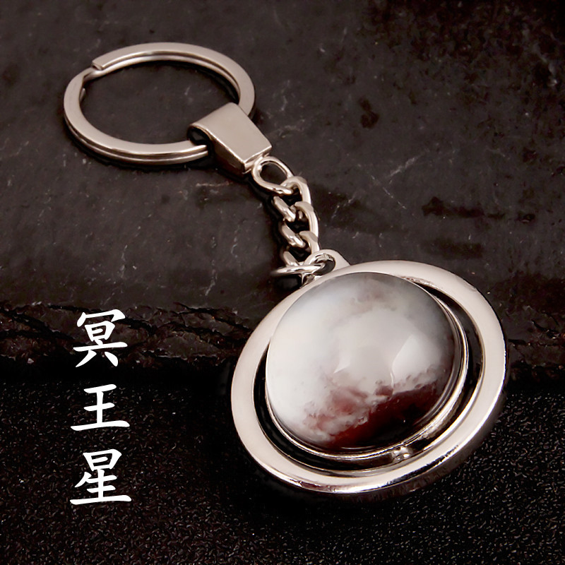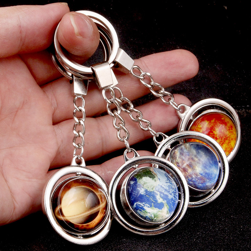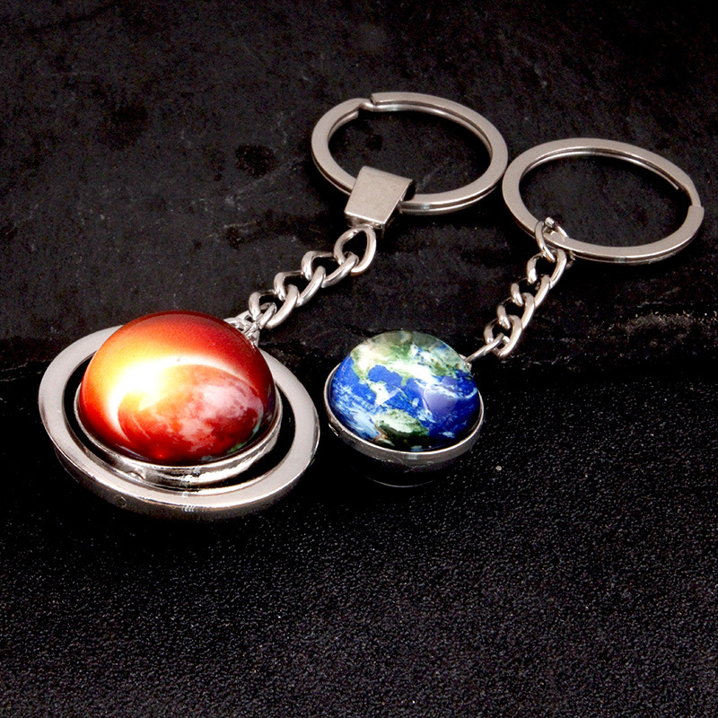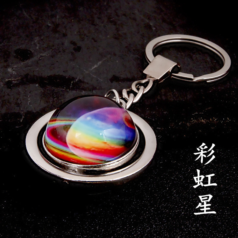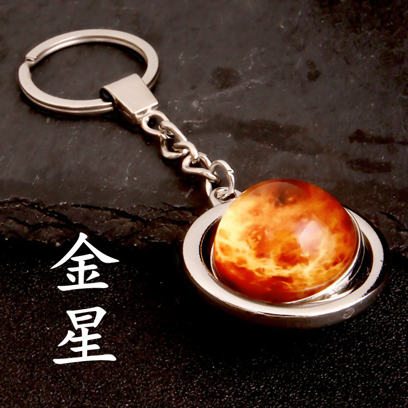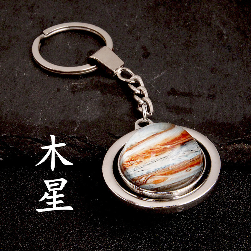 大号旋转土星夜光太阳九大行星月球钥匙扣圆形双面水晶地球钥匙扣