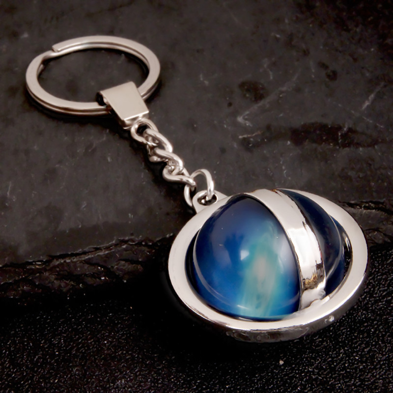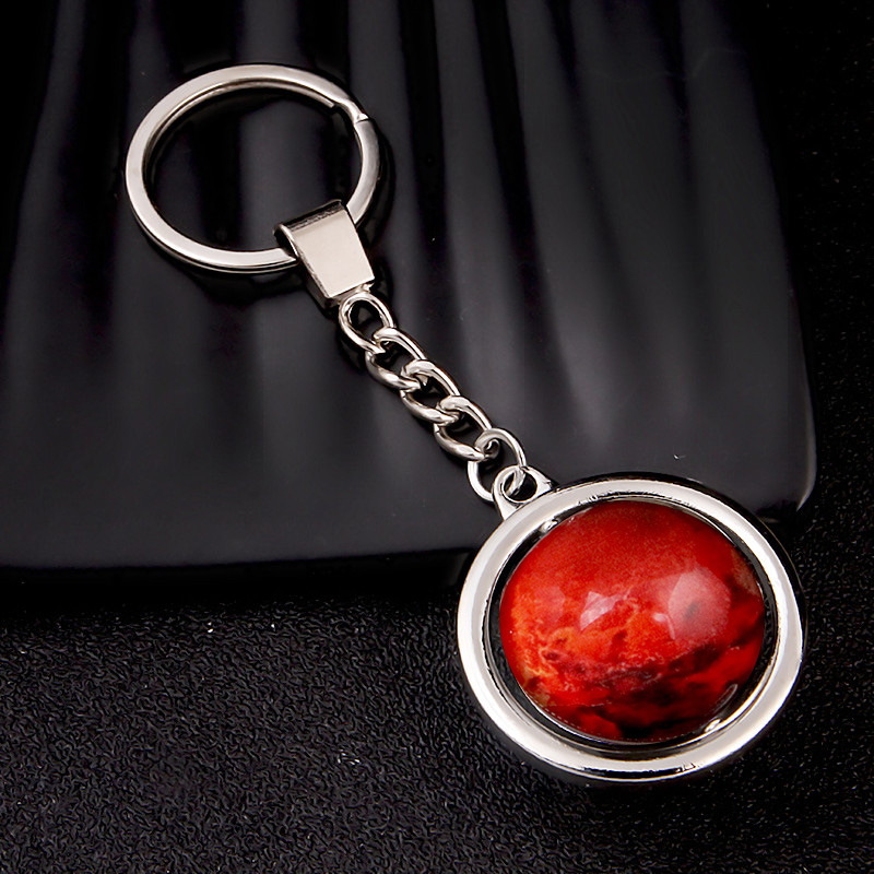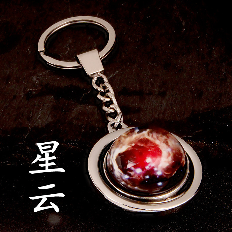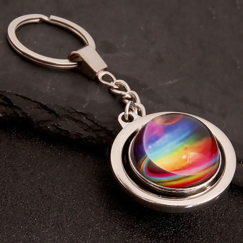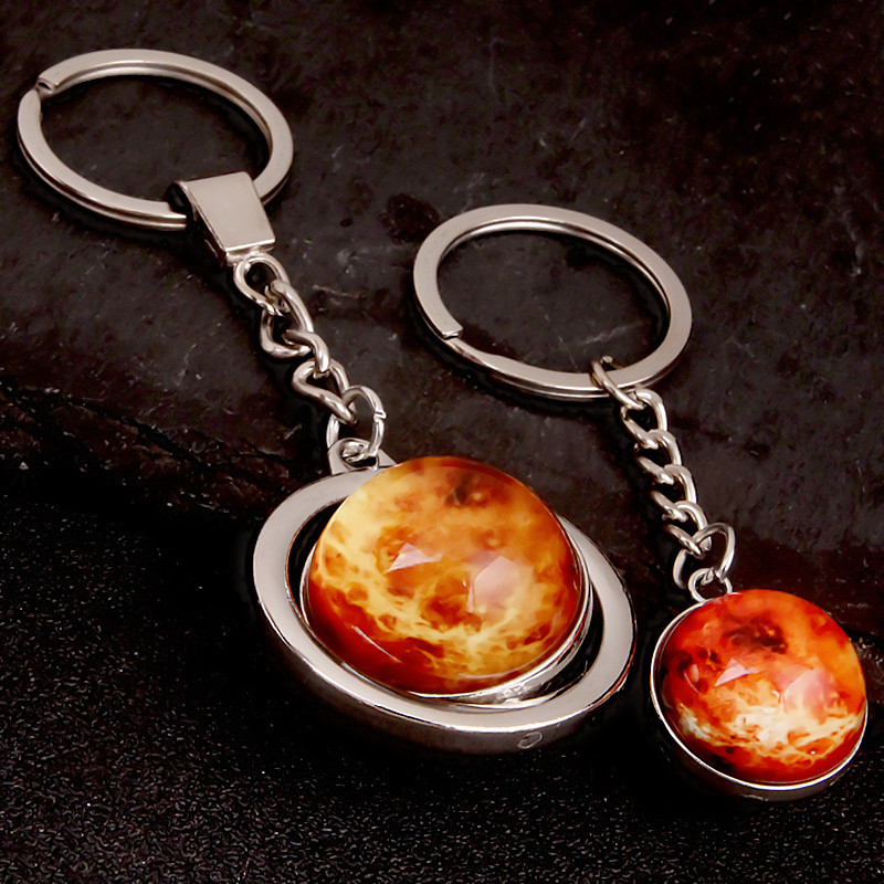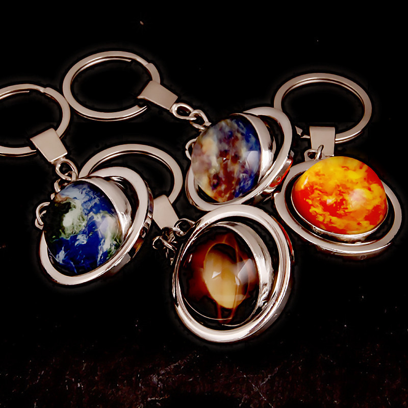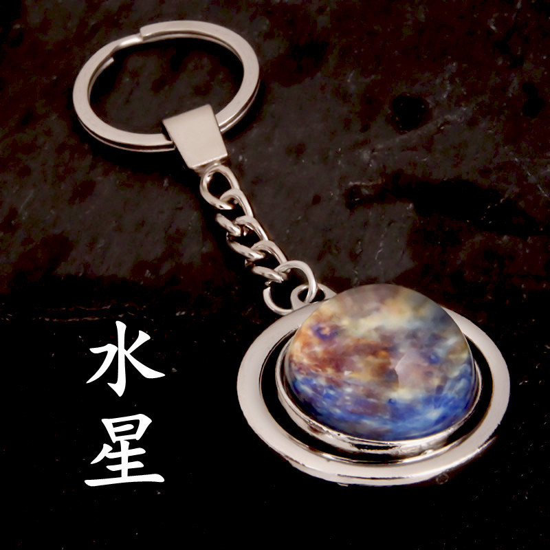 大号旋转土星夜光太阳九大行星月球钥匙扣圆形双面水晶地球钥匙扣