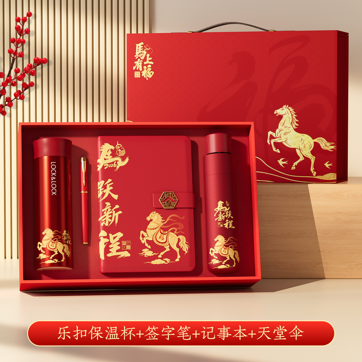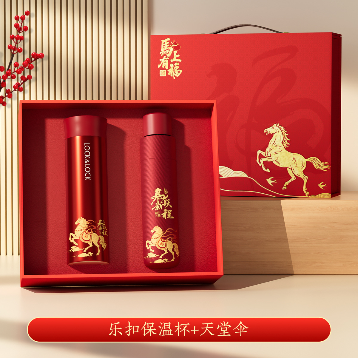 2026马年春节新年礼物年会伴手礼乐扣保温杯套装开业活动礼品定制