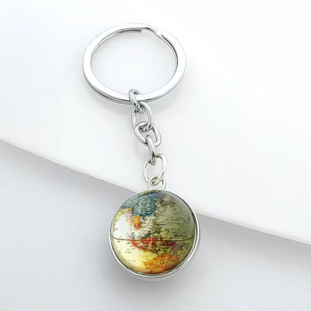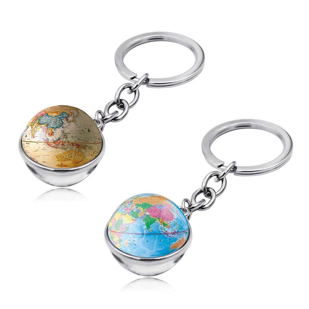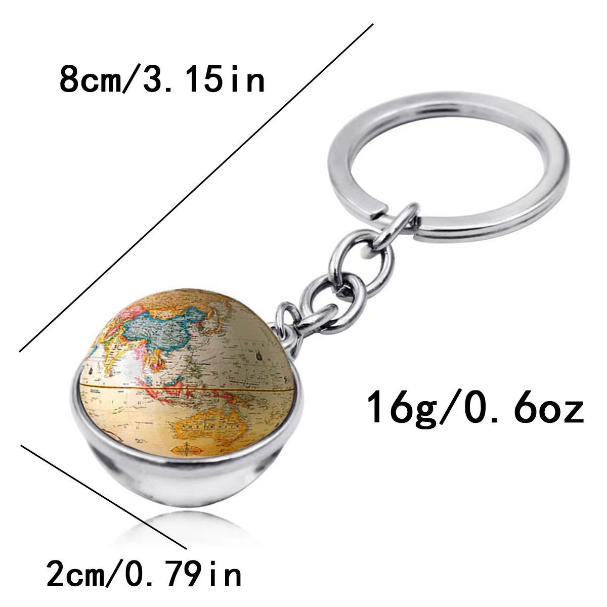 地图地球仪图案时光宝石钥匙扣挂件创意水晶玻璃球吊坠钥匙链挂饰