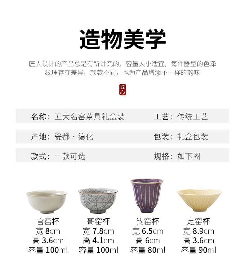 故宫文创宋代汝窑五大名窑茶具茶杯套装公司商务年会礼品定伴手礼
