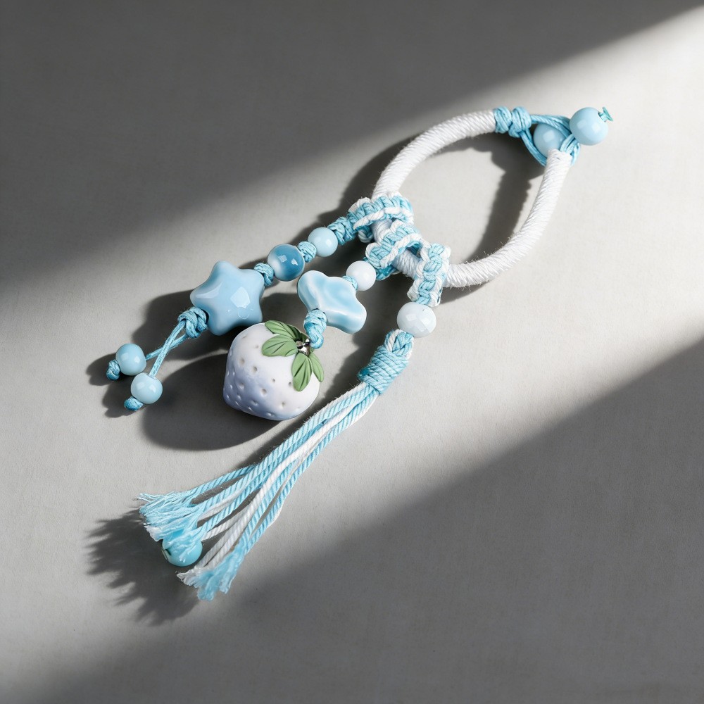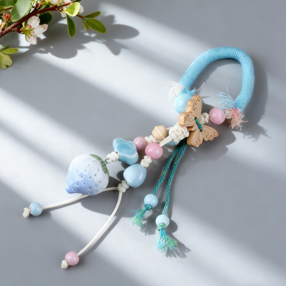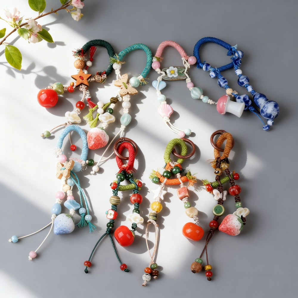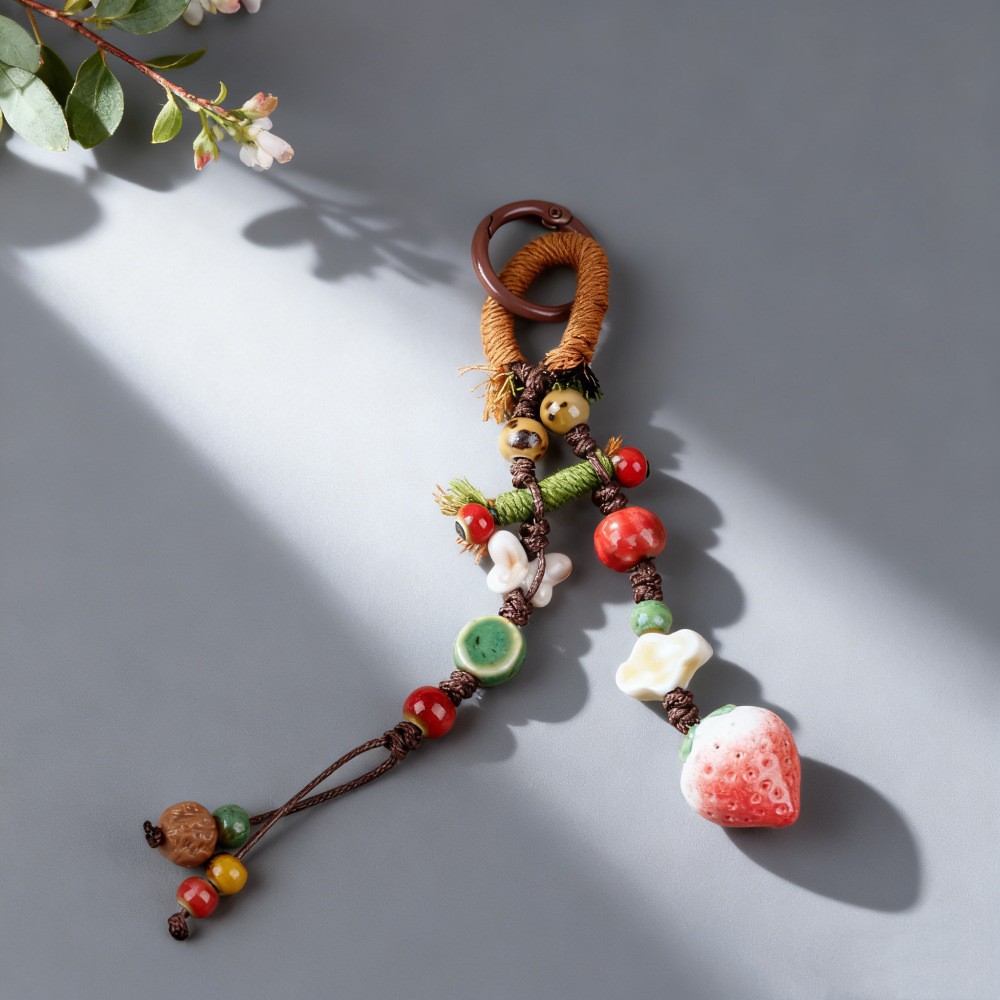 景德镇手工陶瓷包挂链挂件 情侣钥匙扣卡通可爱水果草莓叶子饰品