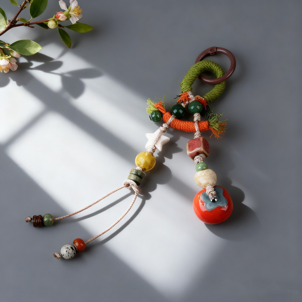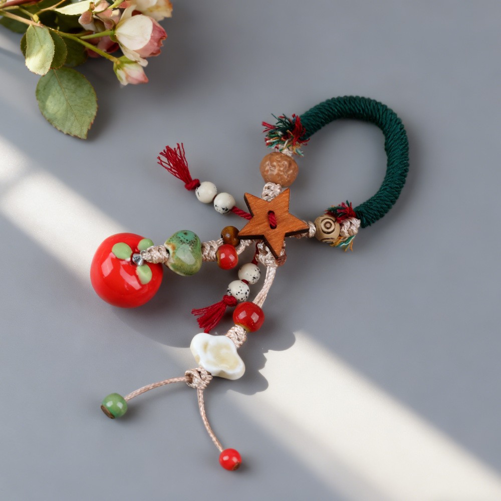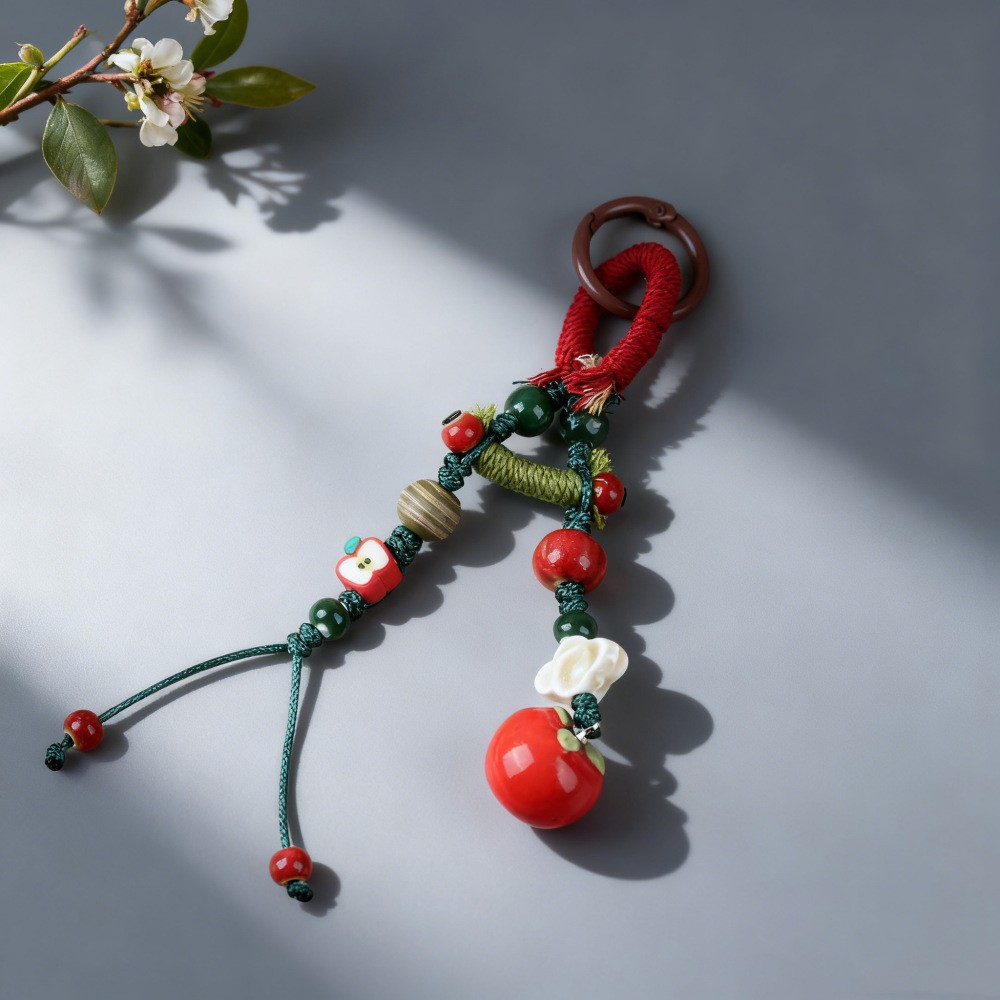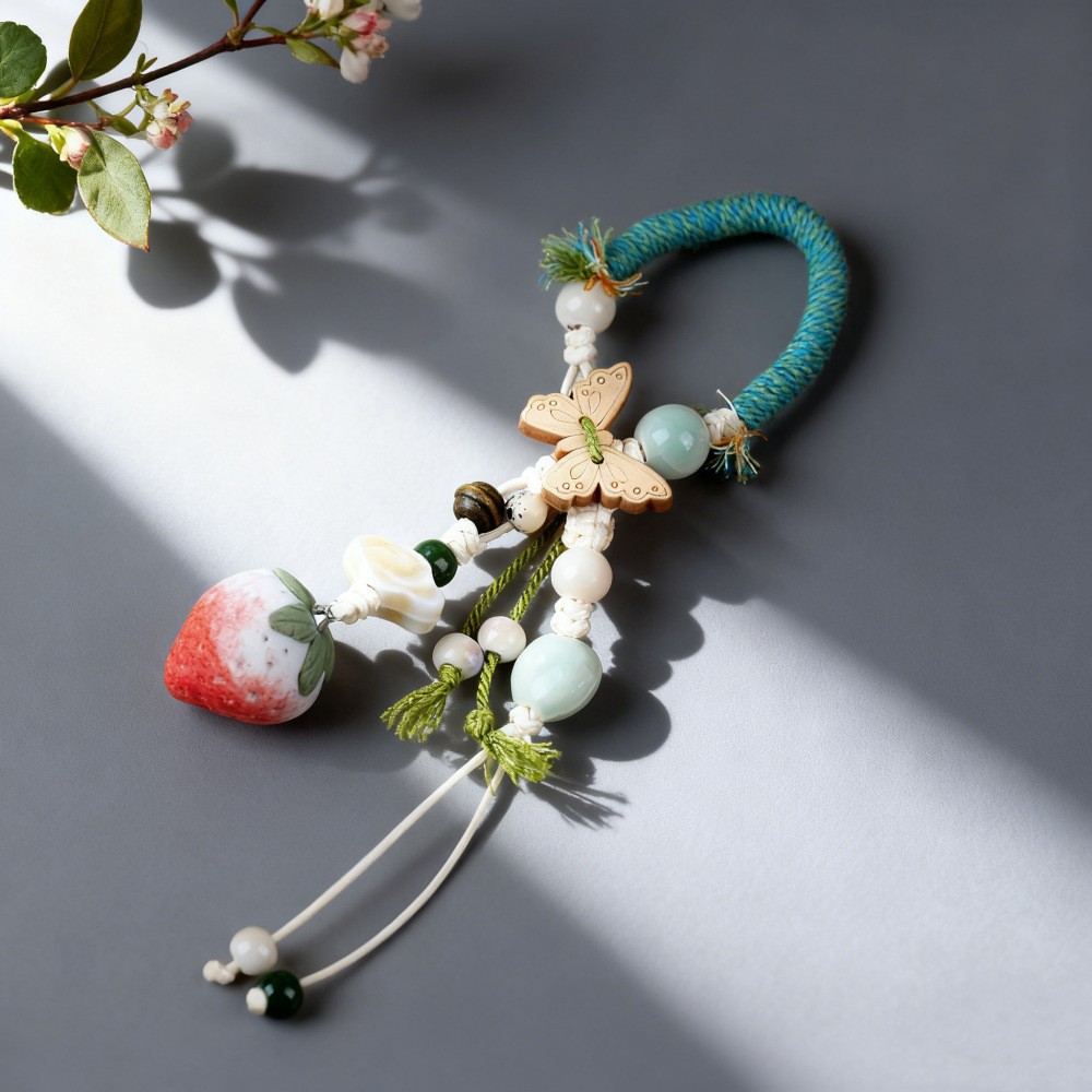 景德镇手工陶瓷包挂链挂件 情侣钥匙扣卡通可爱水果草莓叶子饰品
