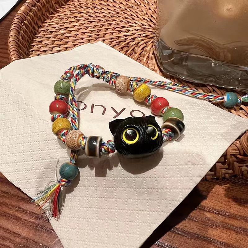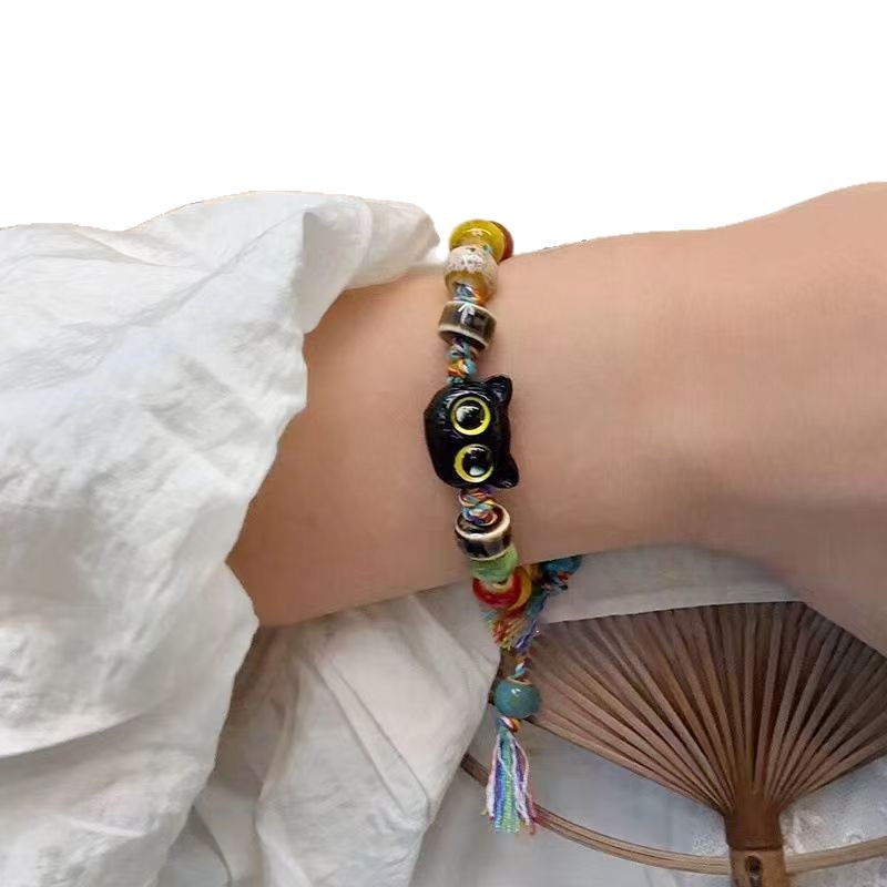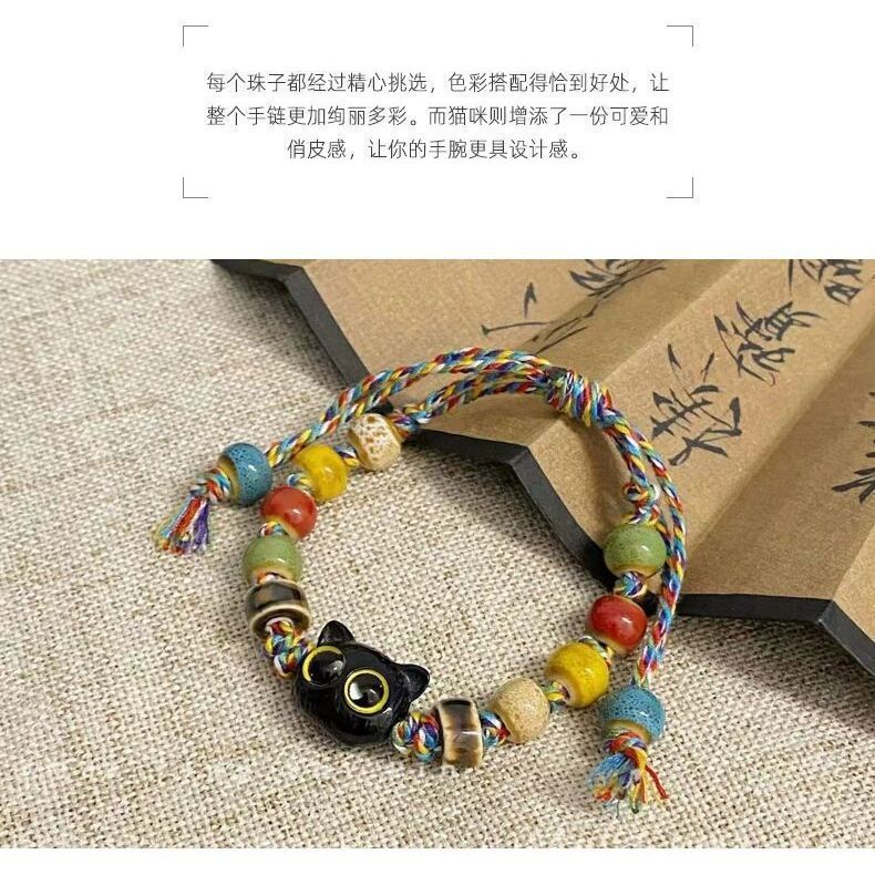 小红书爆款可爱小猫咪手绳女 手工编织彩色高级感民族风百搭手饰