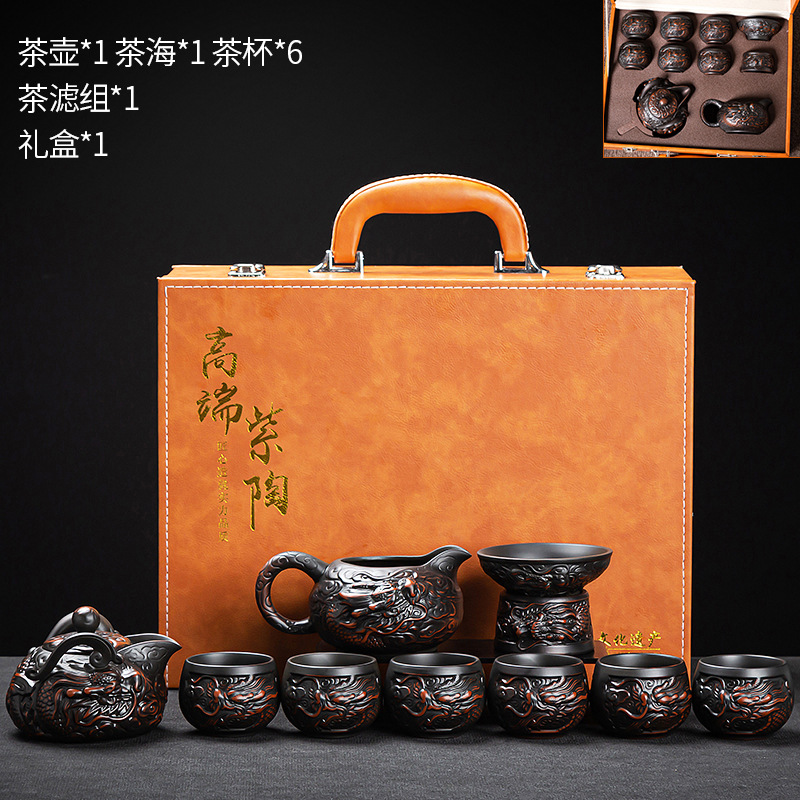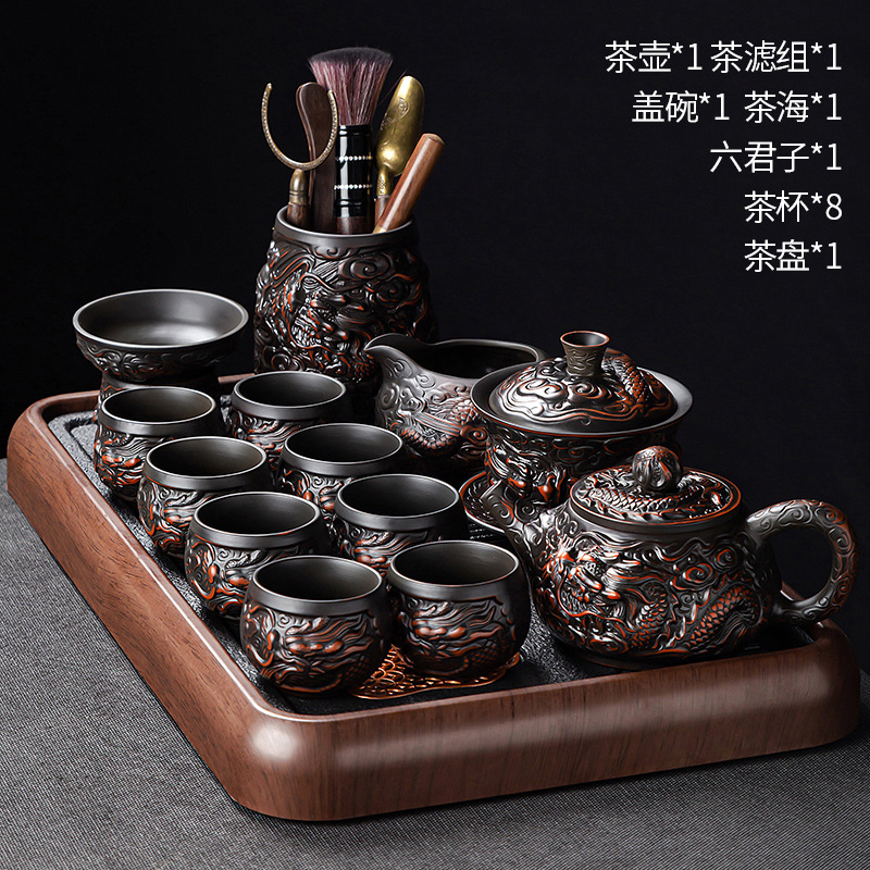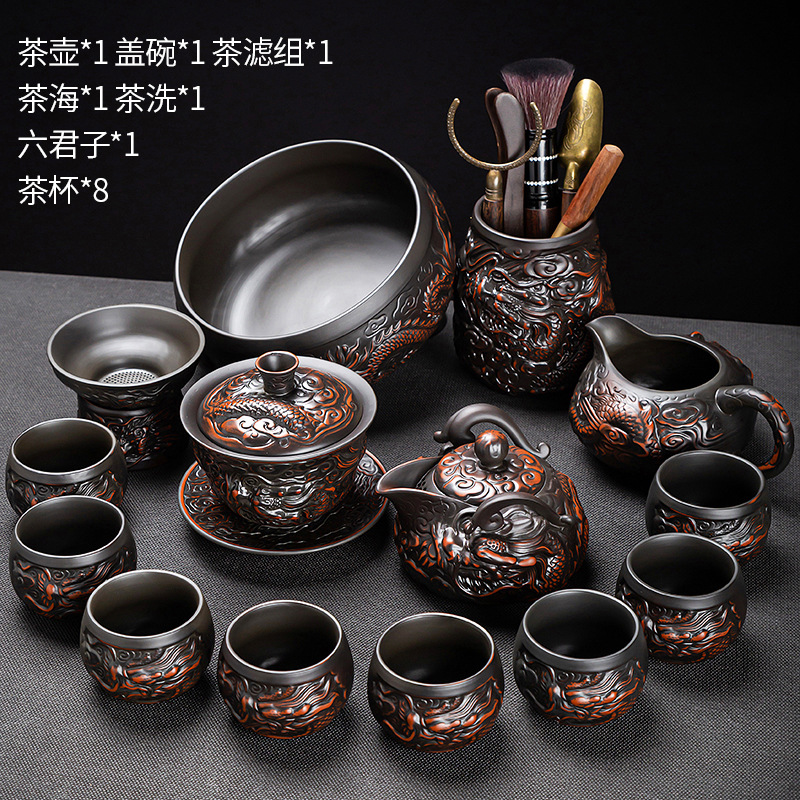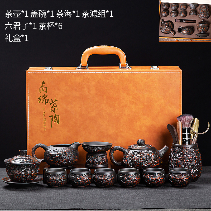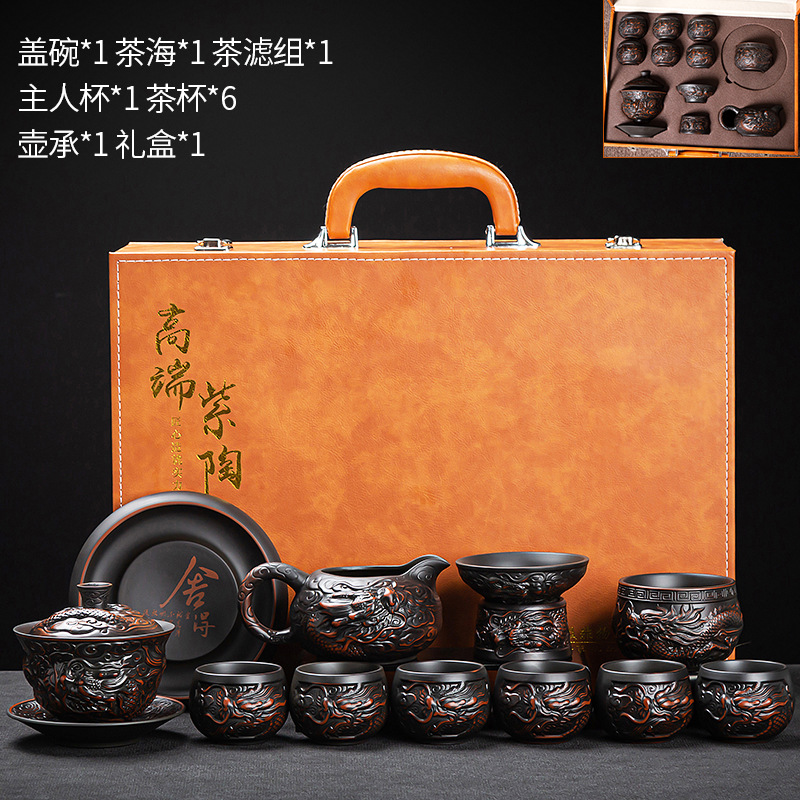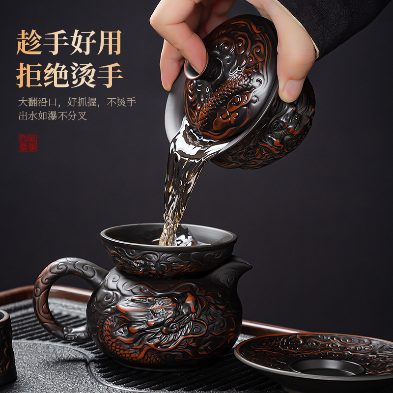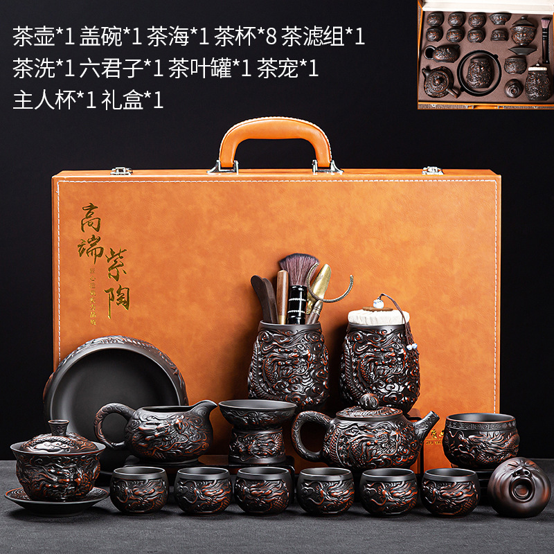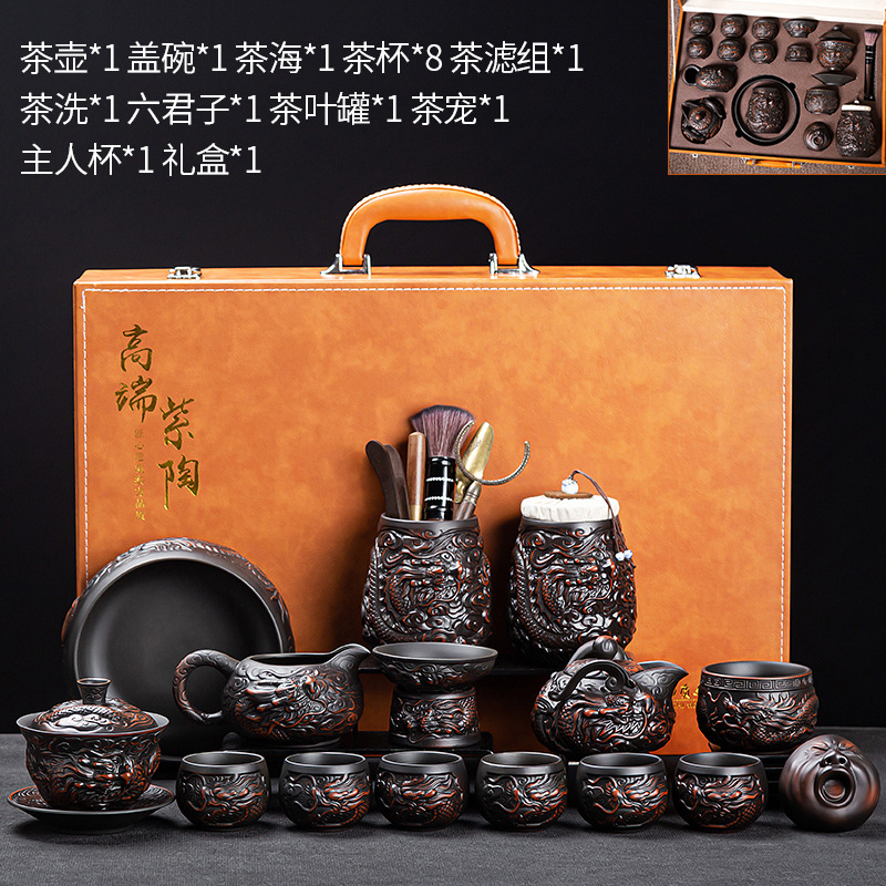 高端紫陶功夫茶具套装家用盖碗泡茶壶茶杯专用2025新款办公室送礼