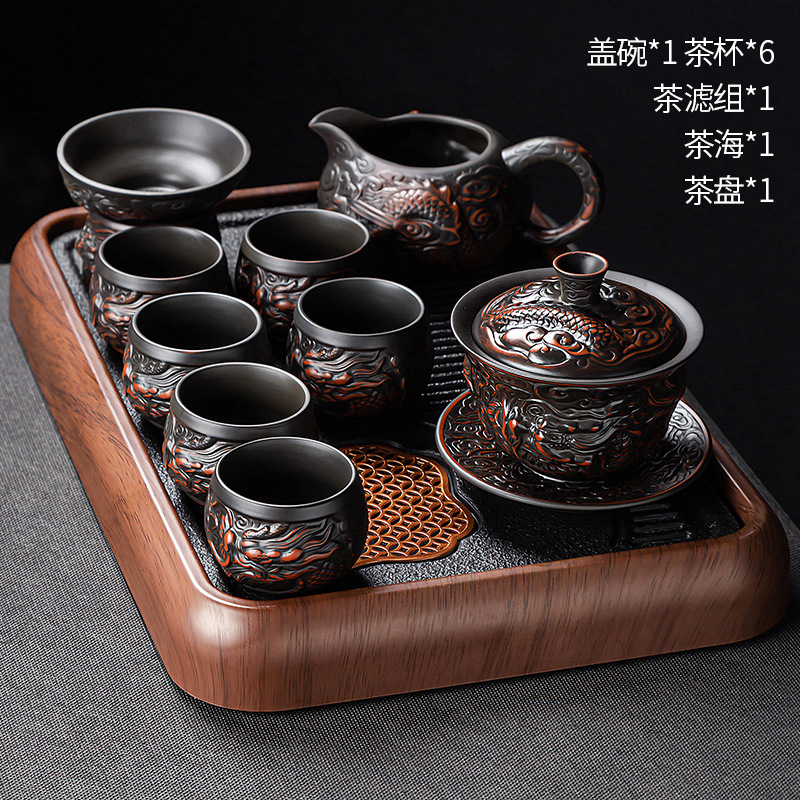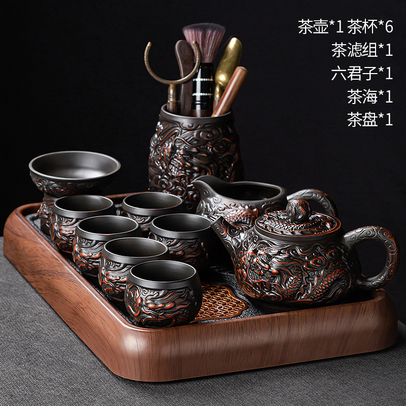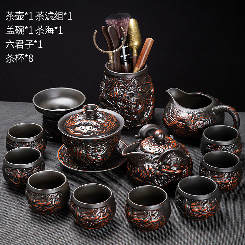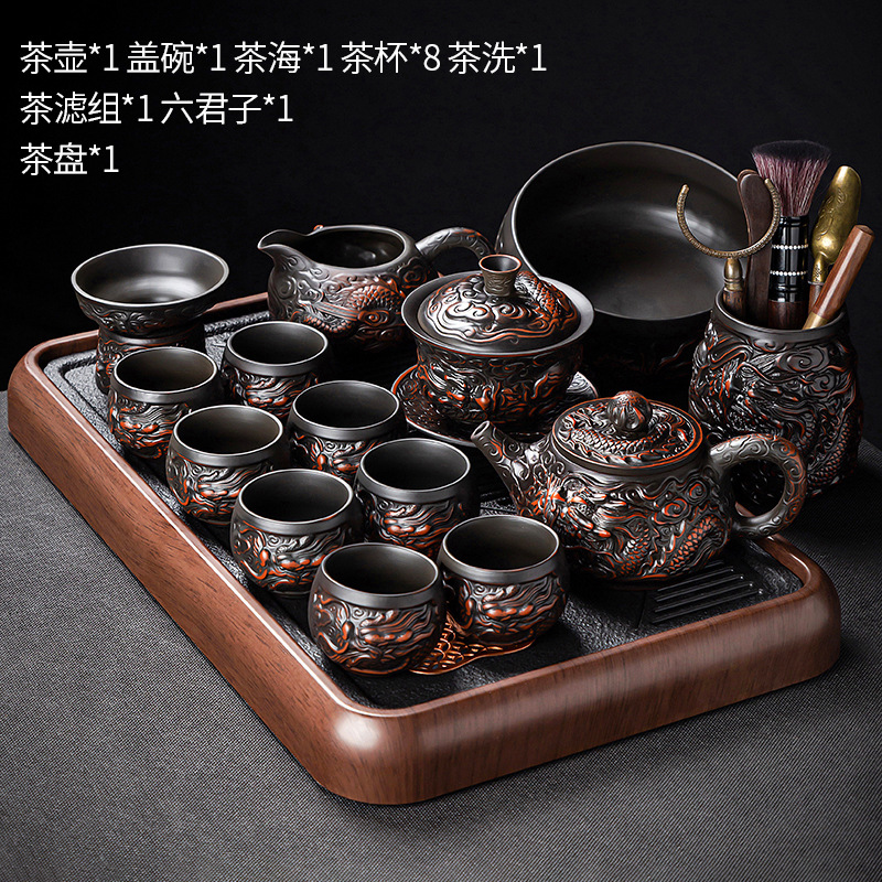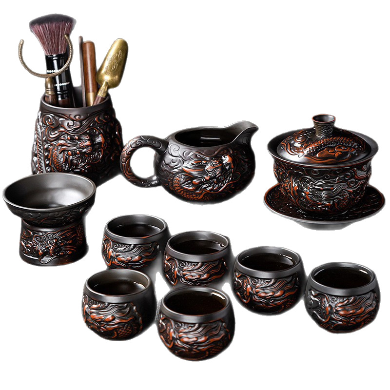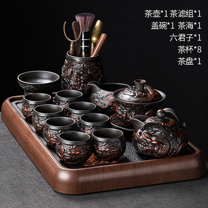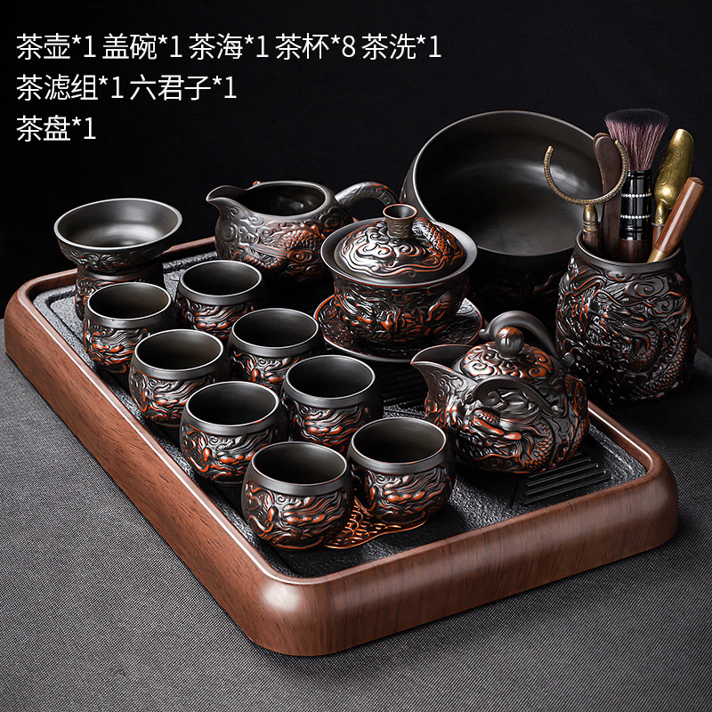高端紫陶功夫茶具套装家用盖碗泡茶壶茶杯专用2025新款办公室送礼