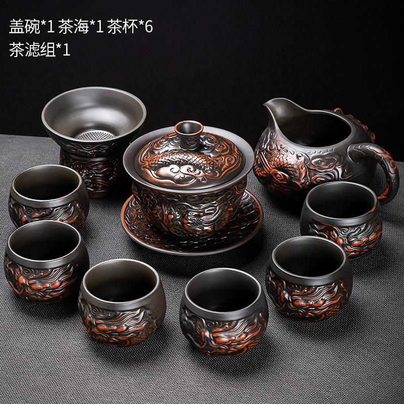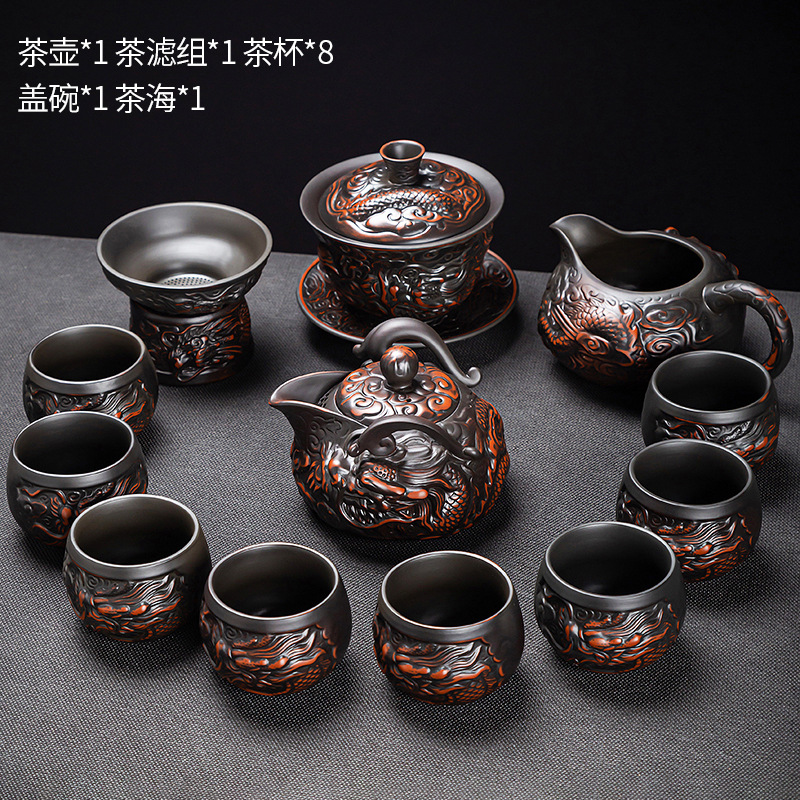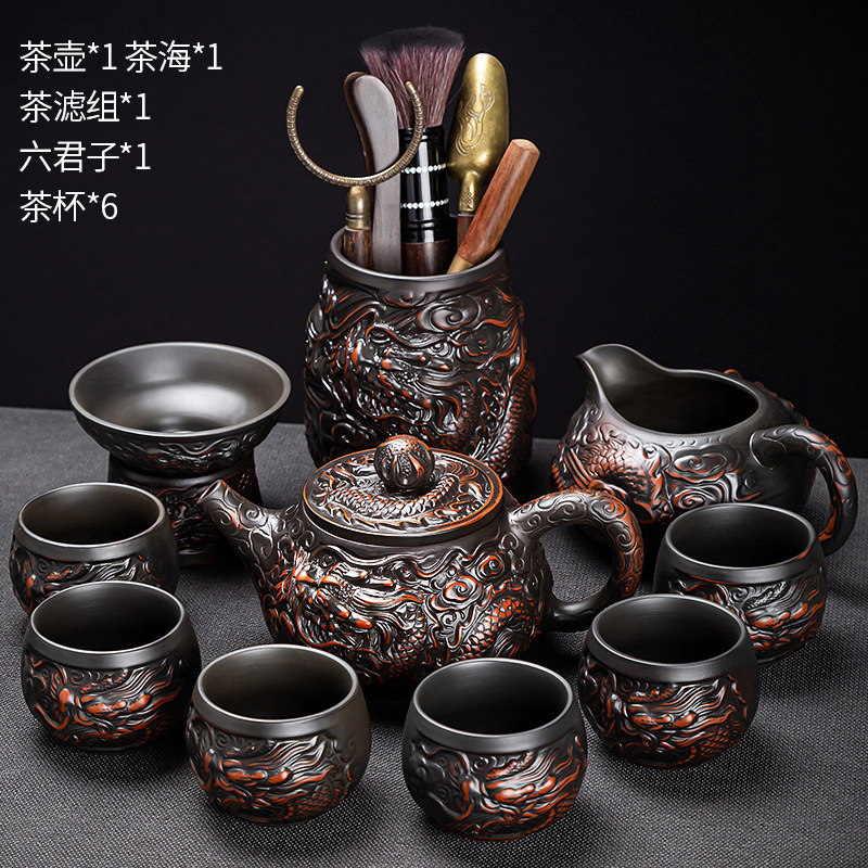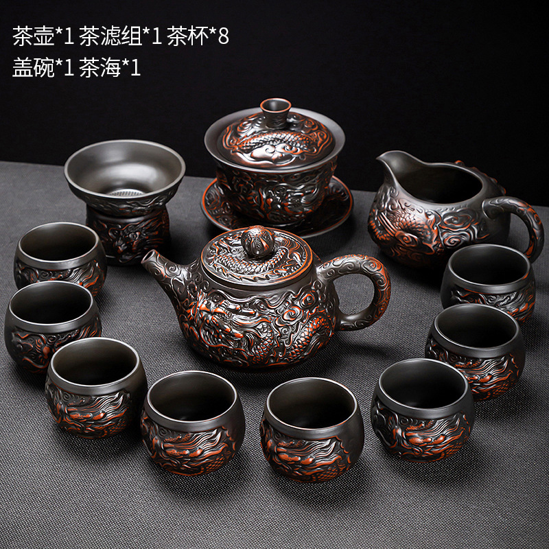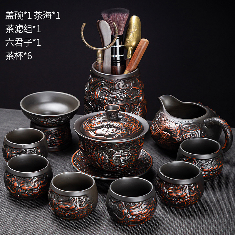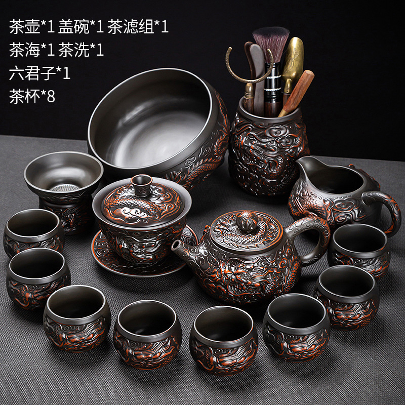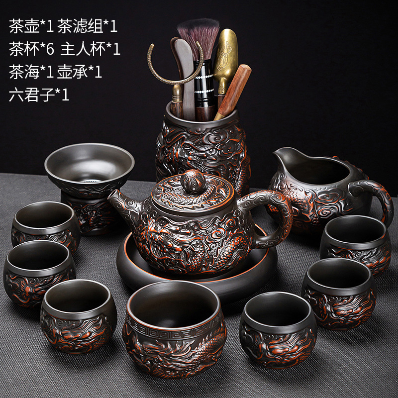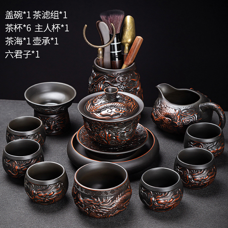高端紫陶功夫茶具套装家用盖碗泡茶壶茶杯专用2025新款办公室送礼
