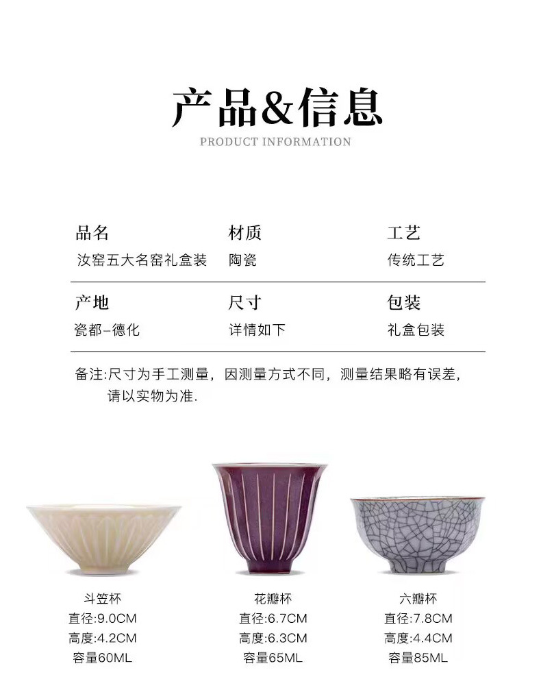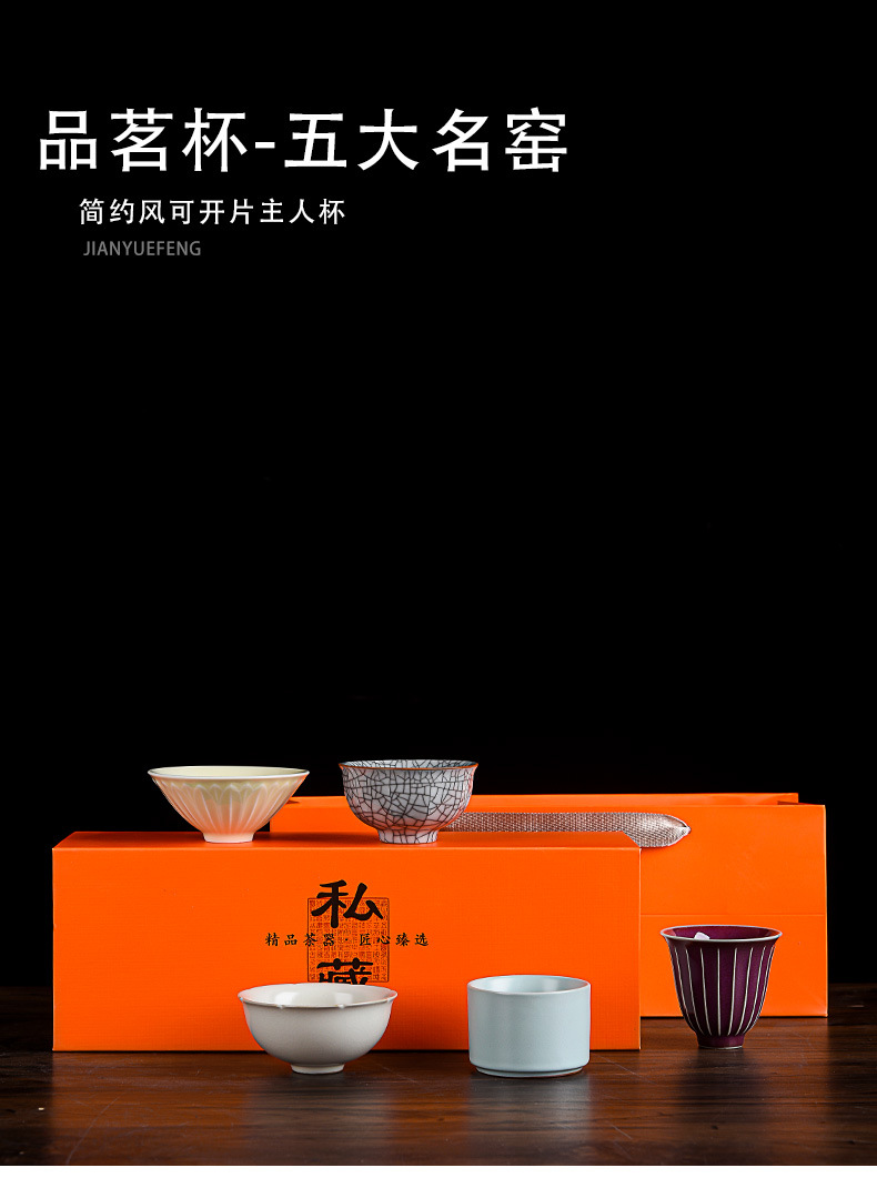 五大名窑茶杯茶具茶盏礼盒装家用品茗杯主人杯商务活动公司伴手礼