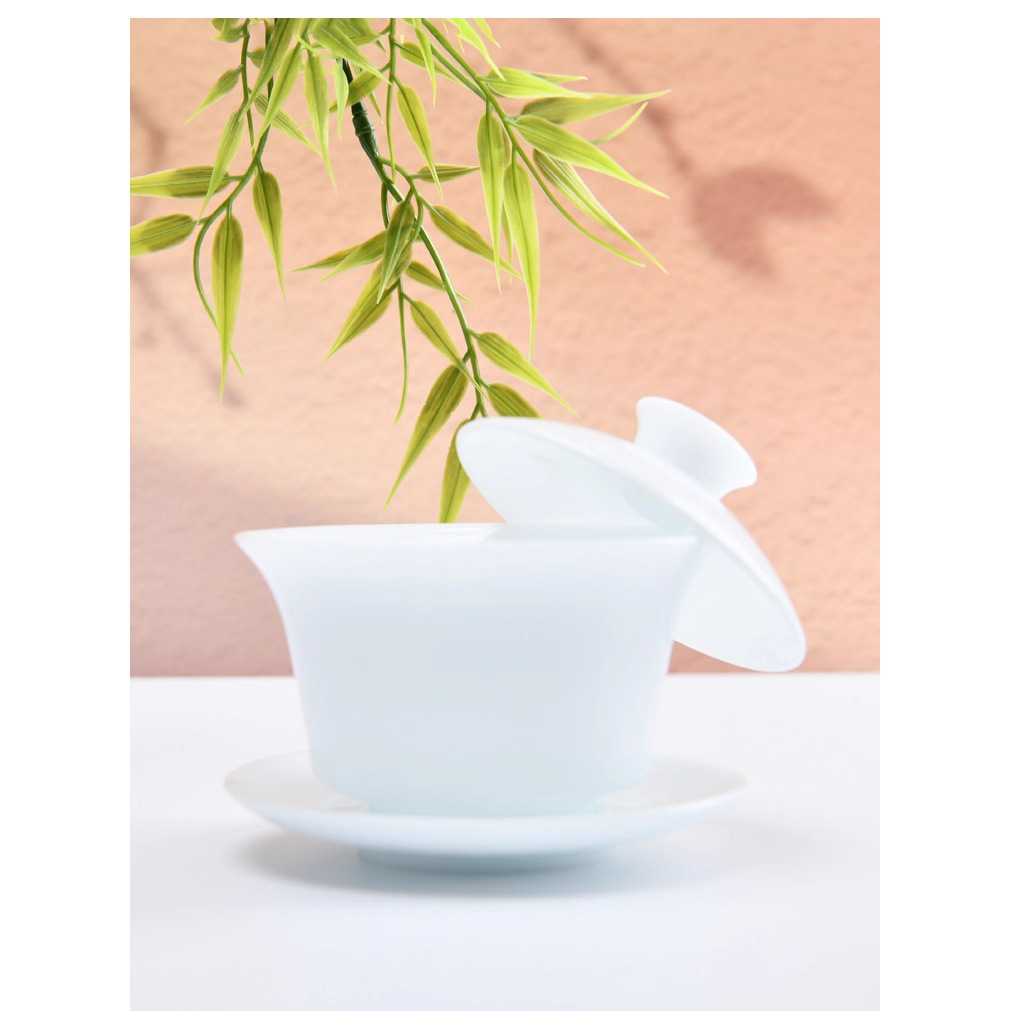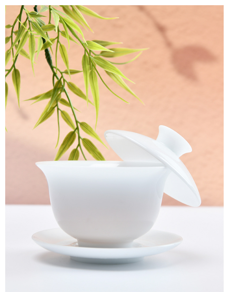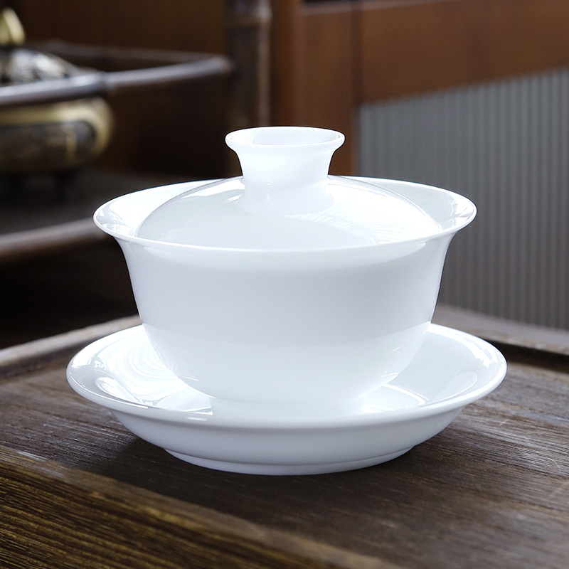 羊脂玉冰种玉瓷三才盖碗高档白瓷茶杯陶瓷大号泡茶碗功夫茶具定制