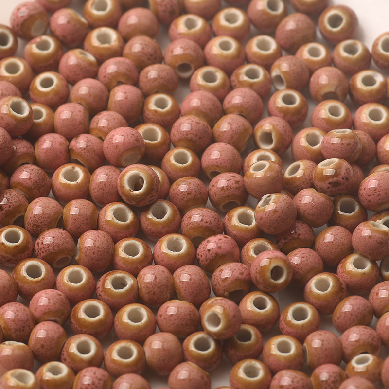 首饰配件6mm花釉陶瓷珠子成人学生自制圆珠材料包diy编织散珠串珠