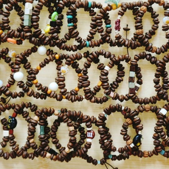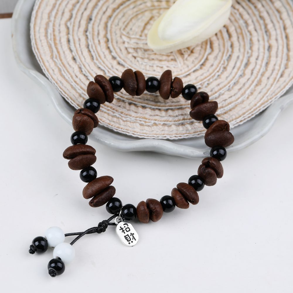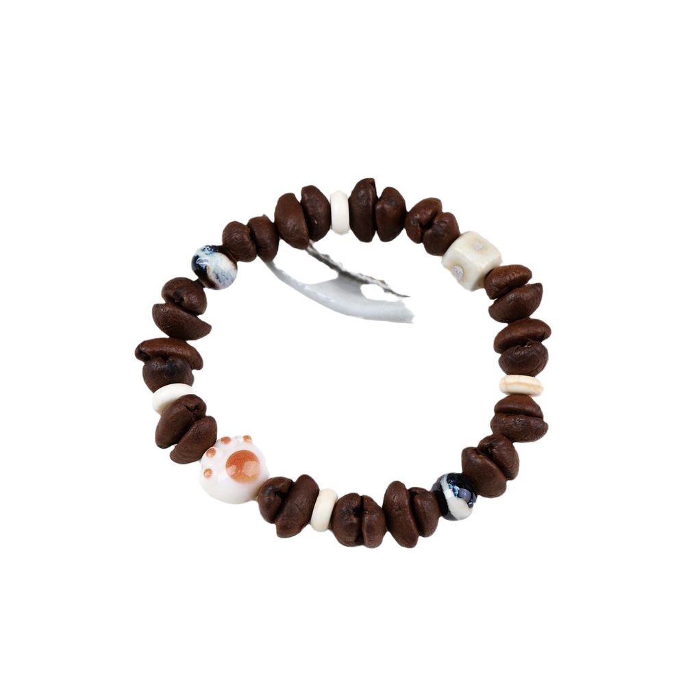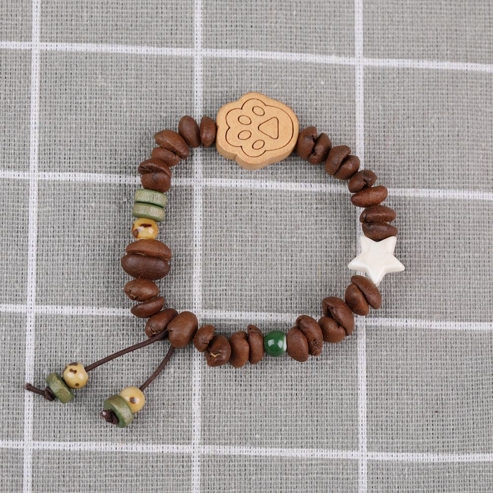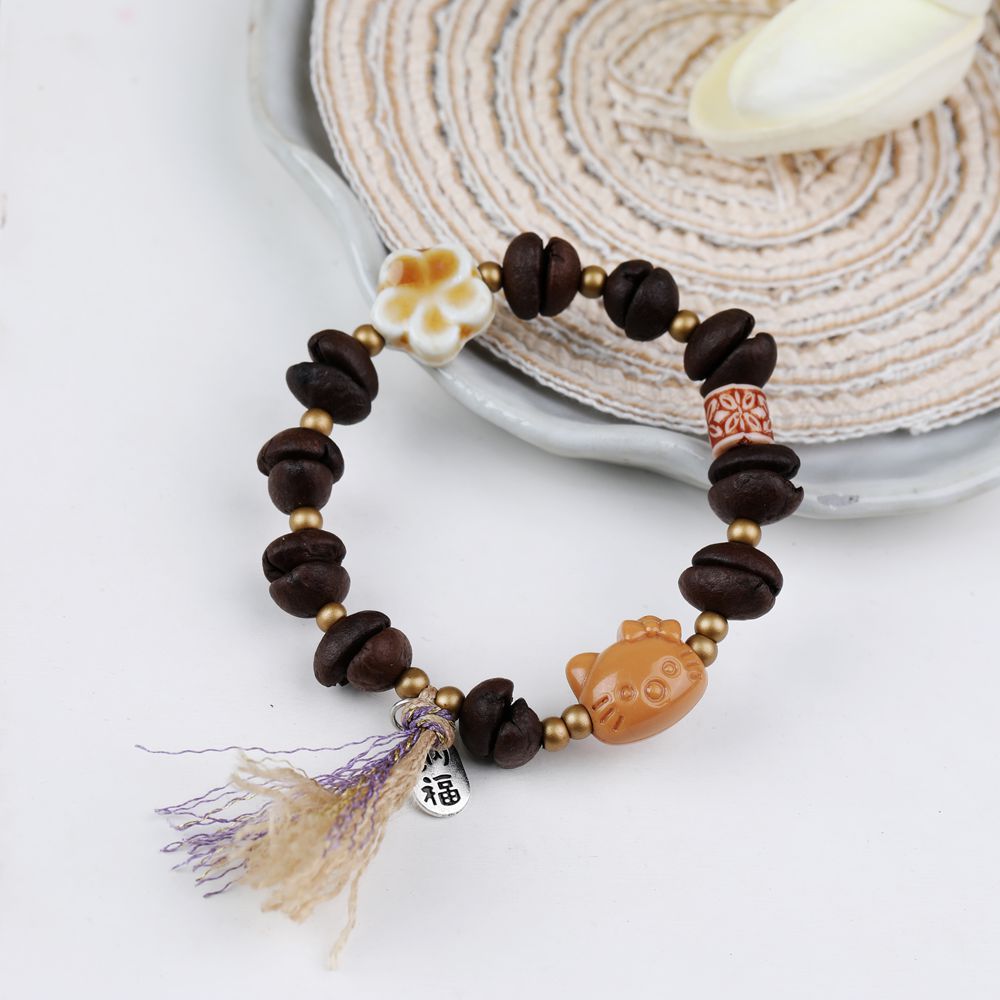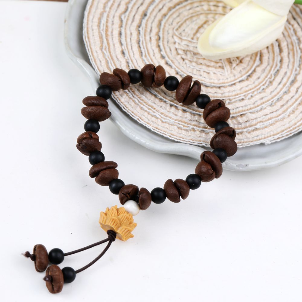 原创简约百搭猫抓莲花手链女 天然纯手工咖啡豆手串学生闺蜜批发