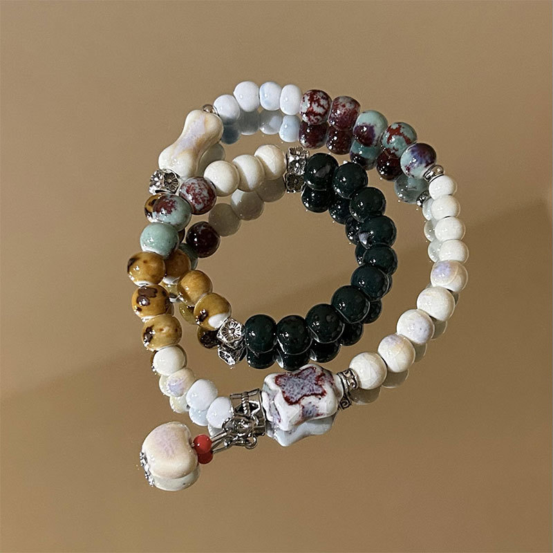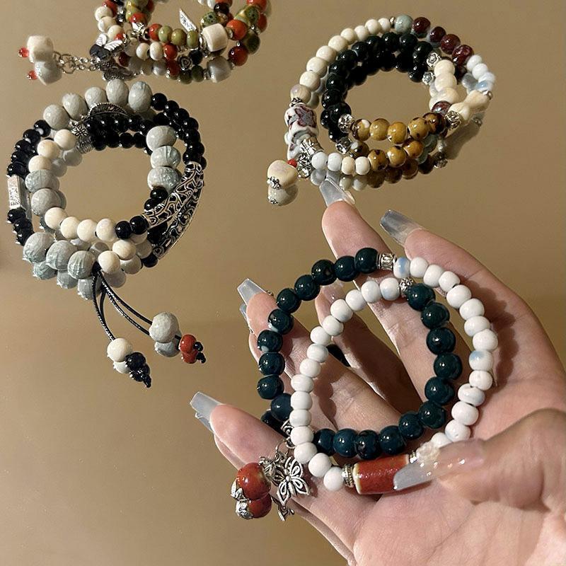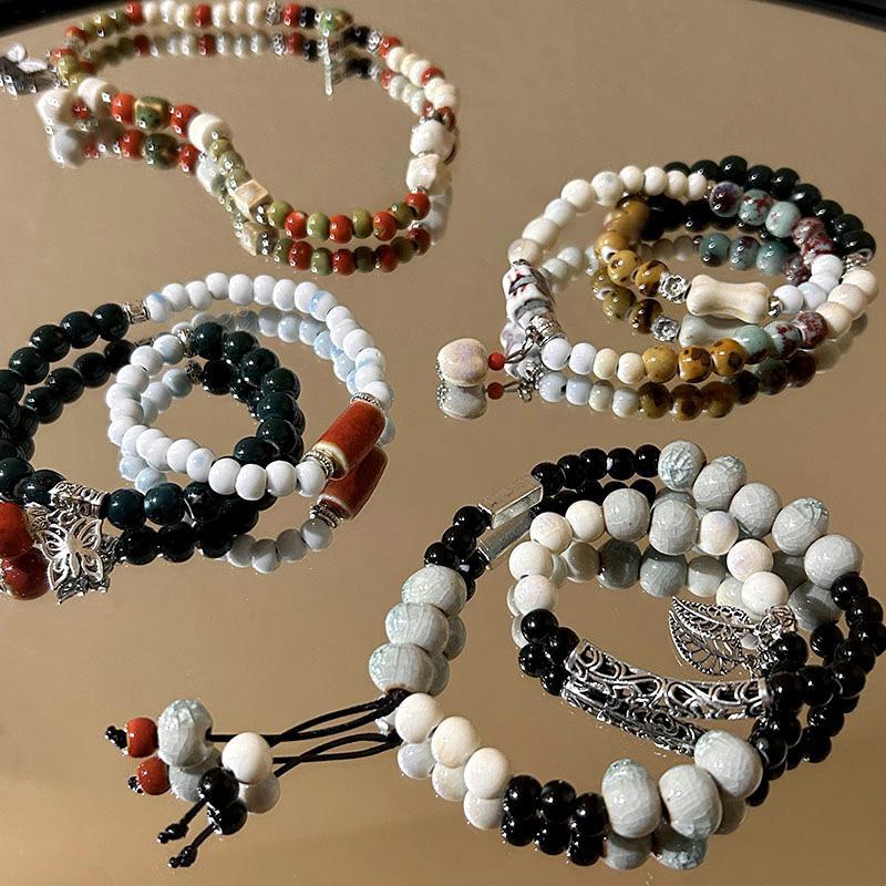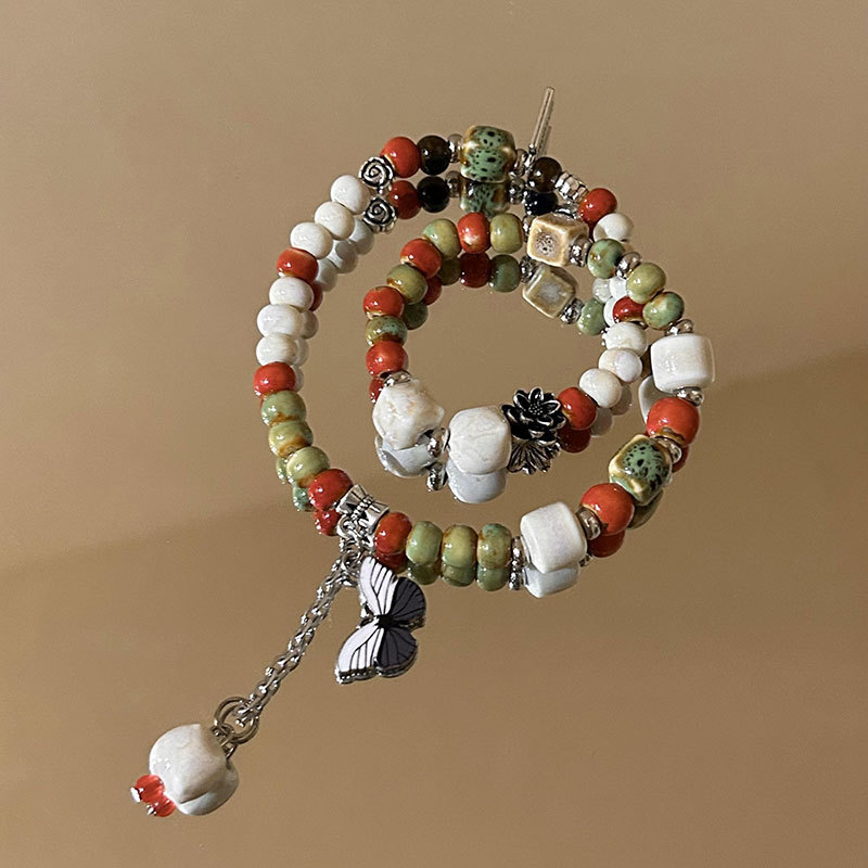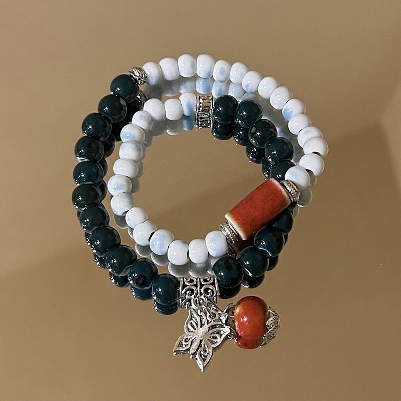 精品现货景德镇陶瓷手串新中式蝴蝶结陶瓷双圈手串国风摆摊小商品