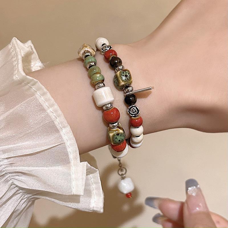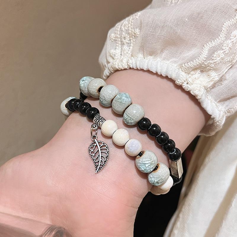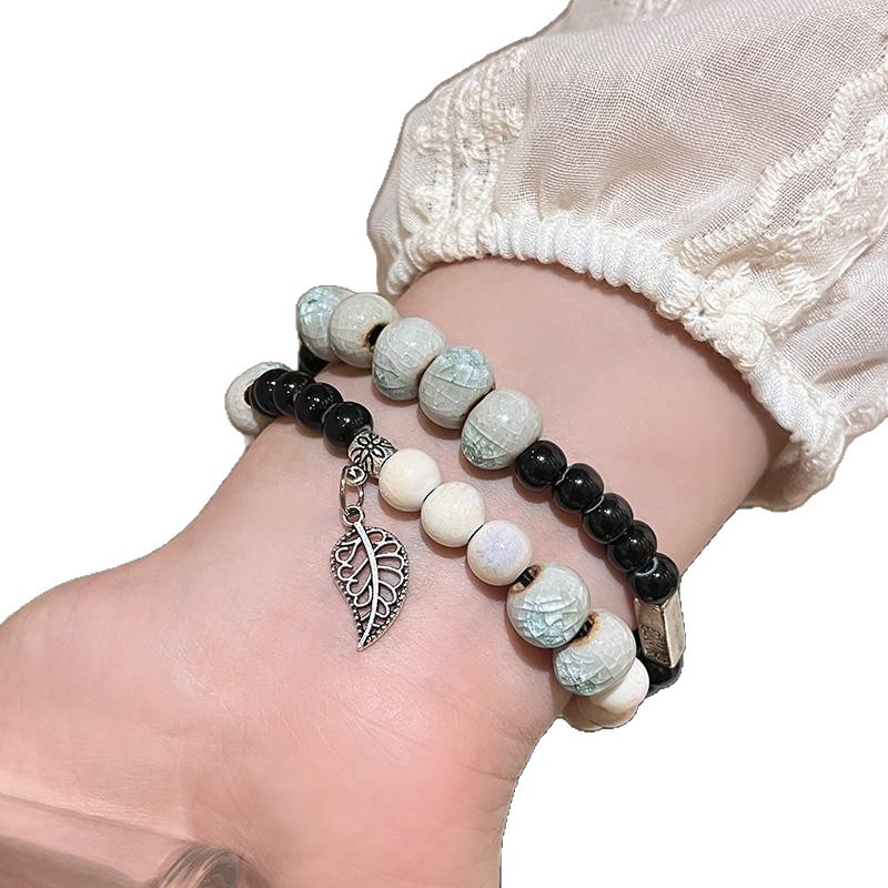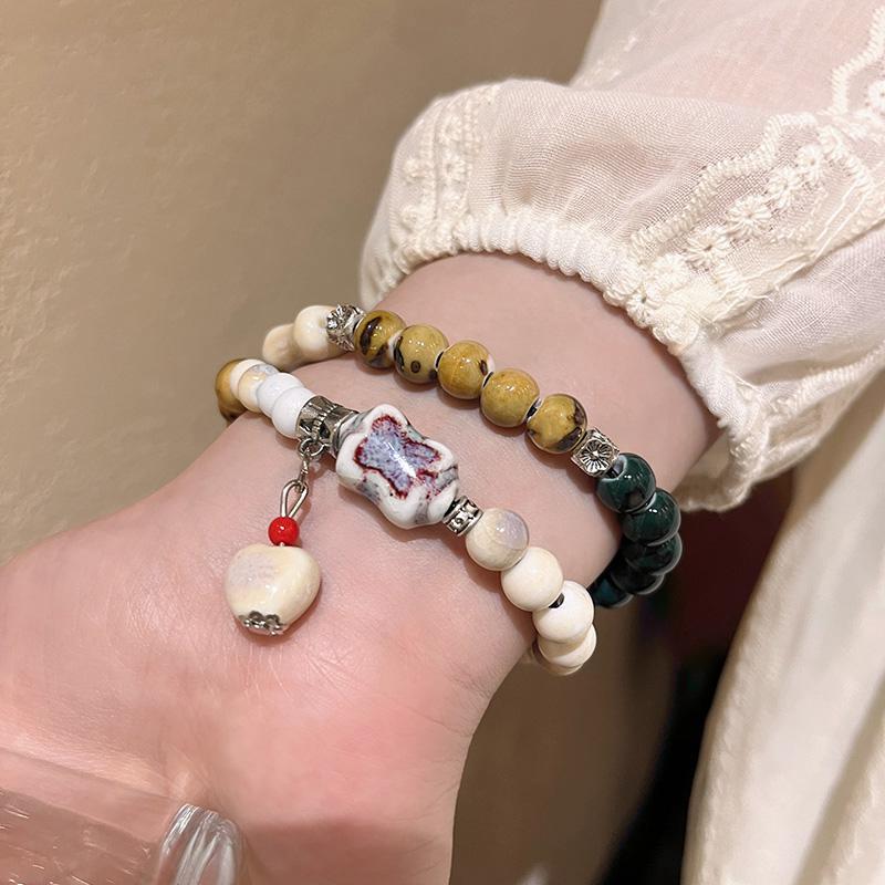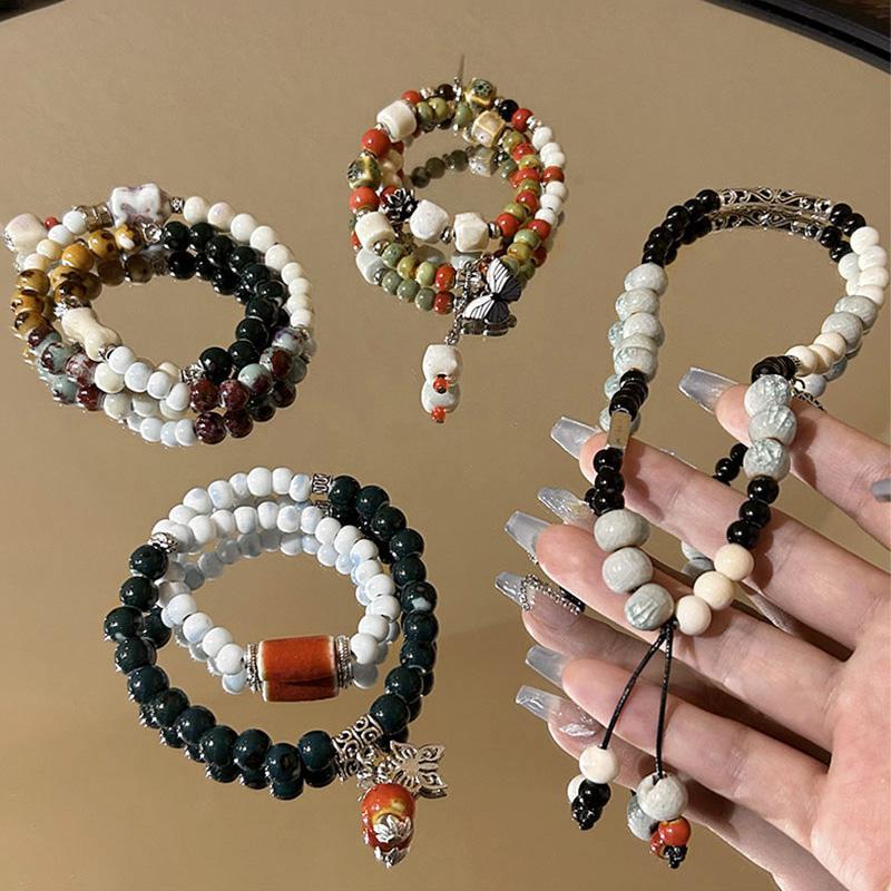 精品现货景德镇陶瓷手串新中式蝴蝶结陶瓷双圈手串国风摆摊小商品