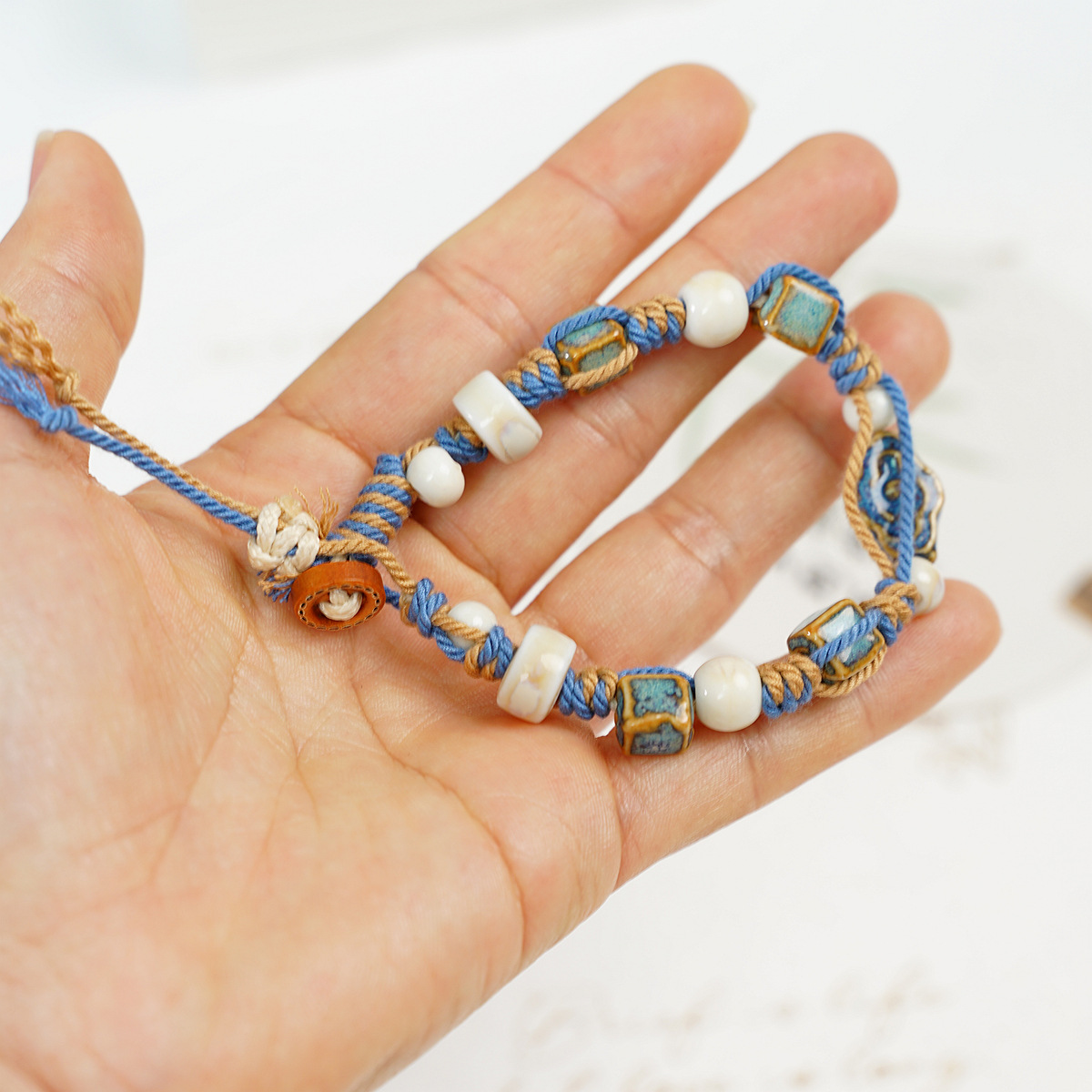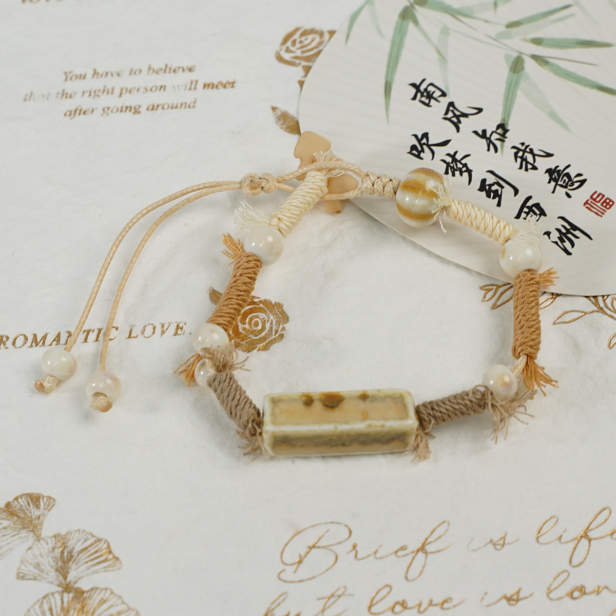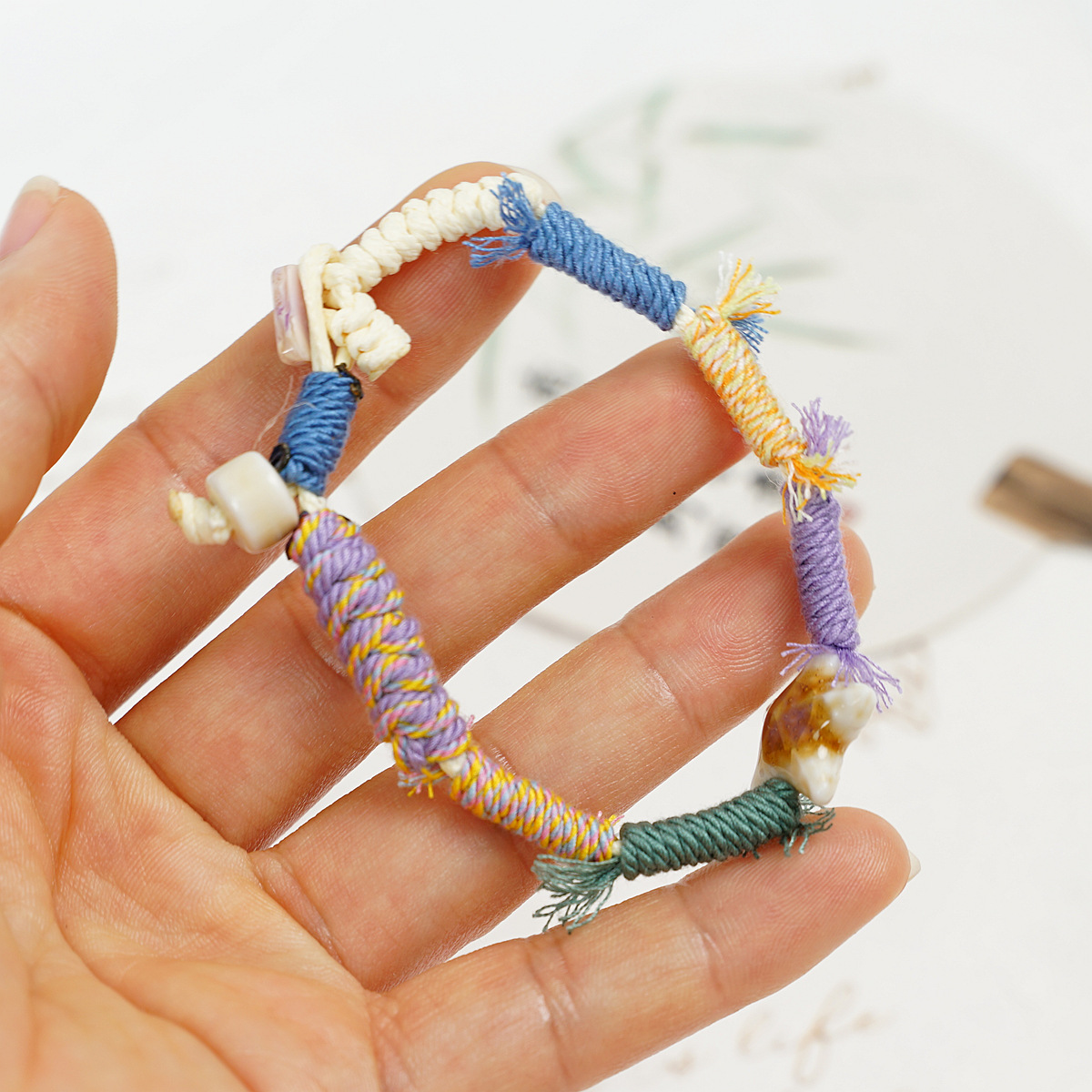 景德镇新款重工编织民族风藏风流苏陶瓷编绳手绳时尚氛围感饰品