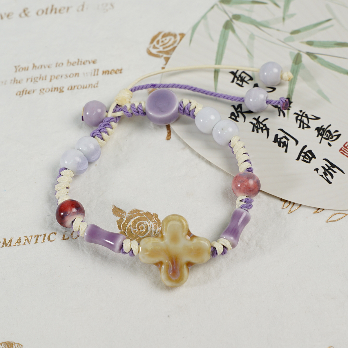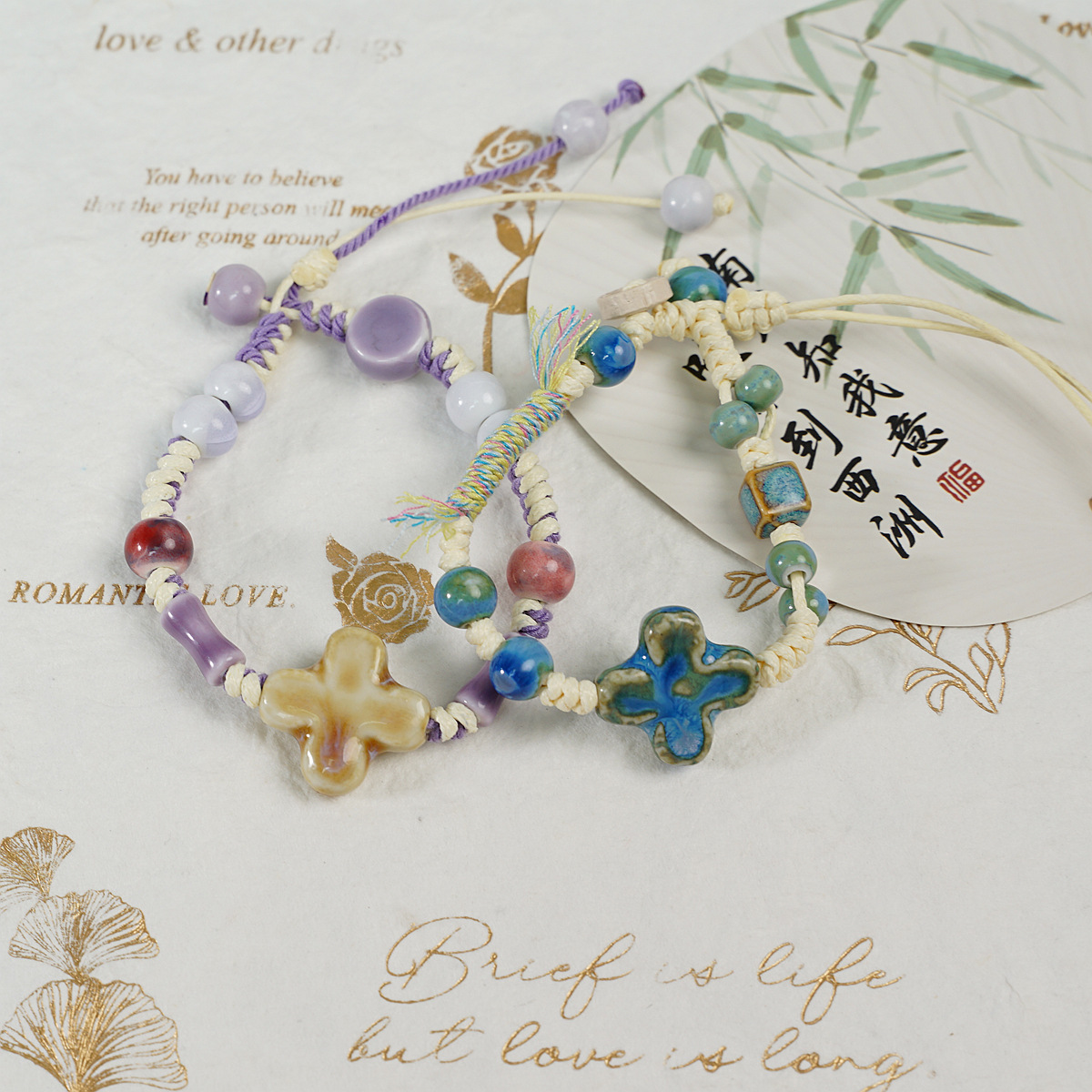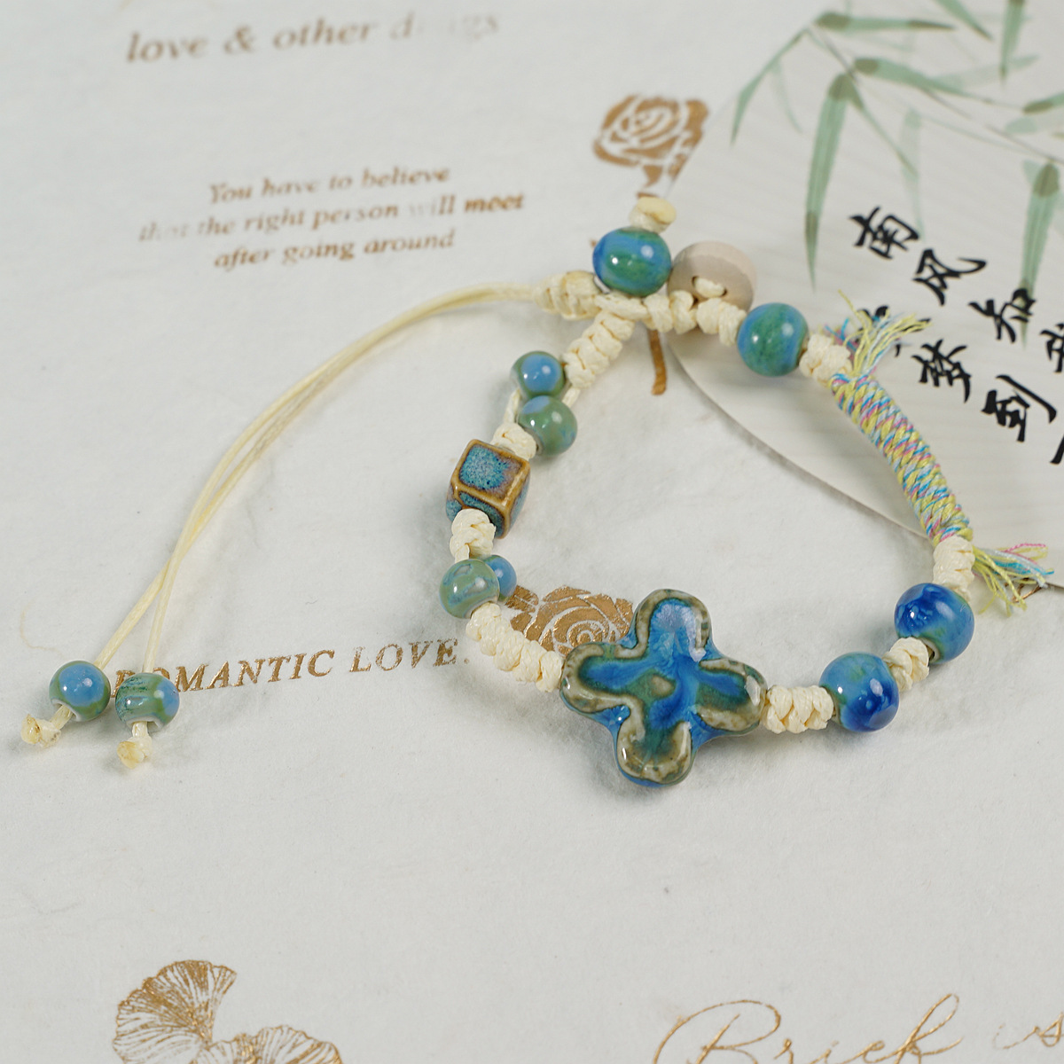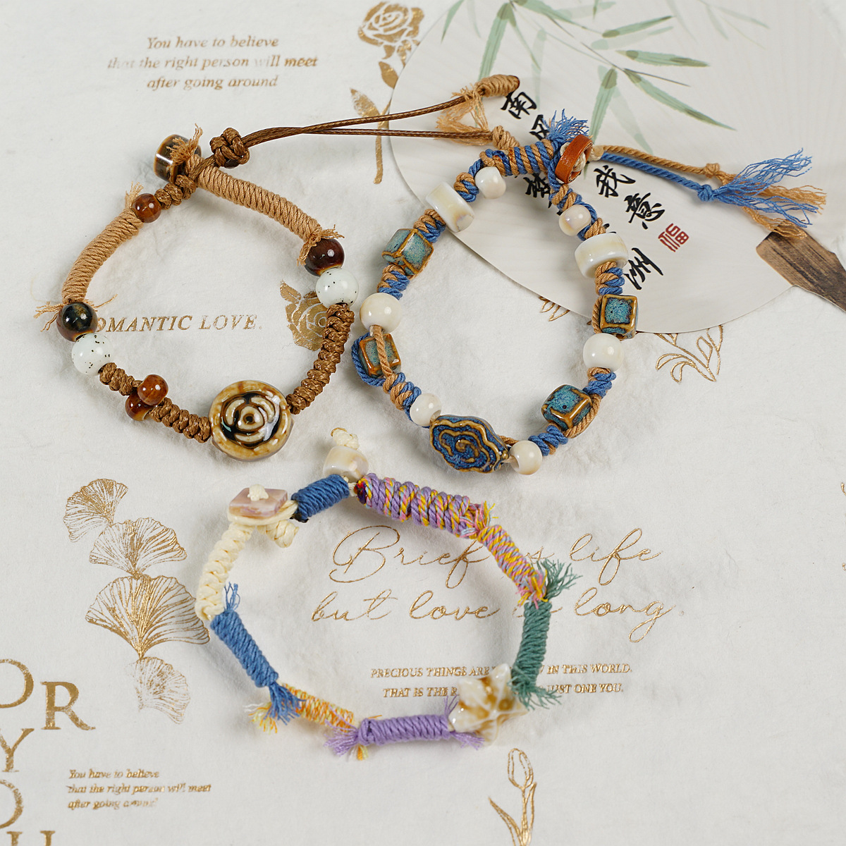 景德镇新款重工编织民族风藏风流苏陶瓷编绳手绳时尚氛围感饰品