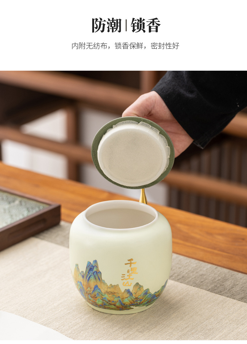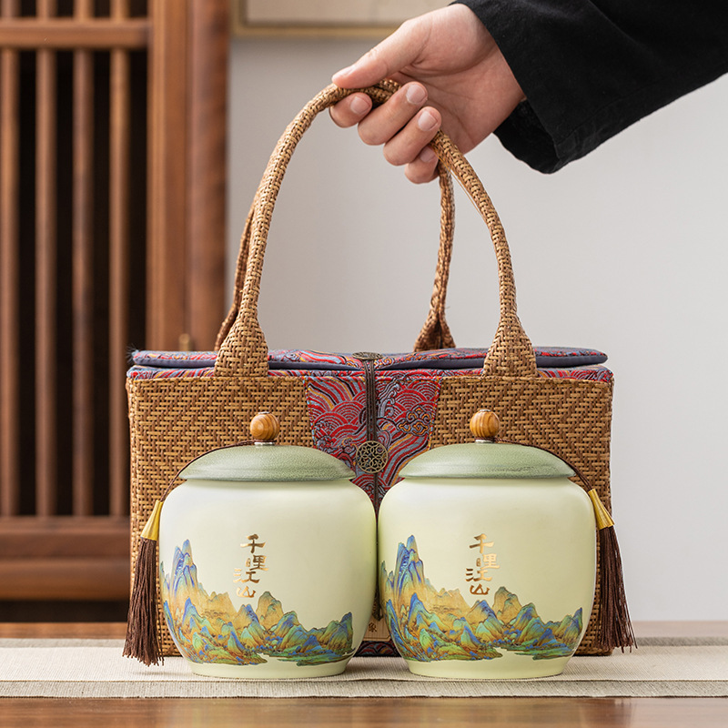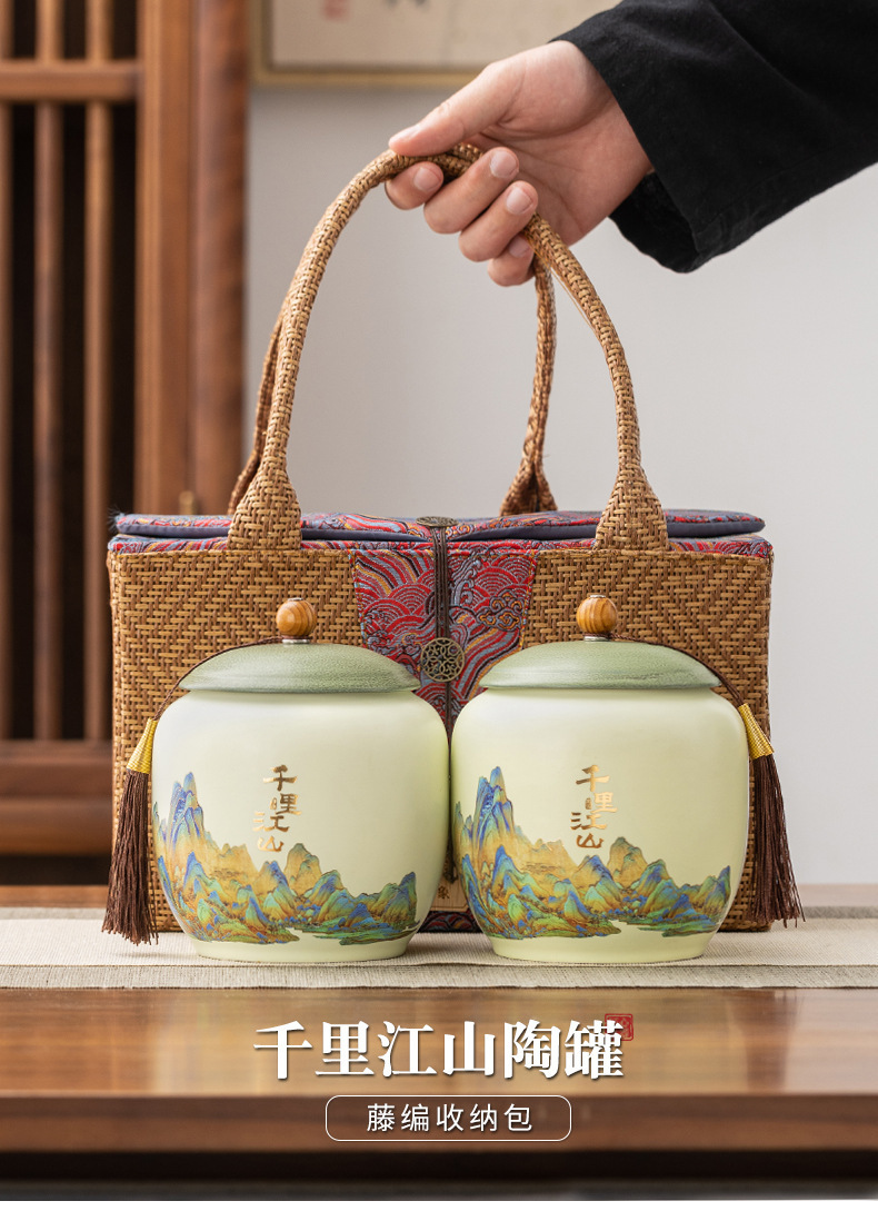 2025新款国风茶叶罐礼盒半斤装精品陶瓷密封罐防潮罐大容量储茶罐