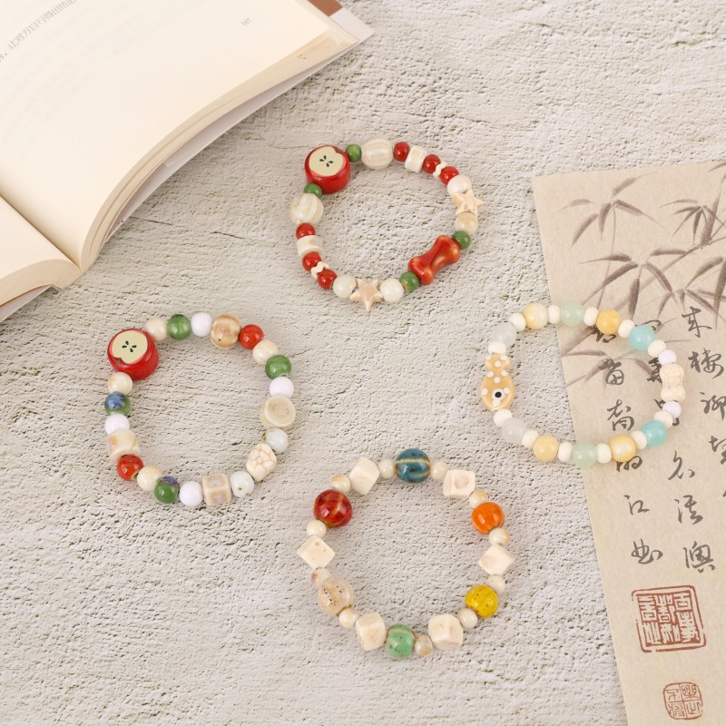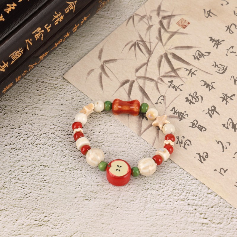 文艺小清新苹果陶瓷串珠简约时尚地摊热销饰品景德镇批发