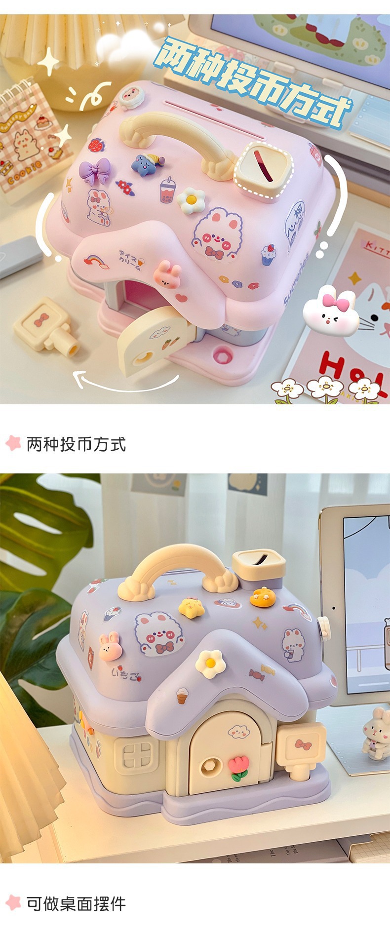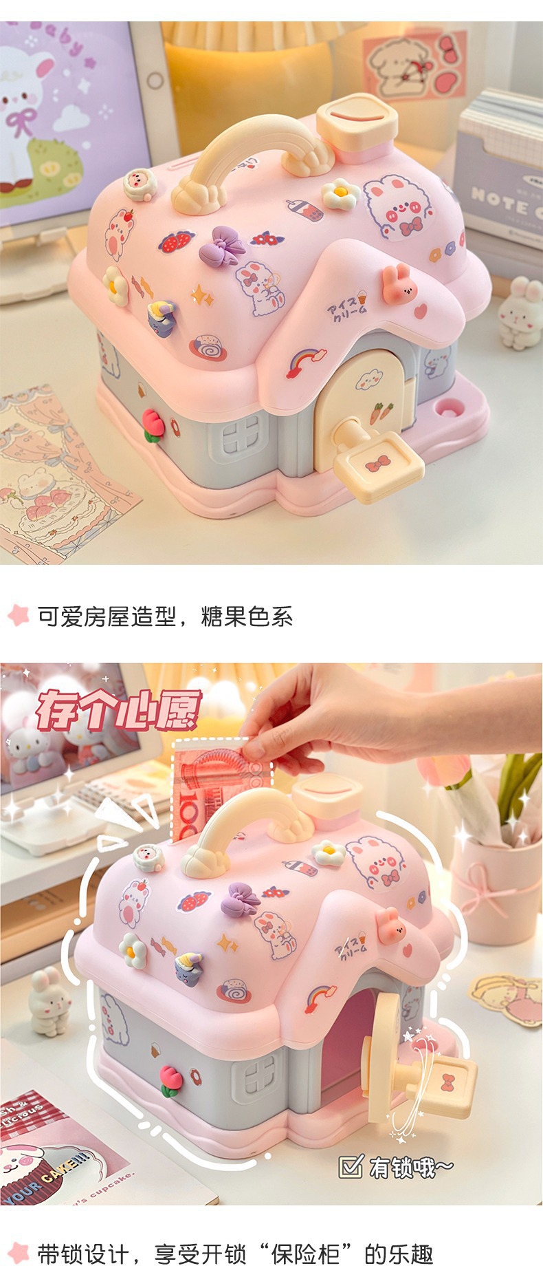卡通创意小房子存钱罐大容量儿童学生礼物储蓄罐可存可取存钱箱